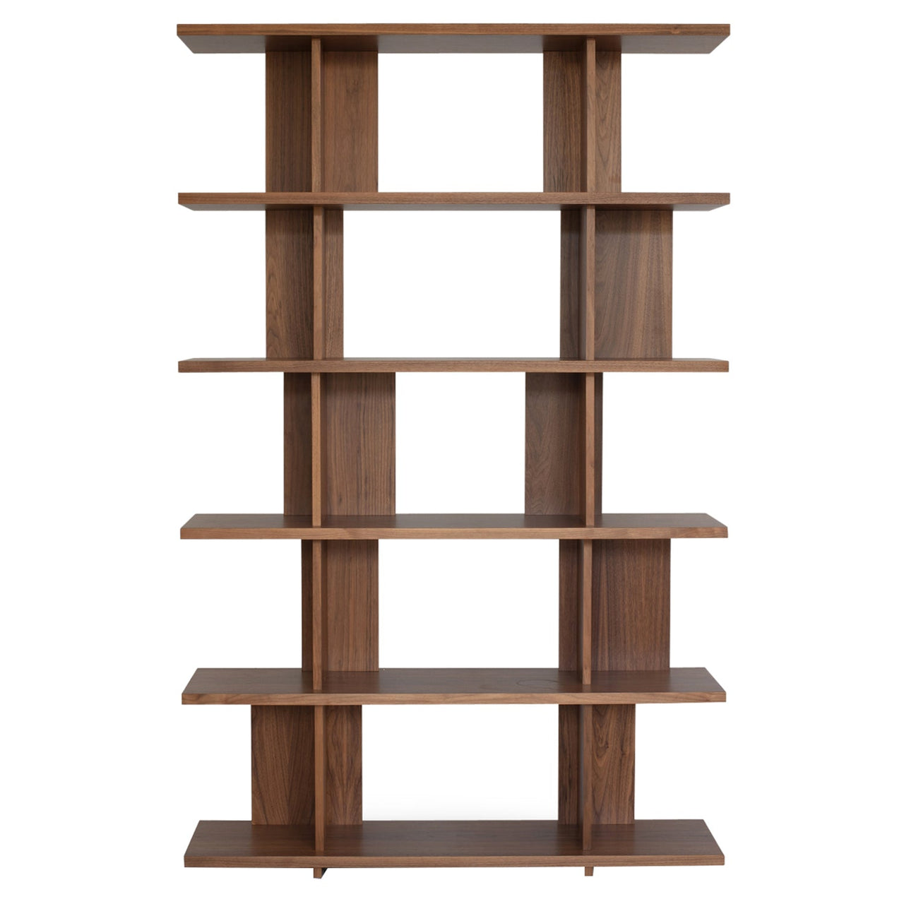 The Strata Shelving System is a modular storage solution designed for adaptability. Made from high-quality oak or walnut, each unit features staggered back panels that create a distinctive look while allowing multiple units to be connected side by side for expansion. The adjustable design supports a range of storage needs, from books to decorative items. Plastic leveling feet provide stability on uneven surfaces, ensuring a secure setup in any space.