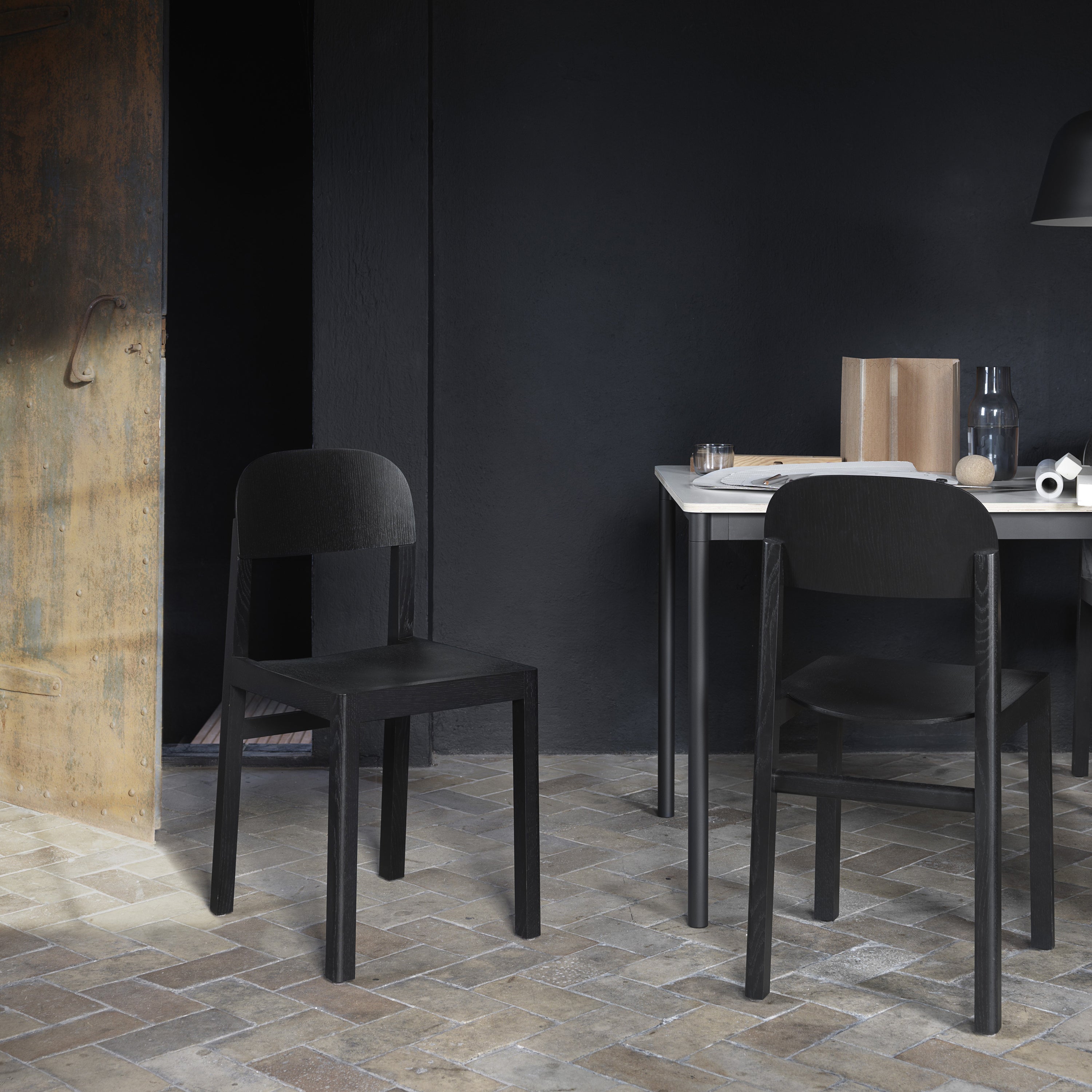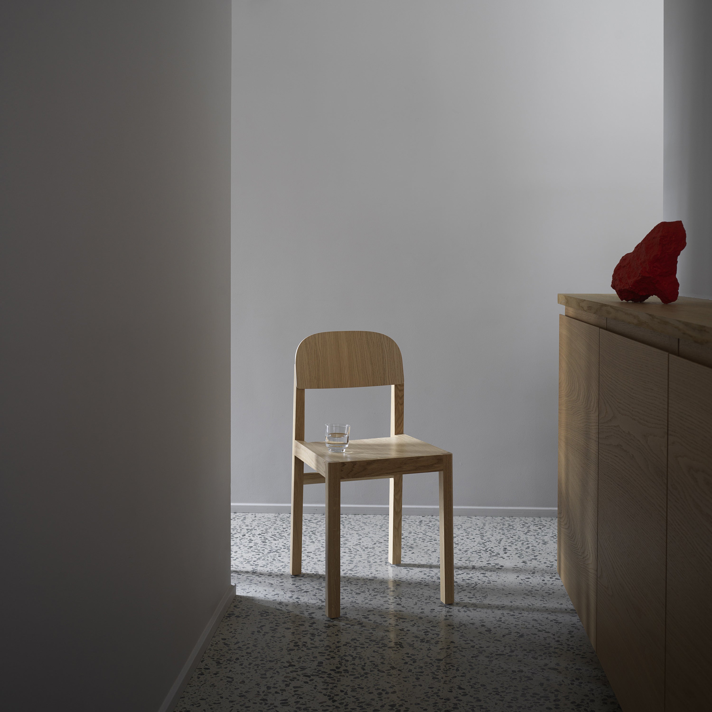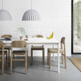 The archetypal chair at its most fundamental. Refined joints are among the celebrated yet understated details of craftsmanship in this aptly called Workshop Chair by celebrated industrial designer Cecilie Manz for Danish house Muuto. The Oregon Pine or oak wood legs and veneer-skinned back and seat reveal the visible wood grains.