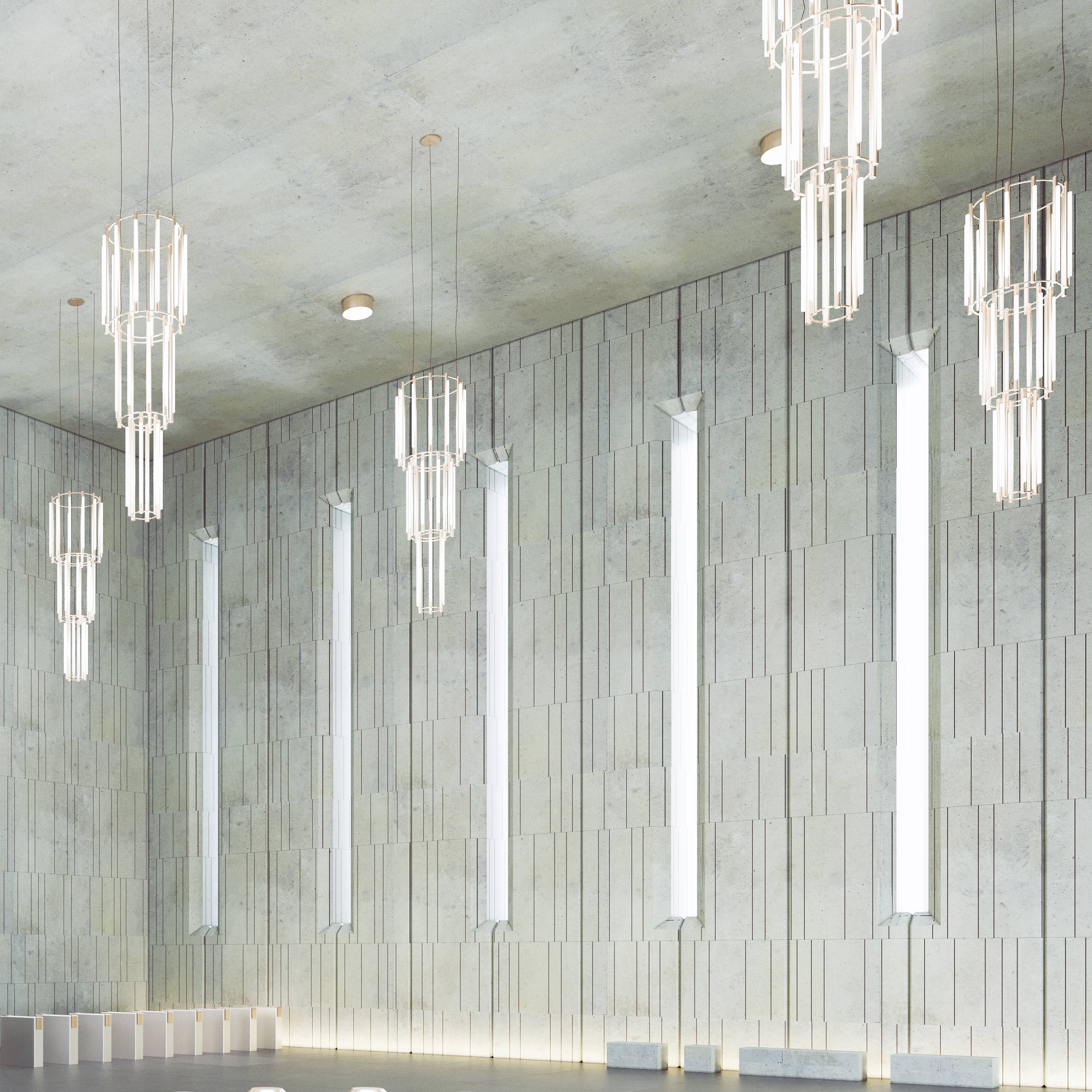 The ne plus ultra of A-N-D cofounder and designer Caine Heintzman's tiered chandelier range, Pipeline 12 offers a floor-to-ceiling expanse arrayed with 27 individual LED lights. With each of the triple-level concentric circles measuring over 4 feet, it makes for a mesmerizing display of illumination—and the grand fixture is available in a choice of color-temperature versions and fine aluminum finishes.