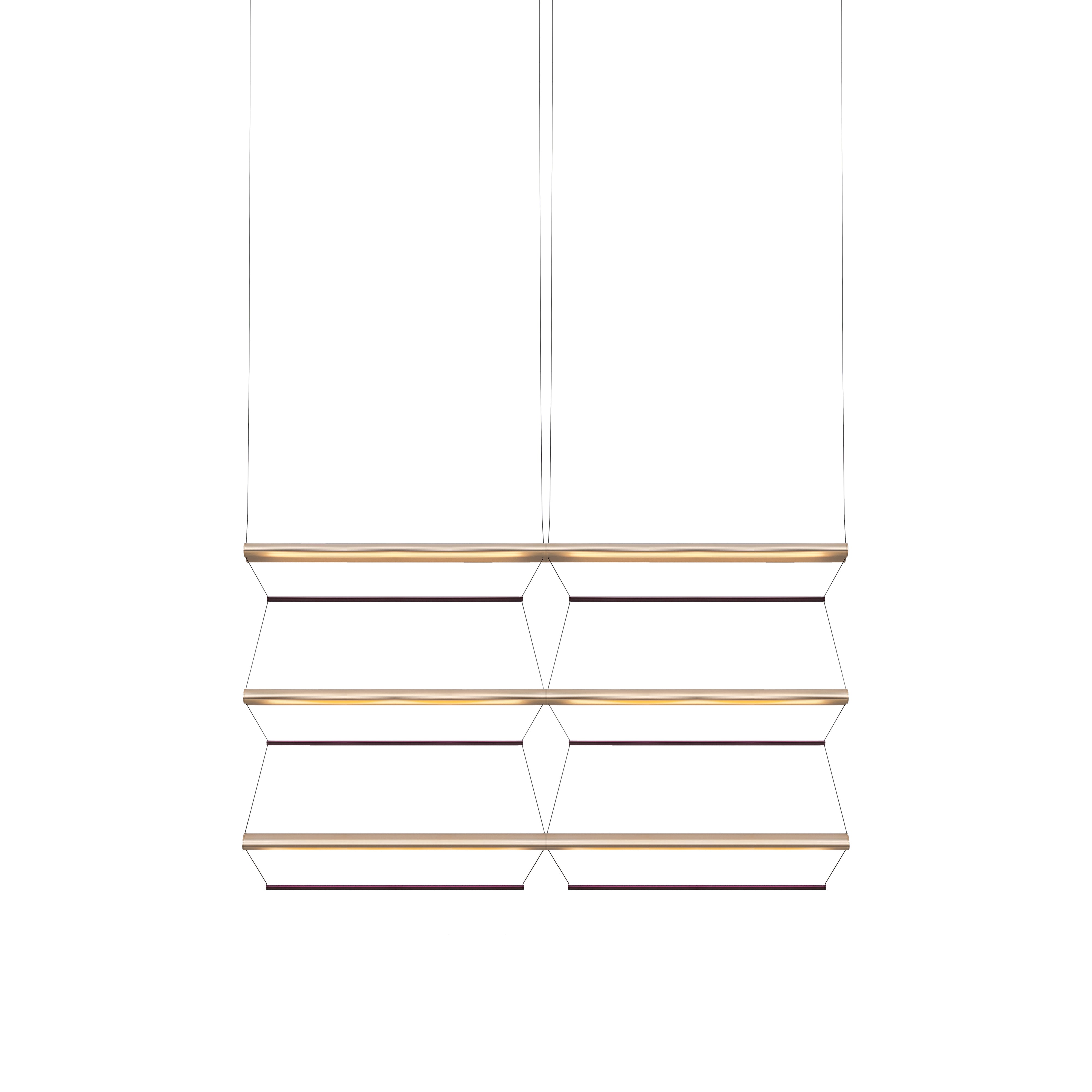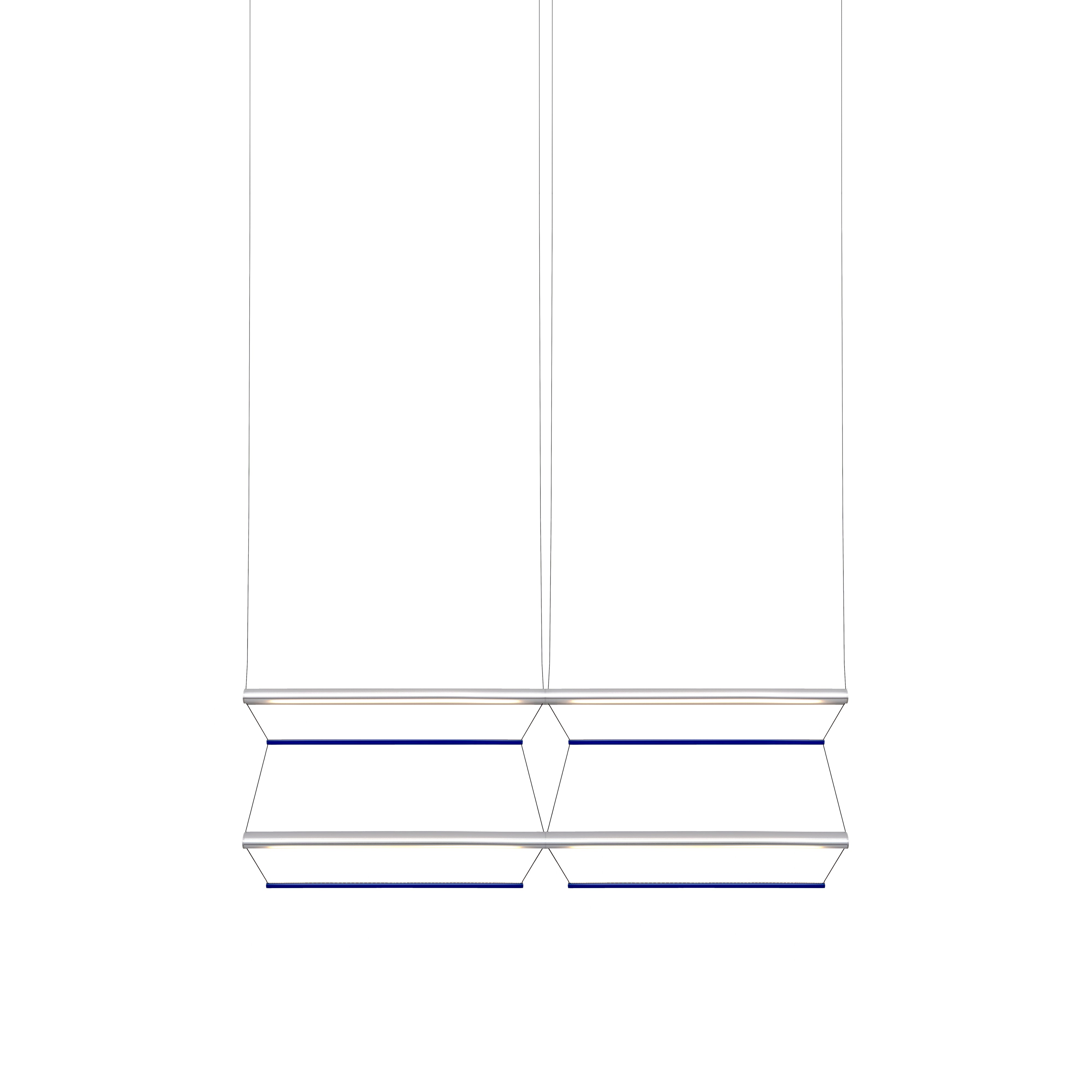The Tier 100 Pendant features a scalloped aluminum reflector that disperses light evenly across its surroundings. The fixture is crafted from anodized aluminum and is offered in finishes such as silver, gold, and copper, paired with lens options including sapphire, emerald, and amethyst. It supports dimming through Phase, 0–10V, or DALI systems and accommodates input voltages from 110V to 277V. An adjustable drop length of up to 244 cm allows for flexible installation.