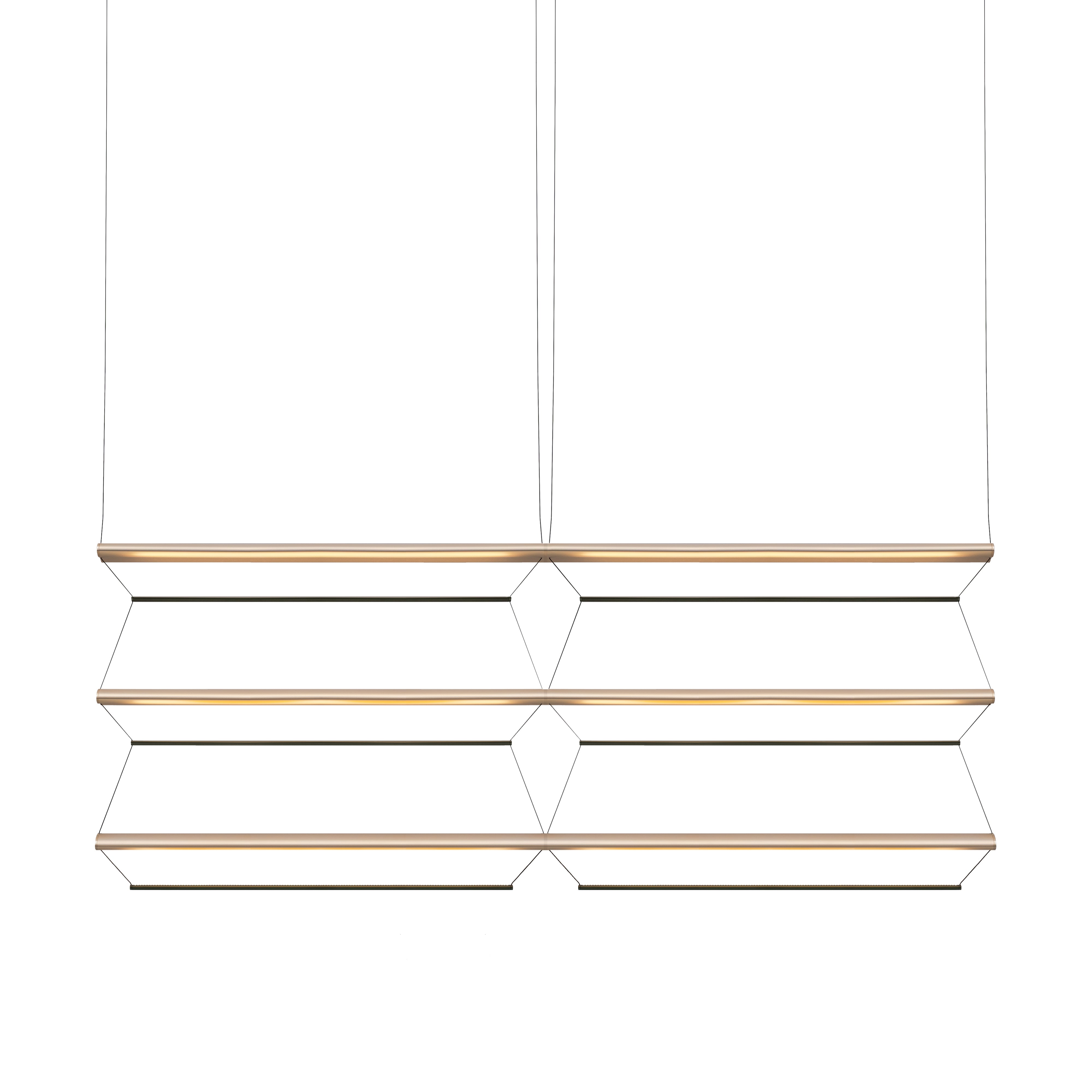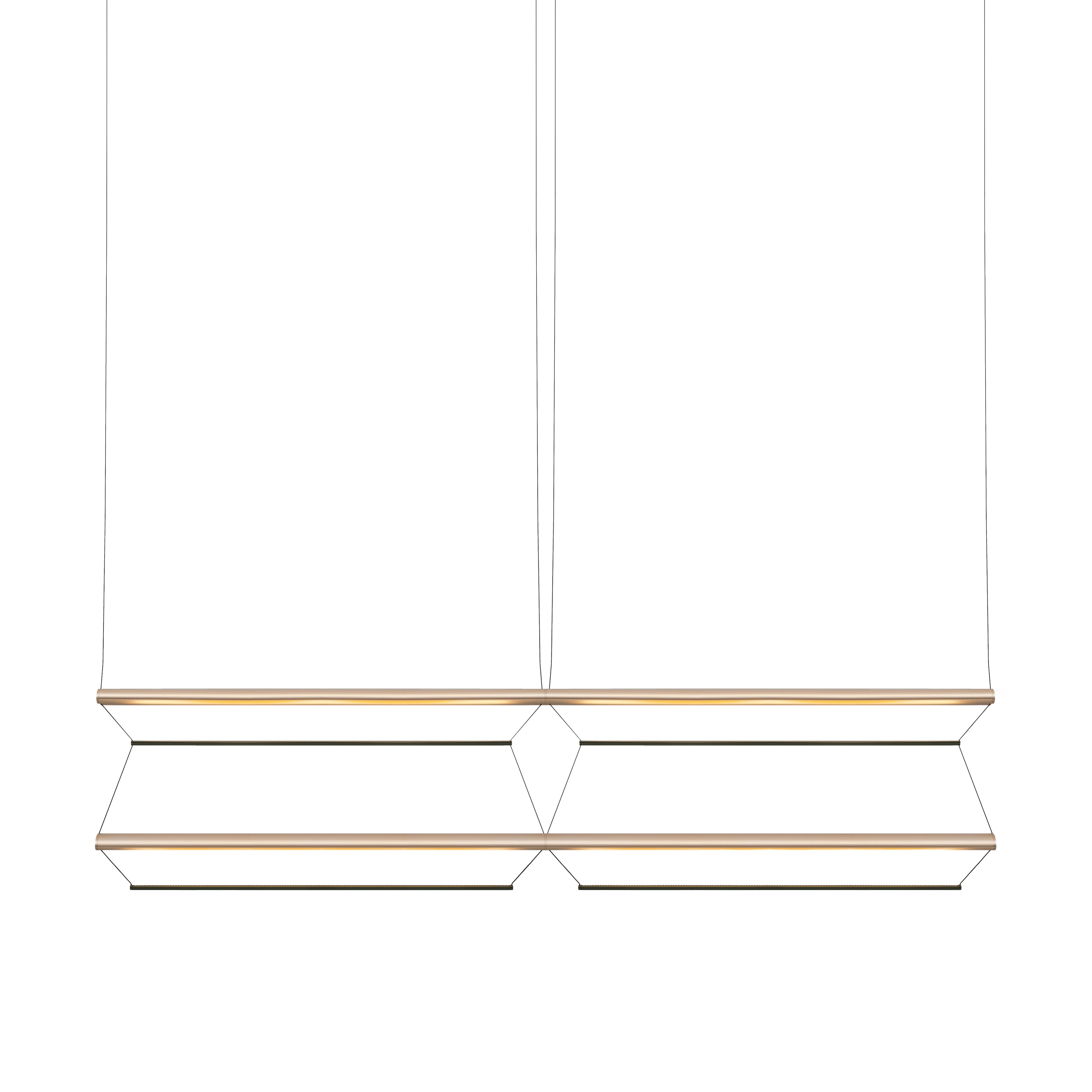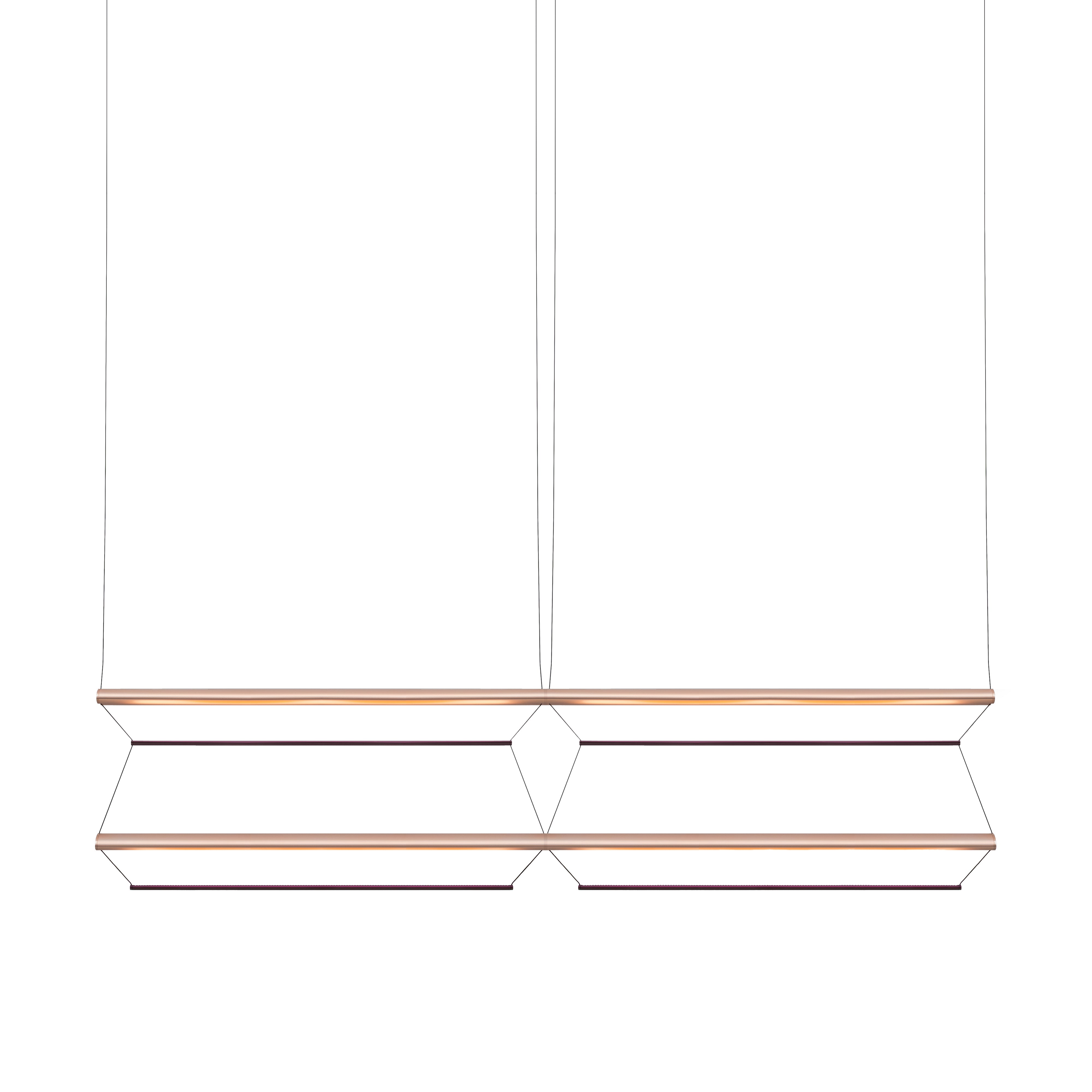 A scalloped aluminum reflector paired with a concealed LED source defines the Tier 150 Pendant, dispersing soft, uniform illumination across its wide span. Measuring 150 cm in length, the pendant is crafted from anodized aluminum, offered in finishes such as silver, gold, and copper. Its acrylic lens is available in jewel-toned shades like sapphire, emerald, and amethyst, adding a subtle color element to the design. Compatible with Phase, 0–10V, and DALI dimming systems.