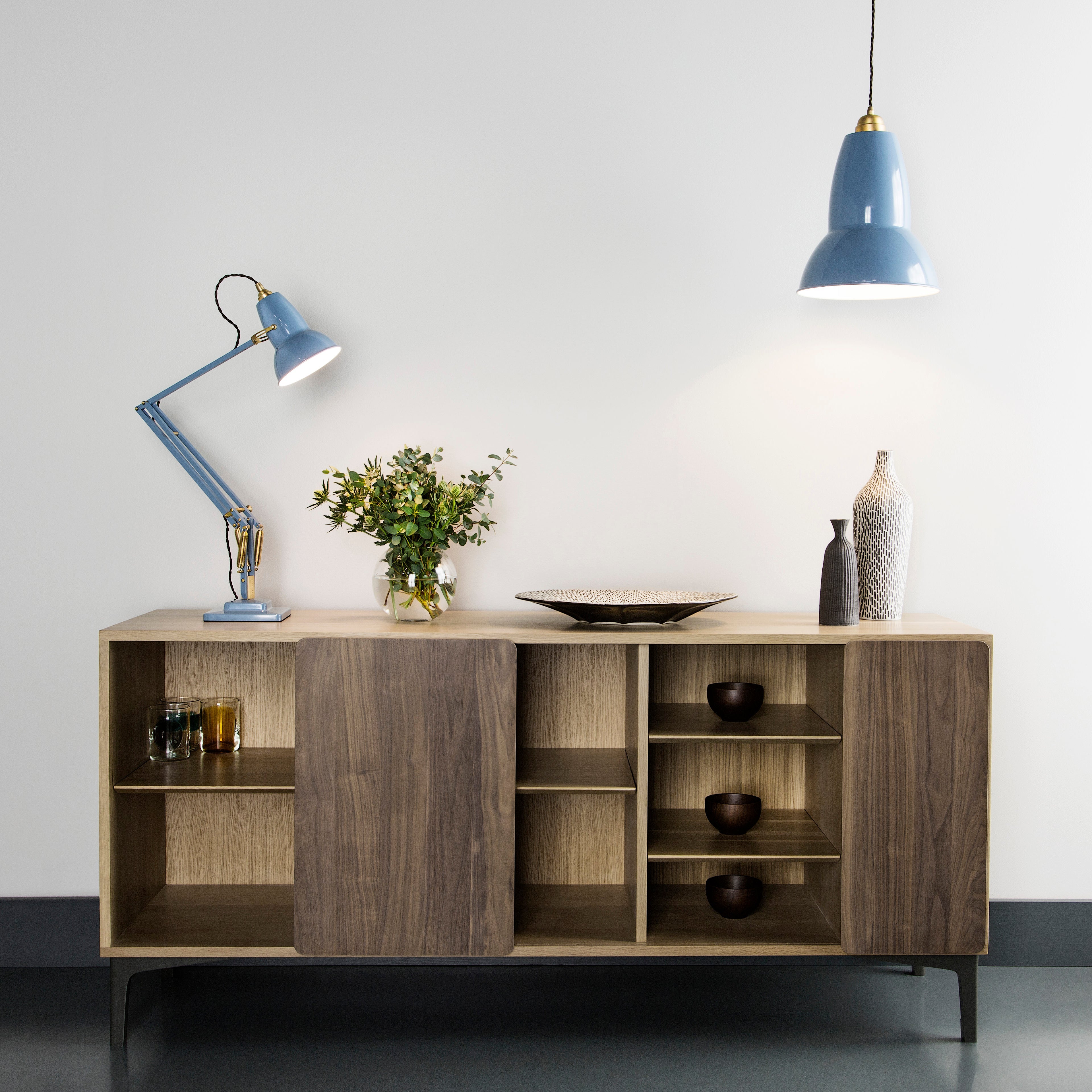 Scaling up, the Brass Maxi Pendant Light is a brawny take on the heritage-inspired Anglepoise hanging fixture. Authentic brass details reinforce the early modernist aesthetic of British engineer George Carwardine's 1934 shaded lamp. Now known as the Original 1227, this enlarged variation melds an iconic form and renowned functionality for a variety of lighting needs.