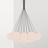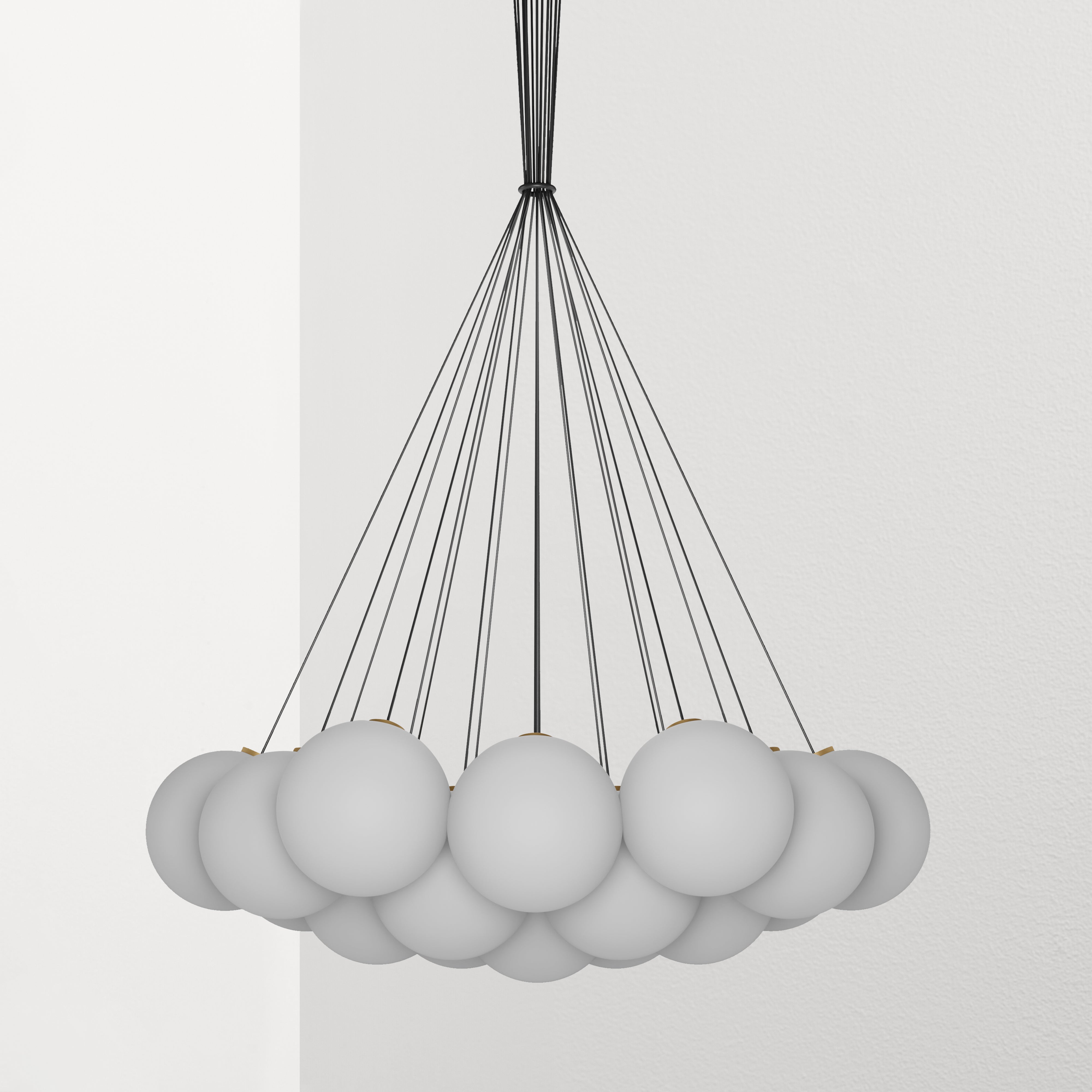 Behold a spectacular grouping of 19 individual Glass 120 globes that dazzles the eye and brings an effervescent light show to grand interiors. Anony's glorious chandelier glows with LED illumination diffused through the cluster of acid-etched pendants that uniformly measure the namesake 120 millimeters in diameter. Choose from versions in brushed aluminum or brass, each available with mood-setting color temperature options that radiate candlelight, warm white or soft white ambiance.