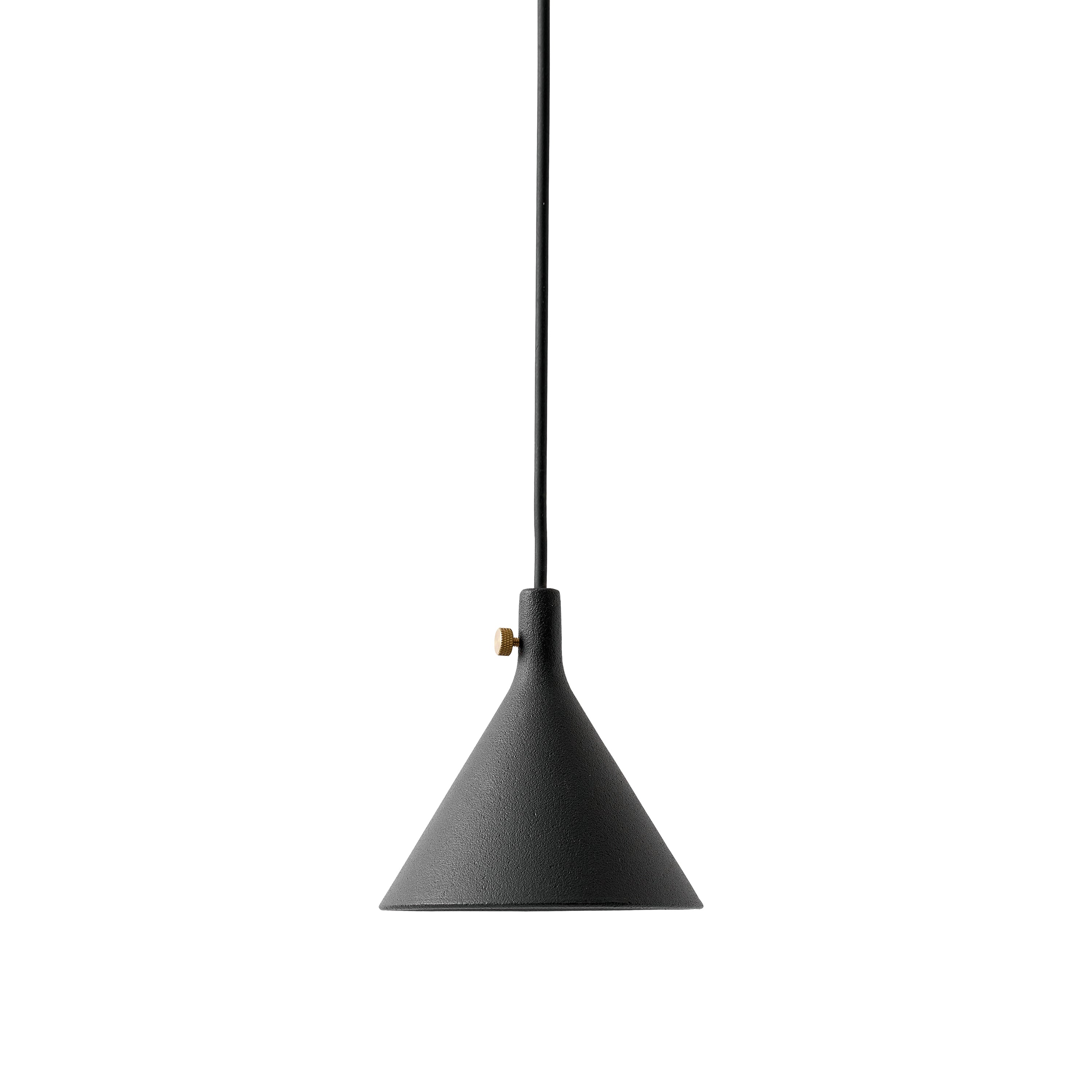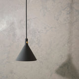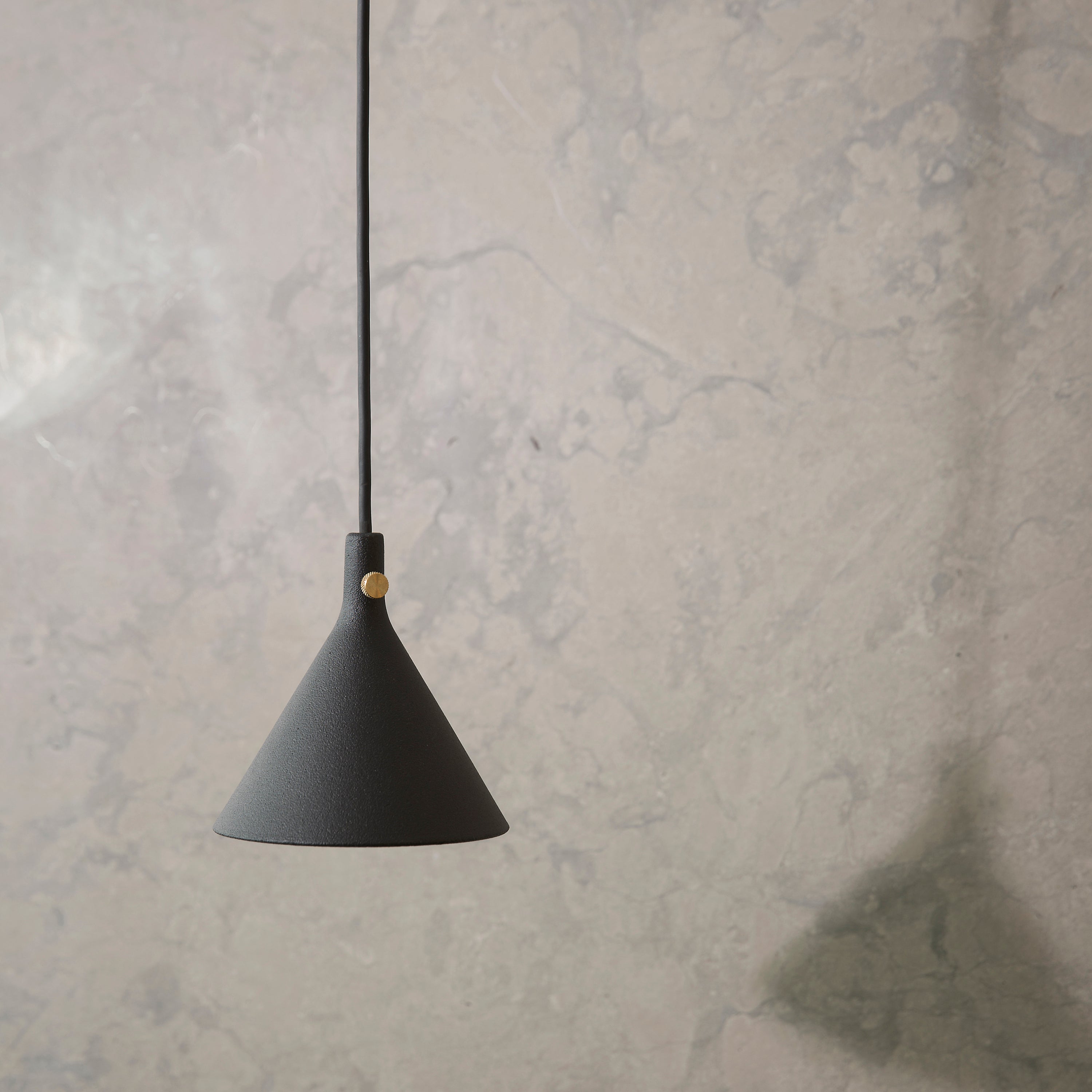 Cast Pendant Light from Toronto-based designers Tom Chung and Jordan Murphy takes inspiration from the carpenter's plumb tool, used to establish a true vertical line. Shape 1 in the series for Audo hews to a classic funnel form, Shape 2 a dome shade, and Shape 3 a bottle form, each in cast aluminum suspended from a simple cord. Hang singly or cluster with any of the variations from Danish house Menu.