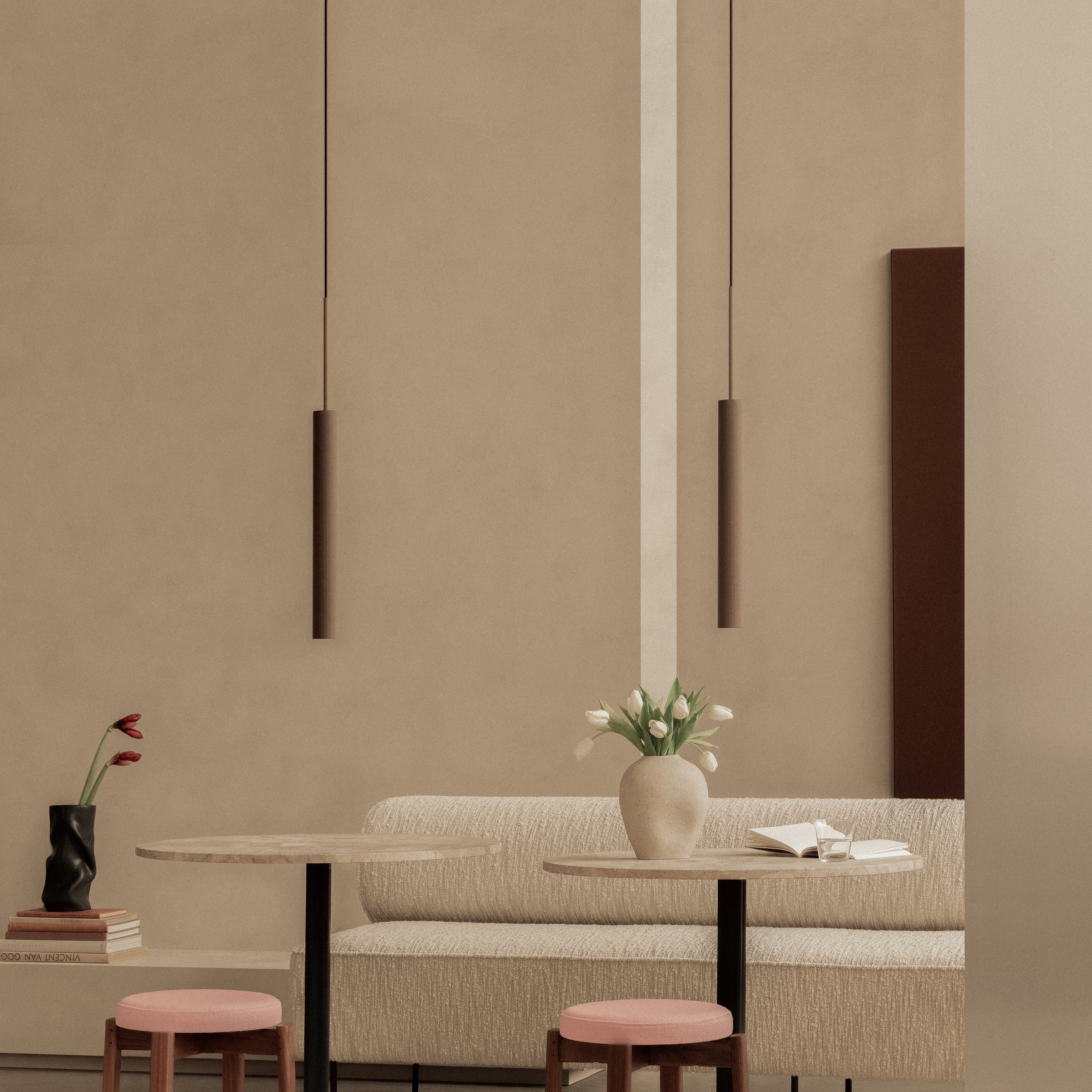 The Tubulaire Pendant Lamp, designed by Krøyer-Sætter-Lassen, is a sleek, reeded aluminum cylinder in an anodized bronzed brass finish. It offers a warm, focused light that is ideal for task-oriented areas like dining spaces or kitchen counters. Available in two sizes, this pendant's understated form allows it to complement a range of interiors, while its high-quality craftsmanship ensures long-lasting performance. With a design ethos rooted in Scandinavian simplicity, this pendant delivers both ambiance and practicality to modern interiors.