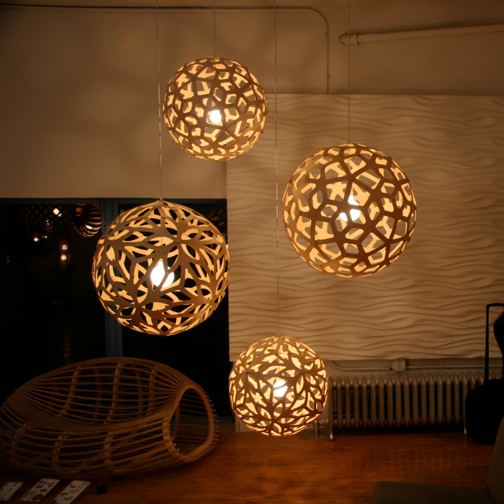Arriving in New Zealand a few years later, David began to create furnishings inspired by his time at sea and eventually expanded to include his distinctive lighting, becoming an influential presence in the design world. An environmental sensibility governs his operation there, including recycling factory and studio waste, exclusive use of hydro electricity and eco-supportive shipping and freighting. As David puts it, “If design is not actively trying to preserve our future it is, by default, destroying it."