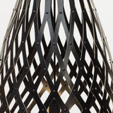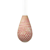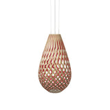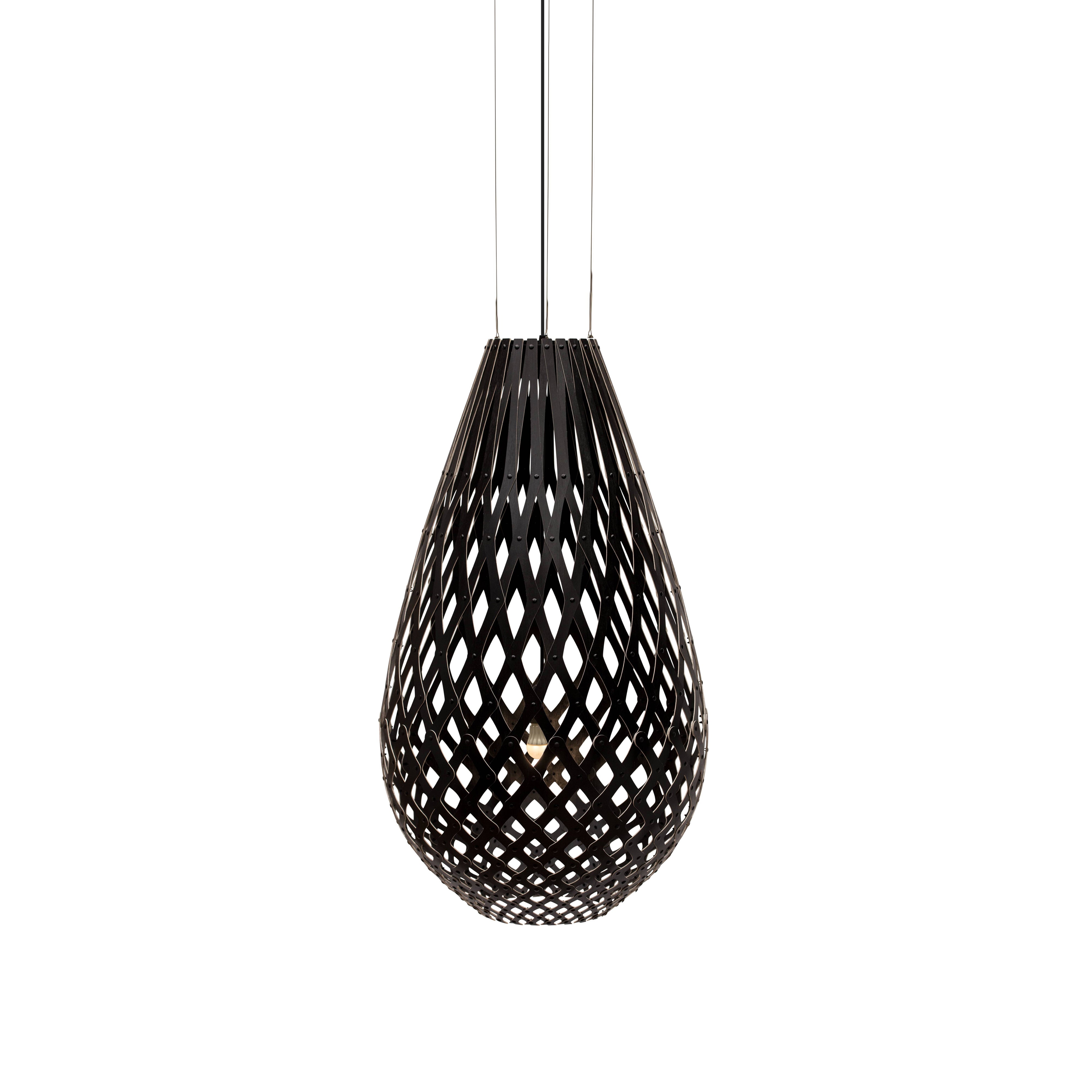"Koura is the Maori name for the small fresh water shrimps that live in our rivers. They curl up in this shape. This shape is mirrored again in the similar woven traps used for catching them," New Zealand designer David Trubridge has observed, in reference to the inspiration for his striking Kouros pendant lamp. A passion for the environment and earth drives the construction of all David's work, primarily made of renewable bamboo and flat-packed to reduce freighting and packaging resources and the identical pieces make home assembly a snap, literally. Endlessly adaptable, the light is available in 2 sizes and 9 stock colors (custom colors upon request) in natural or painted bamboo with nylon clip fasteners. The celebrated designing craftsman ended up in his adopted home of New Zealand after he, his wife and their two sons sold everything and set off on a yacht for a world adventure. It culminated in 1985 when they decided to remain there. While an artist-in-residence, he built a house and suddenly found himself with further commissions. Before realizing homes, lamps and furniture, David left Newcastle University in 1972 with a degree in Naval architecture. His work has appeared in countless museums, including the Victoria & Albert and the Pompidou Centre. That barely scratches the surface of his fascinating story and work ethos.