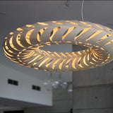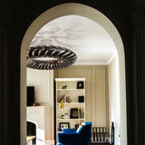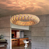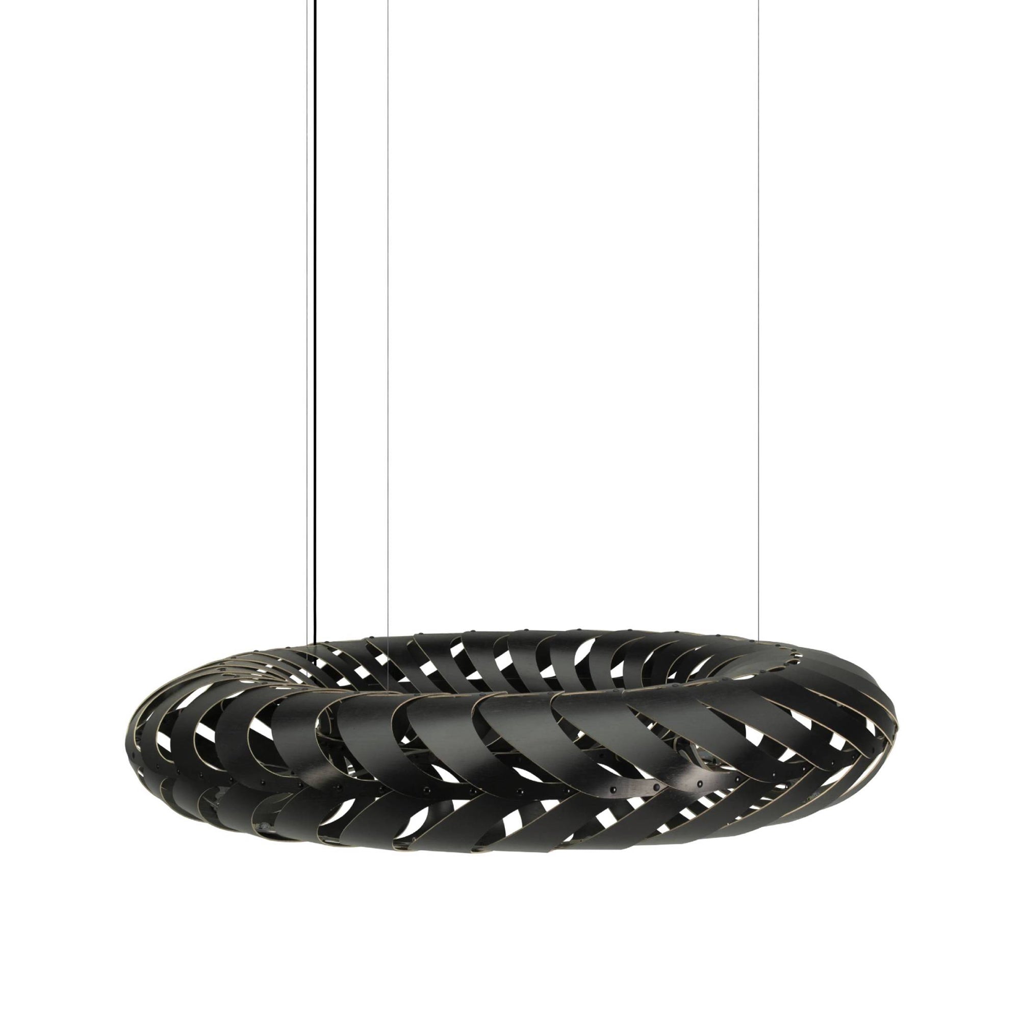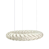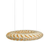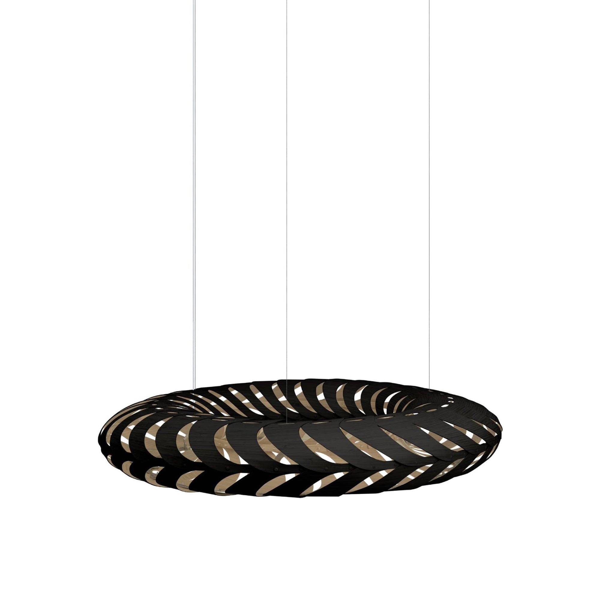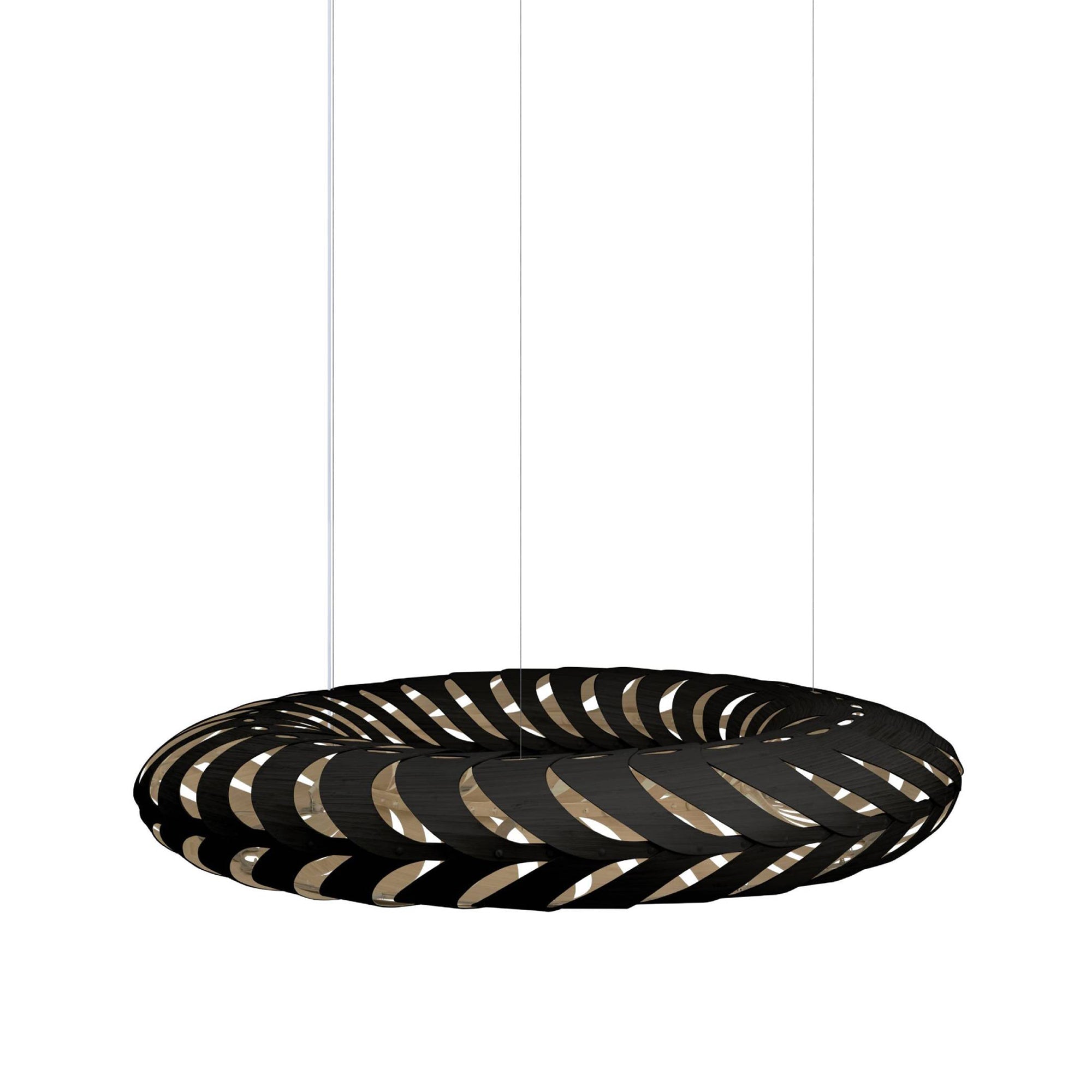 Lit internally by low-energy LED modules, Maru's curving panels of sustainably managed bamboo plywood swirl around its round form. The circular construction also references the cycle of life in the name Maru, found in both New Zealand Mãori and Japanese languages. Casting kaleidoscopic shadows on the surrounding walls and ceiling, the suspended light makes a dramatic addition to any setting, in natural or a range of mistily tinted colorways.