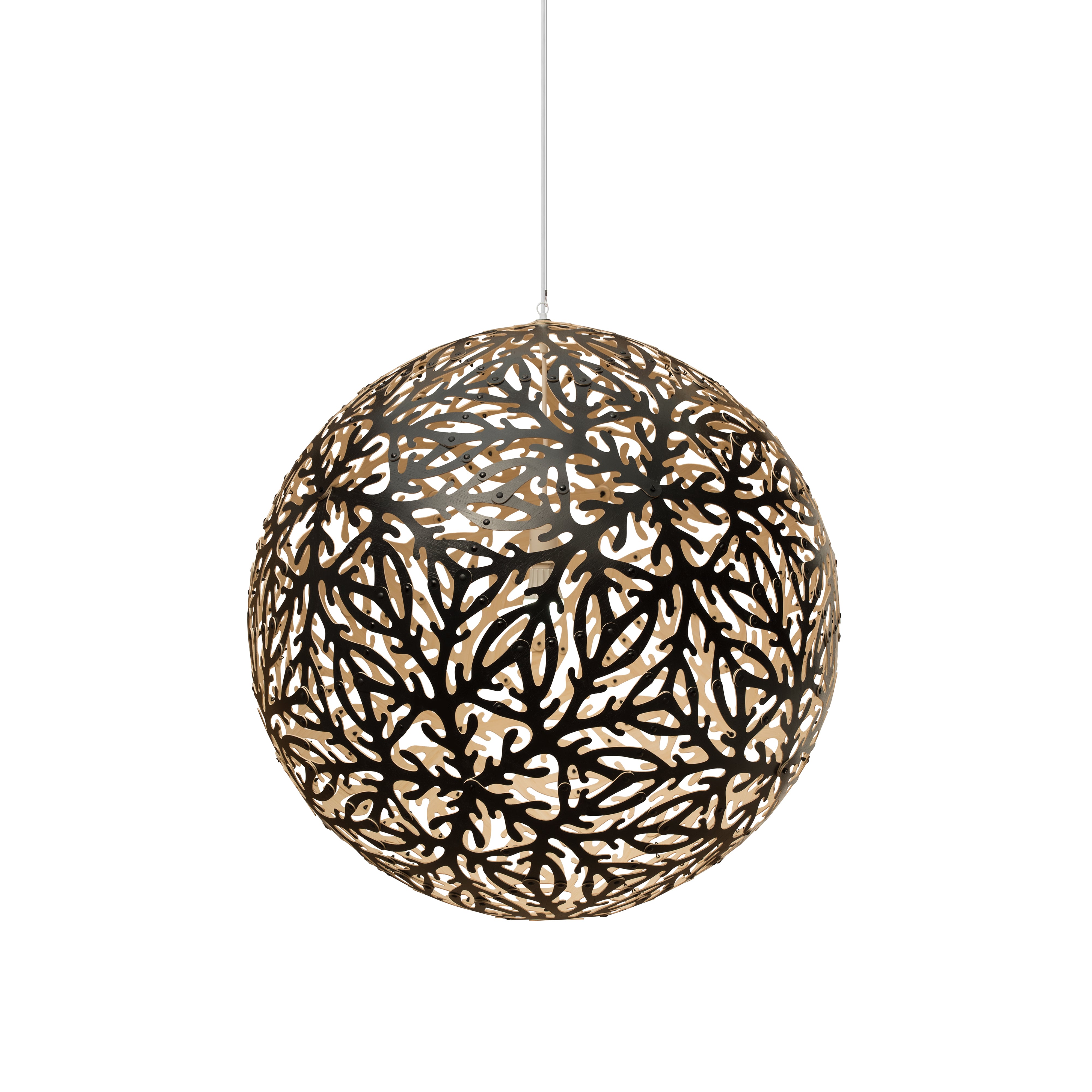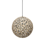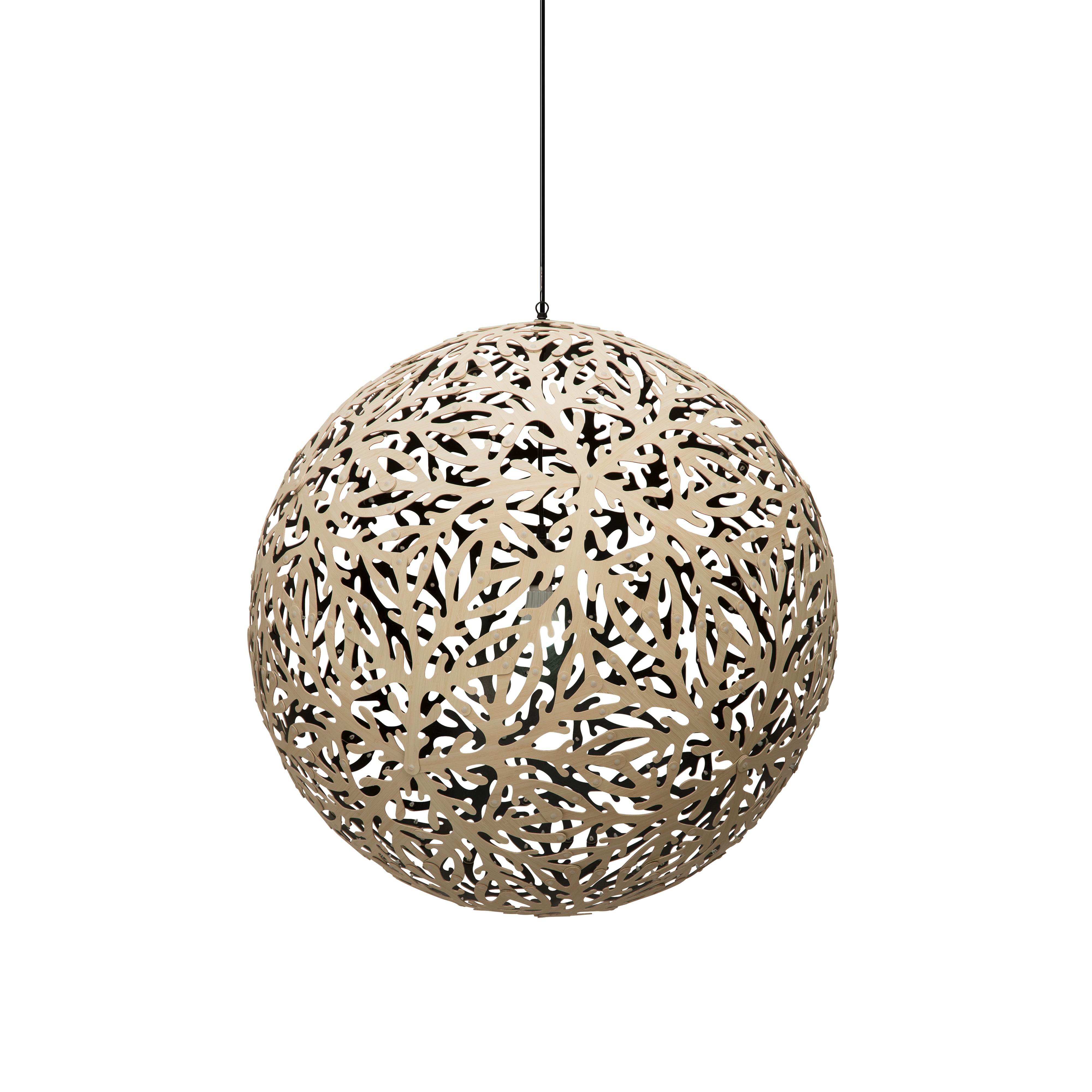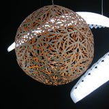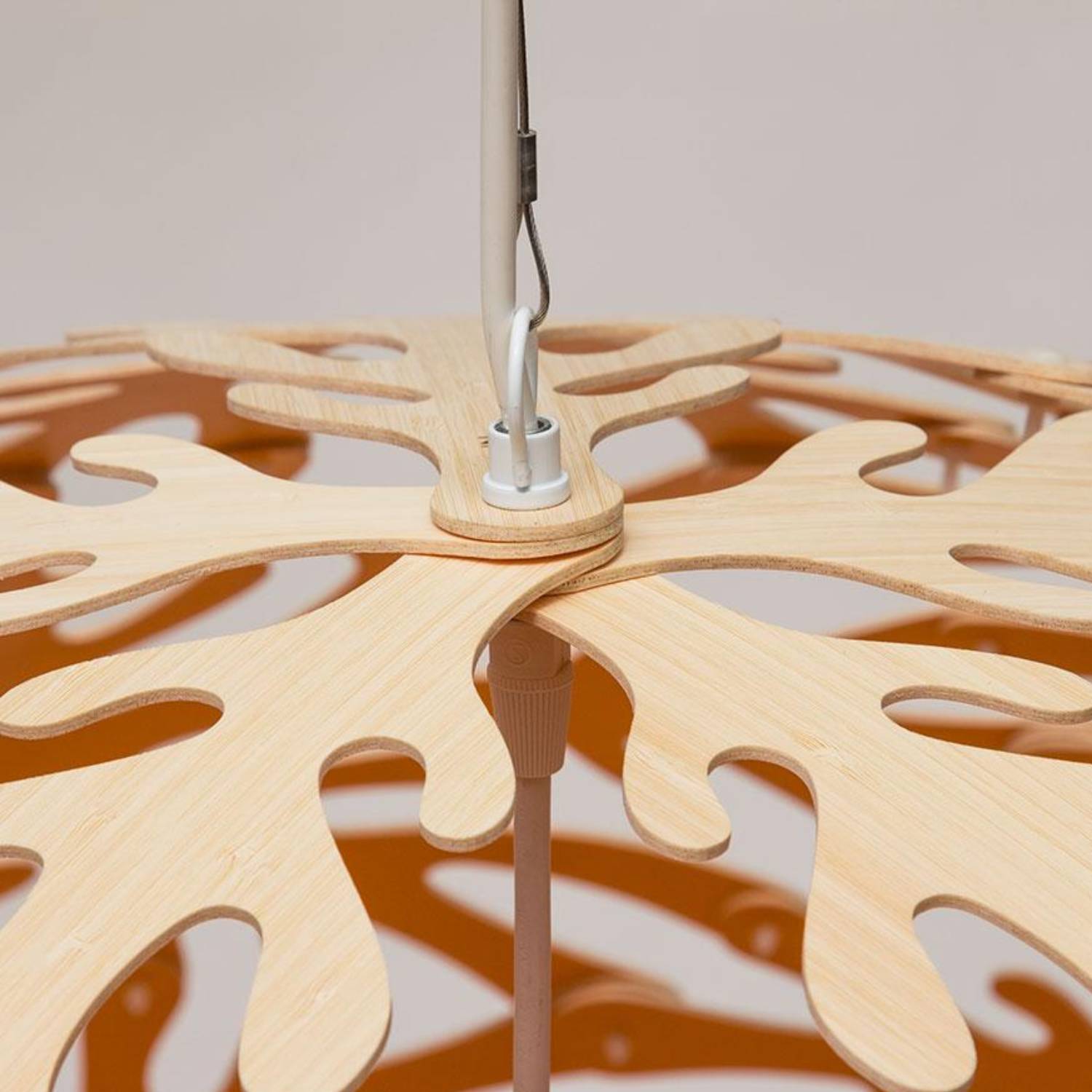With the Sola Pendant Light, designer David Trubridge ruminates on Icarus, the Greek myth about the boy who flew too close to the sun. Echoing the heat that melted the lad's wings, the shade's intricate pattern looks much like flares that form and curl on the solar surface. In sustainably sourced bamboo plywood in a natural finish or natural with an orange interior to heighten the fiery effect. First acclaimed at a Milan design fair installation, along with David's sculptural Wing light (also at A+R), and subsequently acquired by the Pompidou Centre in Paris for its permanent collection.