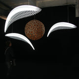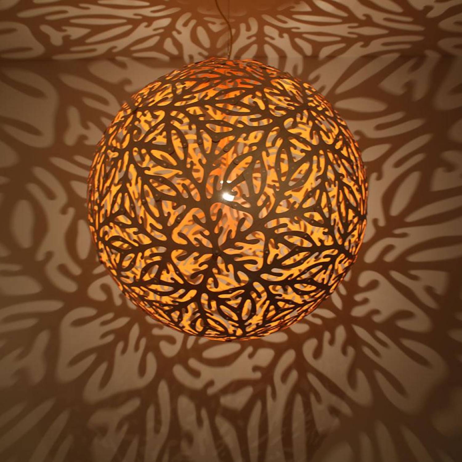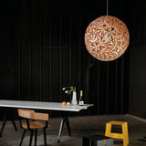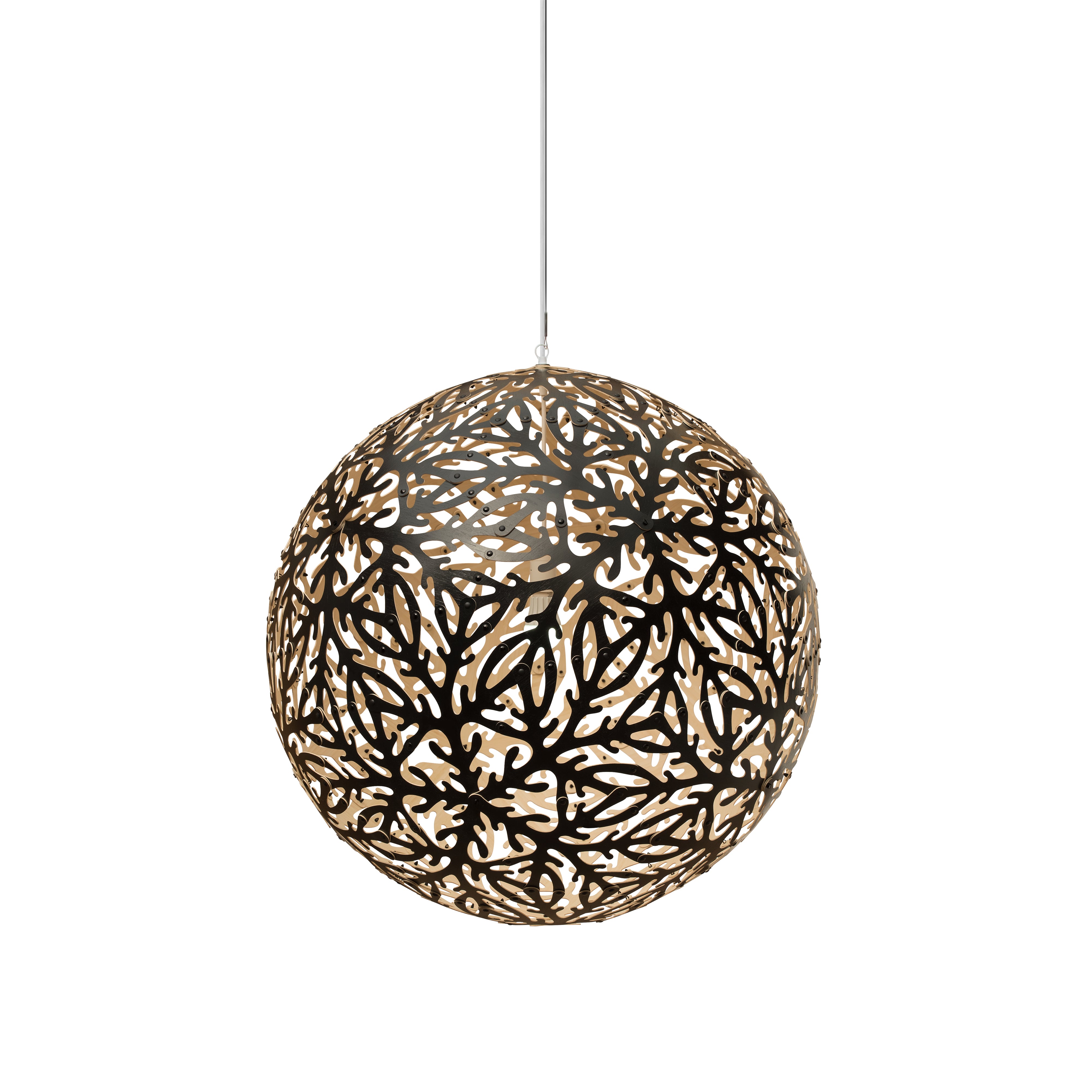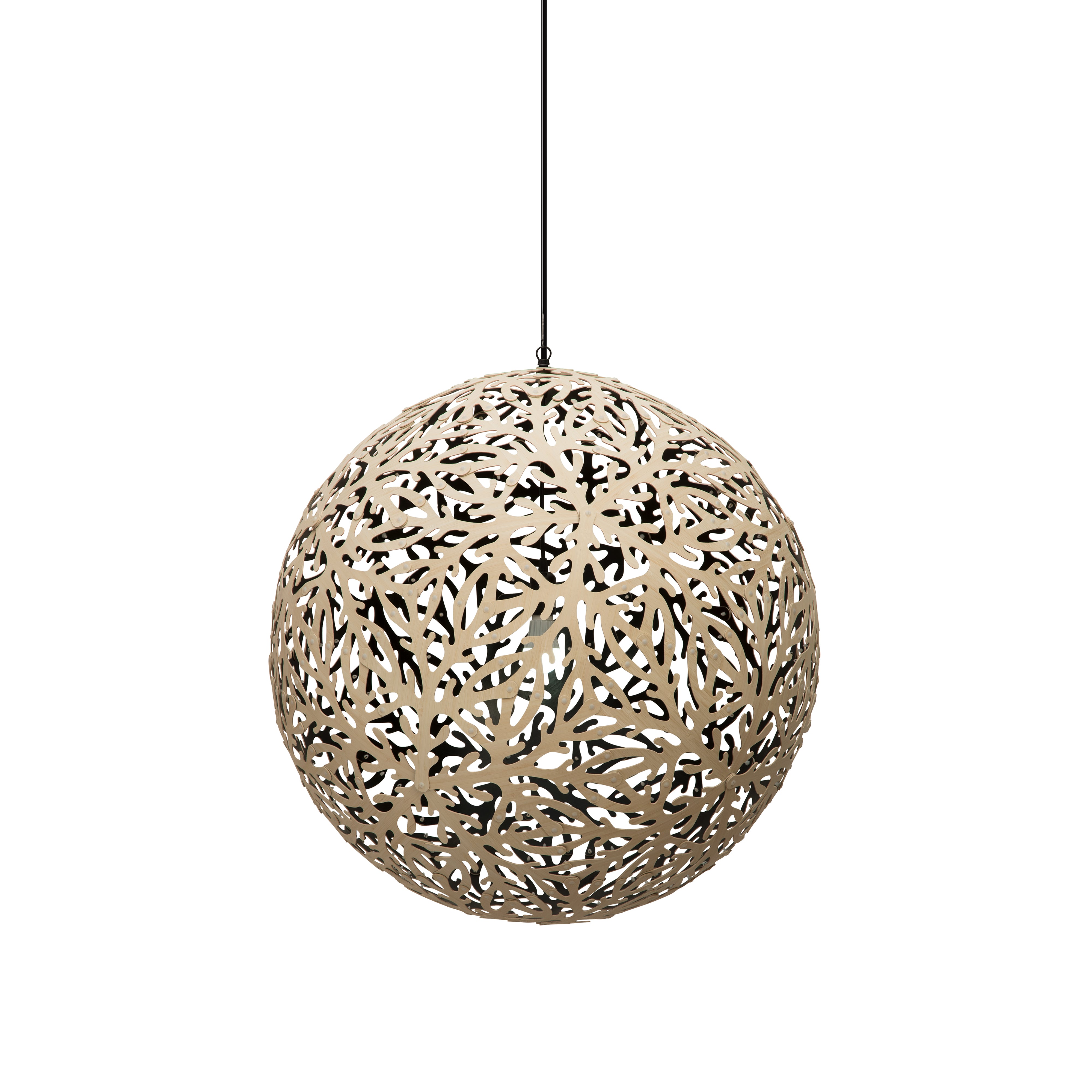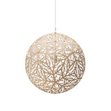 With the Sola Pendant Light, designer David Trubridge ruminates on Icarus, the Greek myth about the boy who flew too close to the sun. Echoing the heat that melted the lad's wings, the shade's intricate pattern looks much like flares that form and curl on the solar surface. In sustainably sourced bamboo plywood in a natural finish or natural with an orange interior to heighten the fiery effect. First acclaimed at a Milan design fair installation, along with David's sculptural Wing light (also at A+R), and subsequently acquired by the Pompidou Centre in Paris for its permanent collection.
