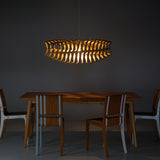 Inspired by the natural beauty of microscopic diatoms, the horizontal expanse of the triple-sided Toru twists and turns alluringly, appropriately named after the Te Reo Māori word for "3." Adding verve to any decor with its range of colorways, David Trubridge’s bamboo pendant adds to the ambiance with its enchanting shadow play.