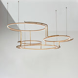 French design emminence Éric de Dormael creates a multi-level suspended light sculpture for DCW Éditions Paris with a fluid interplay of varied rounded forms. Rendered in natural brass, the looping structure is powered by an integrated LED to create a subtle interplay of light and shadow, with reflections that dance off the surrounding walls.