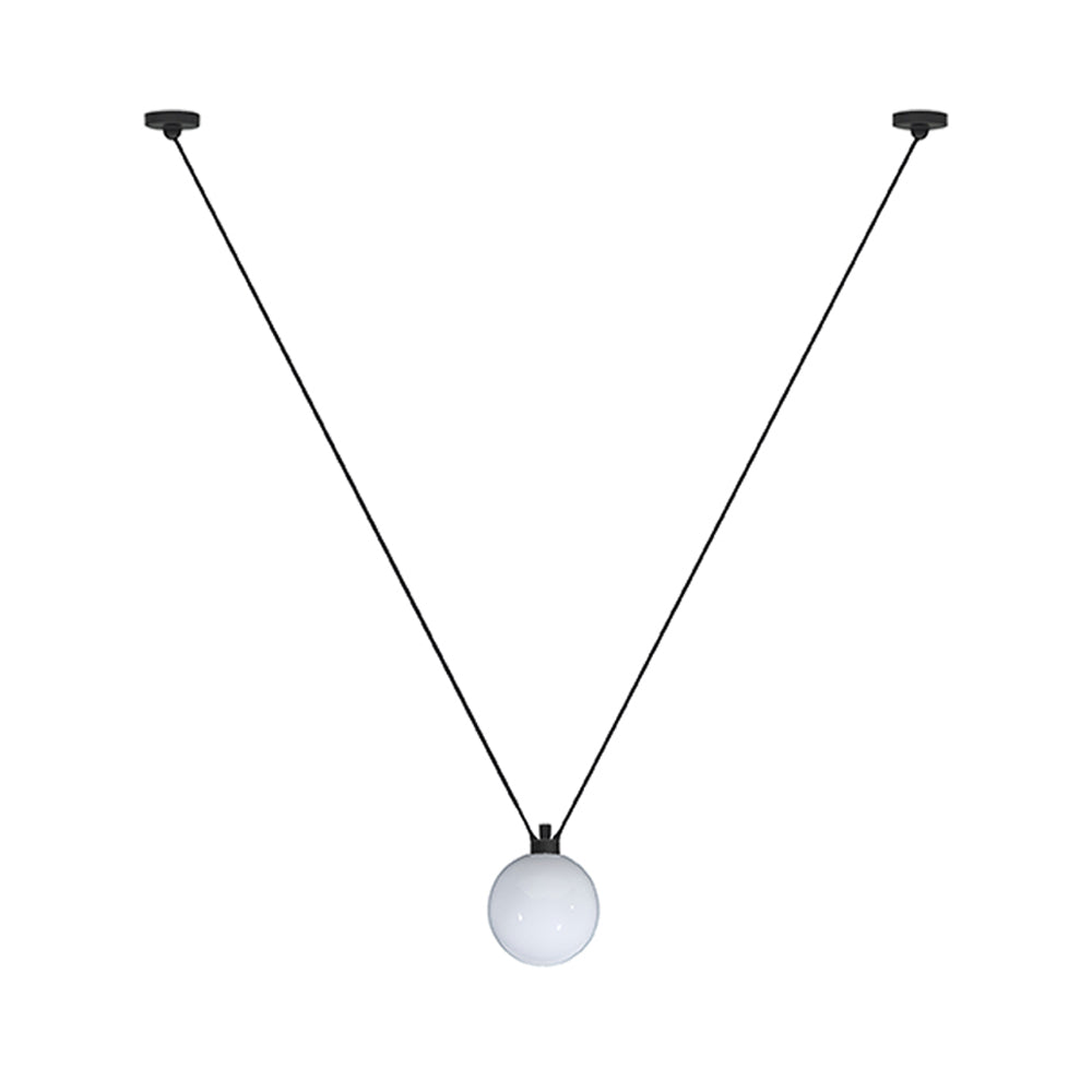 The Les Acrobates N° 323 Pendant with glass ball features a distinctive silhouette, with an opal glass globe suspended gracefully from a minimalist structure. Designed to evoke the image of acrobats in motion, this lamp provides both direct and diffused light, making it a striking focal point in any space. The design, part of the broader Les Acrobates de Gras collection, is rooted in the brand's commitment to producing timeless, well-crafted objects that bridge past and present.