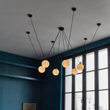The Les Acrobates de Gras N°326 Glassball Pendant Lamp features six opaline glass globes suspended from adjustable cables, allowing for flexible arrangements that add movement and rhythm to any space. The opaline glass softly diffuses light, creating a warm and inviting ambiance. The adjustable cables let the globes be positioned at varying heights and angles, making them suitable for different interior styles, from traditional to more modern settings.