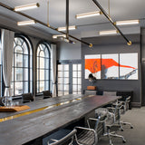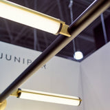 Juniper’s unique cylindrical LED modules span the full length of any space via expandable segmented components. Designed by David Meckley, the high-output array offers a powerhouse lighting solution for workspaces and hospitality settings. The top and bottom hemispheres of each cylinder can be independently dimmed for direct and indirect illumination and the light can be diffused further with the black mesh option, a Metropolis signature. All lighting is carefully made at Juniper’s design and manufacturing Connecticut headquarters.