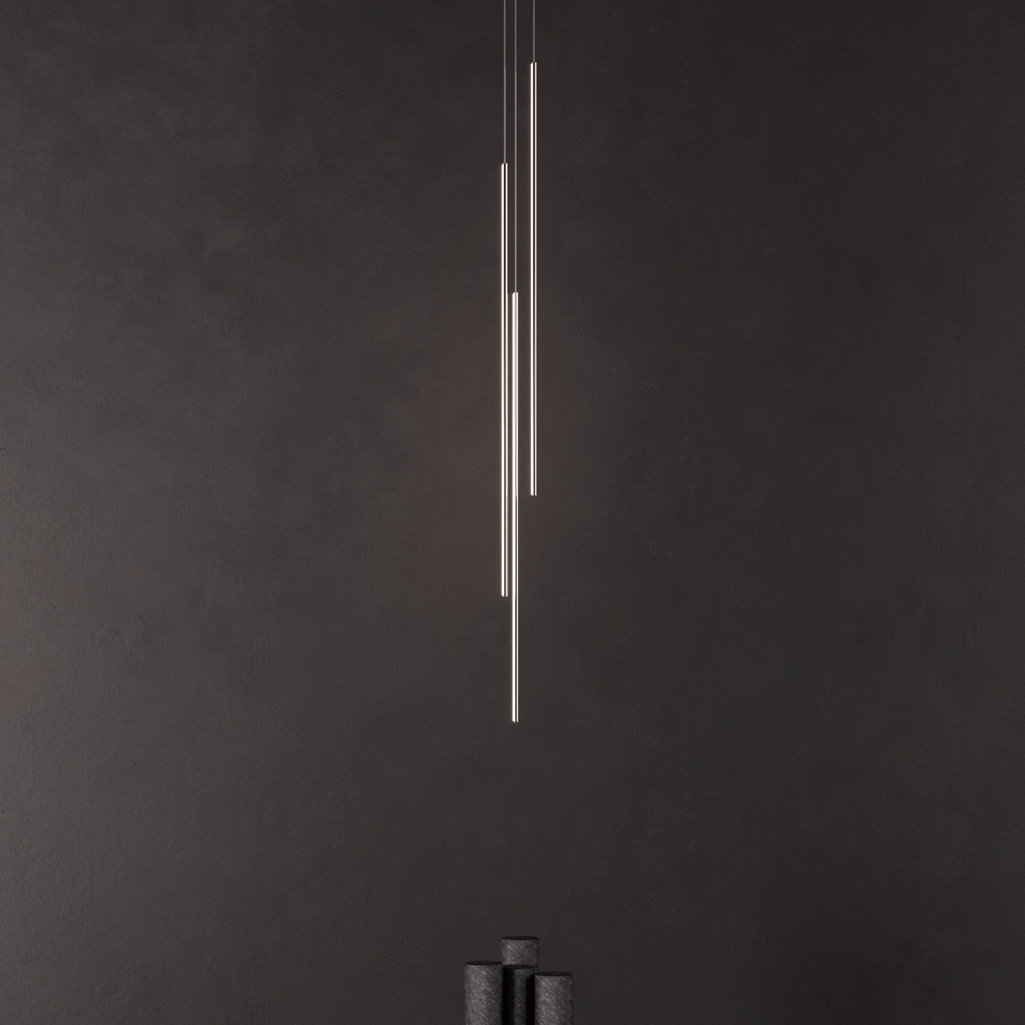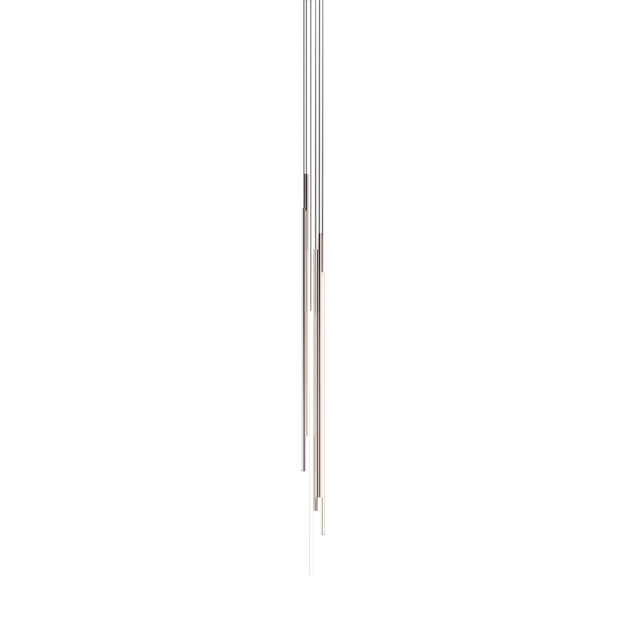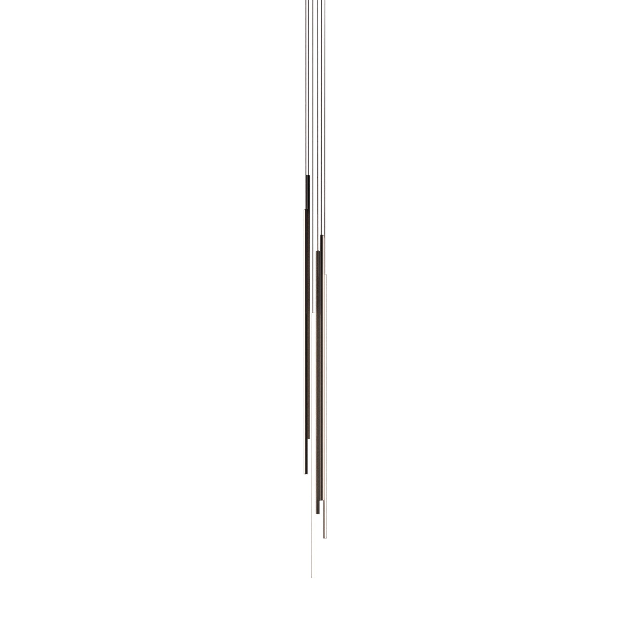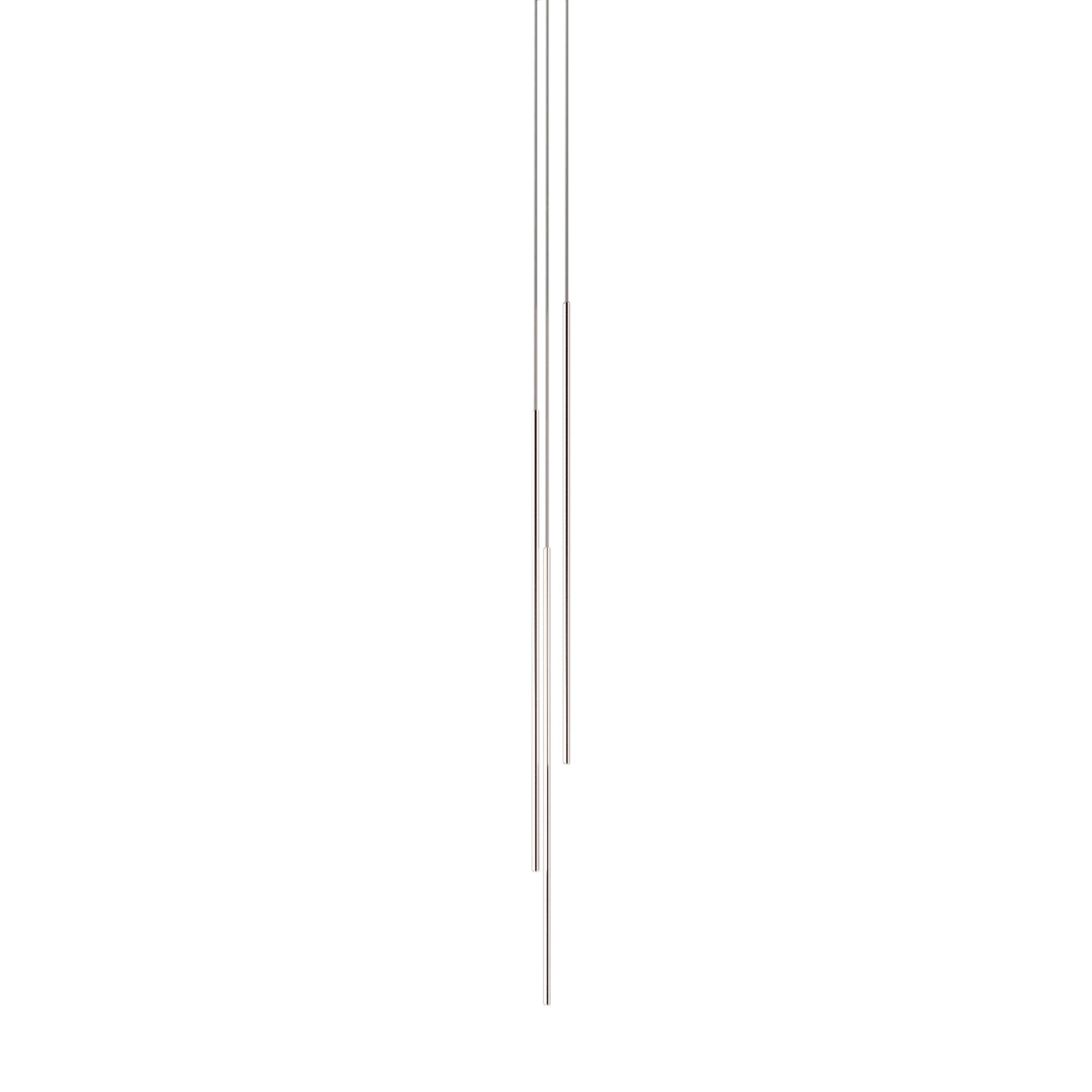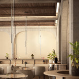 Thin Vertical Suspension drops as a single attenuated line, emblematic of Juniper’s signature 1/2-inch diameter lighting innovation. Each LED segment can be rotated 360 degrees on-site to direct the illumination as needed and may be installed singly or clustered with up to 6 segments, each individually adjusted for height. Available in 3 lengths and a choice of luxe finishes, each segment is weighted so it does not move as it drops from the ceiling but remains still and steady.