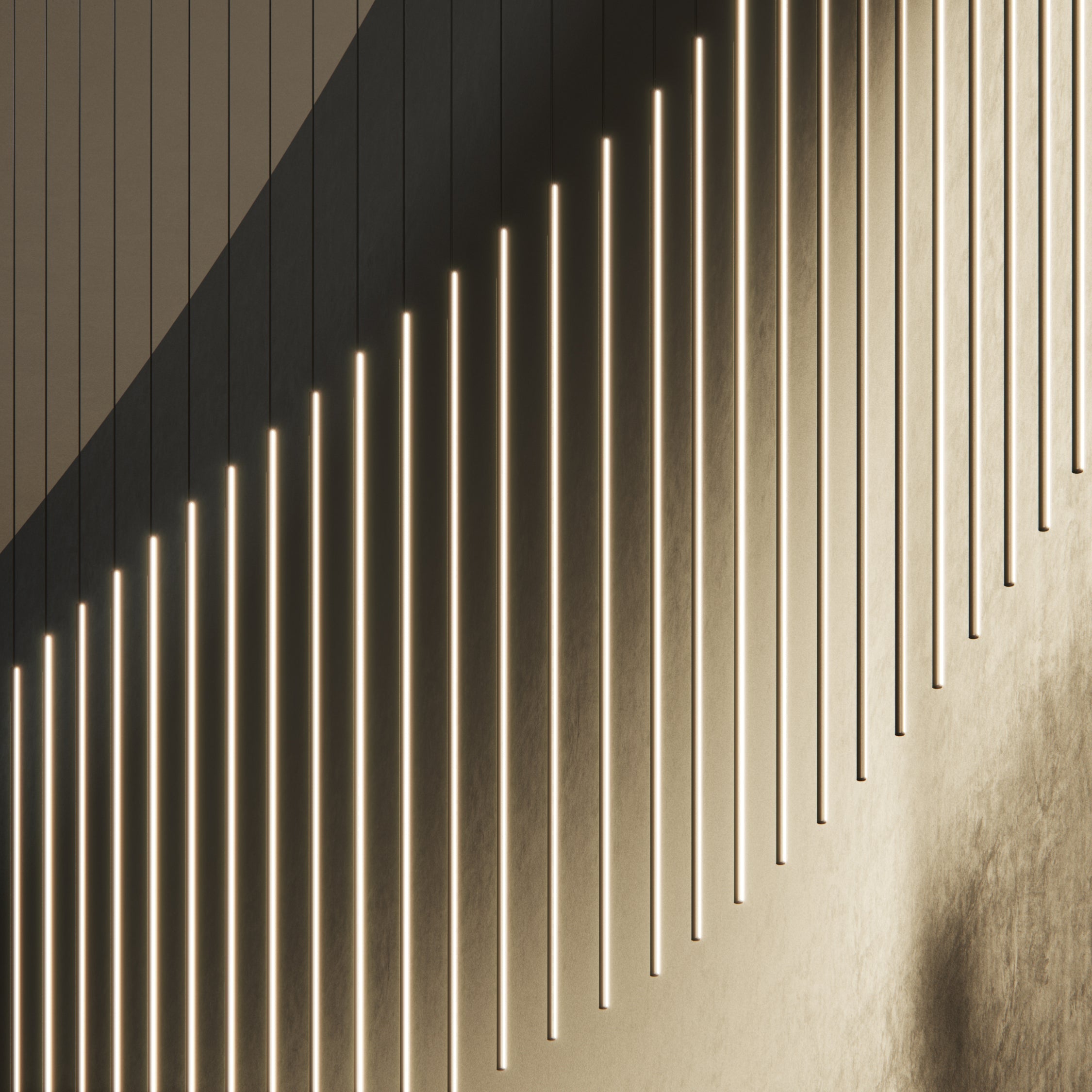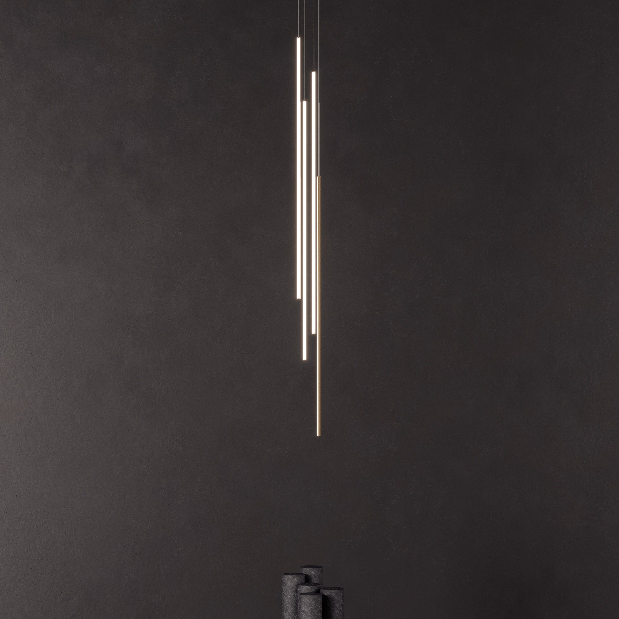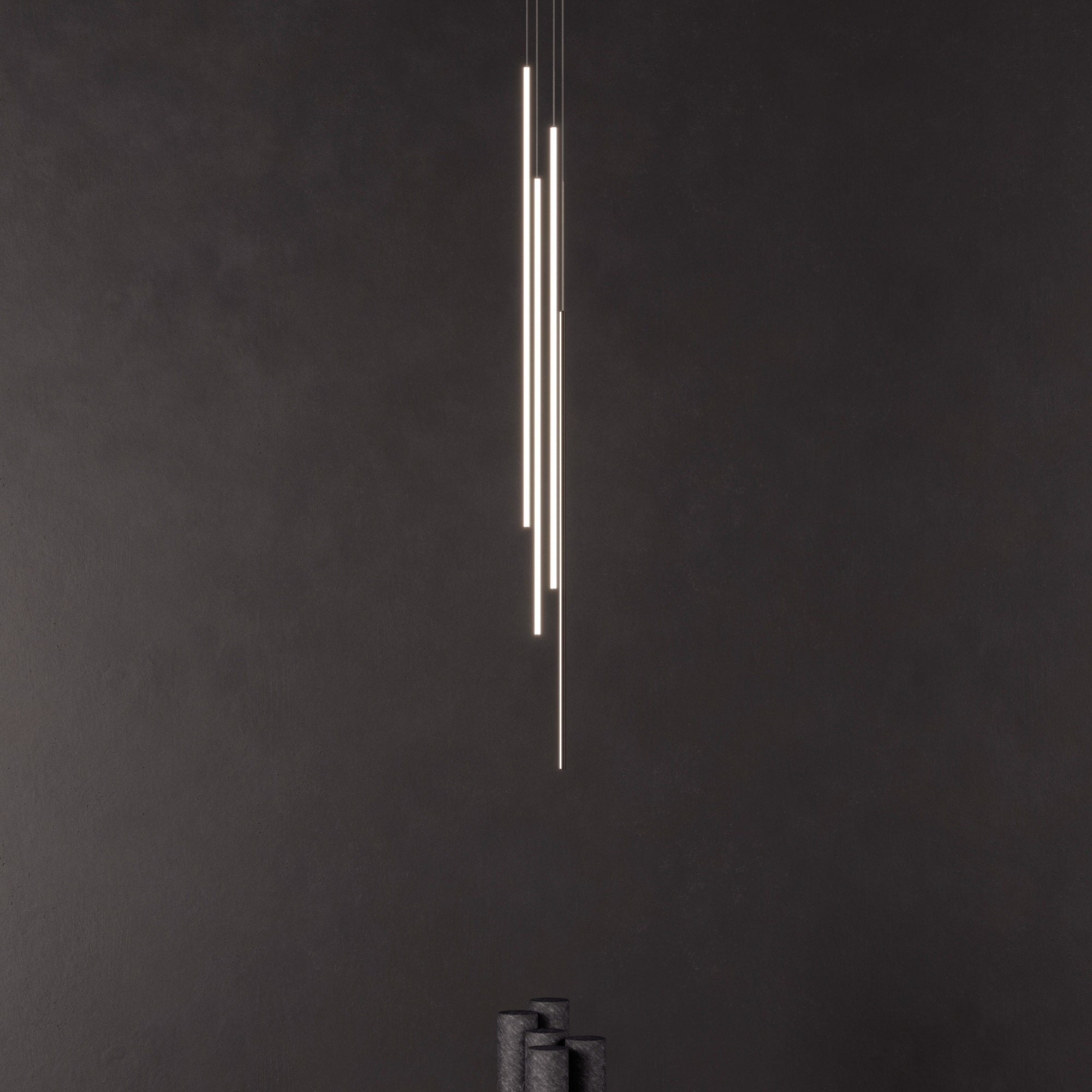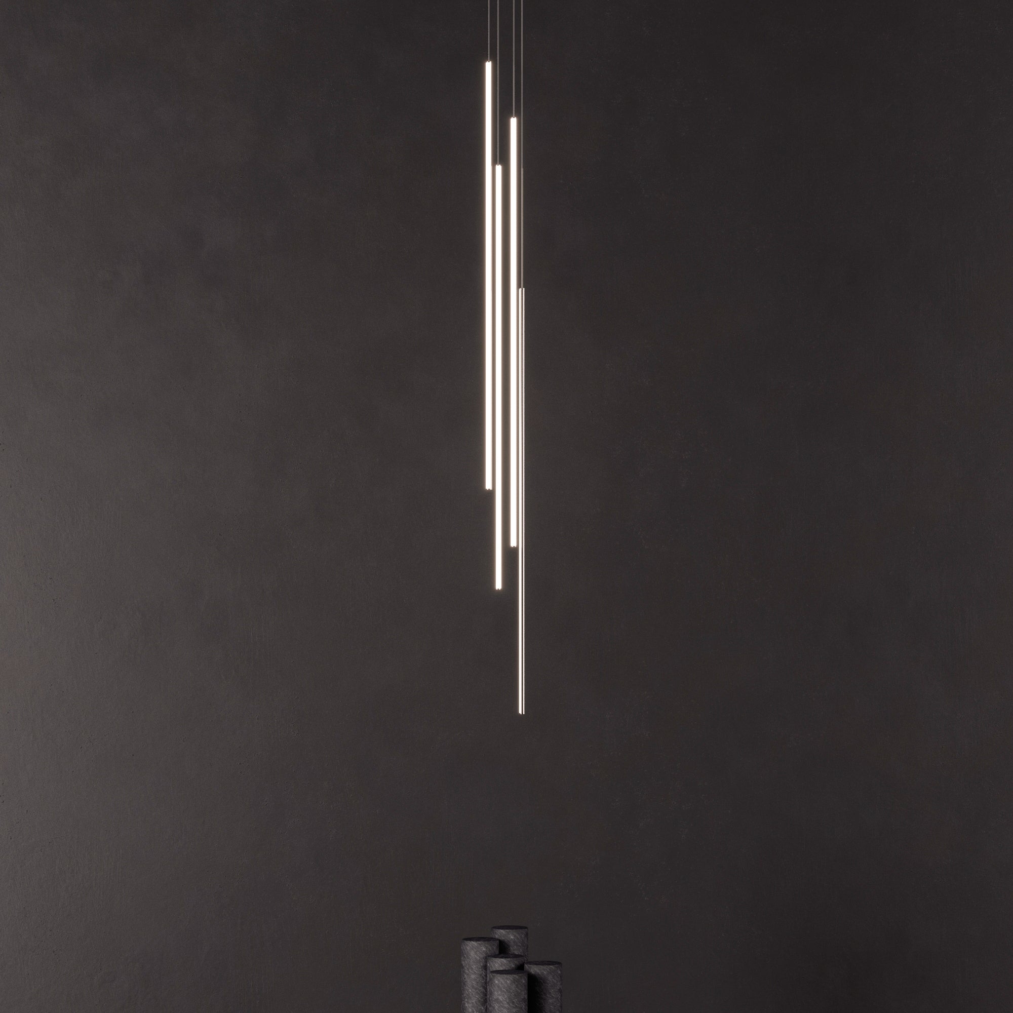 Thin Vertical Suspension drops as a single attenuated line, emblematic of Juniper’s signature 1/2-inch diameter lighting innovation. Each LED segment can be rotated 360 degrees on-site to direct the illumination as needed and may be installed singly or clustered with up to 6 segments, each individually adjusted for height. Available in 3 lengths and a choice of luxe finishes, each segment is weighted so it does not move as it drops from the ceiling but remains still and steady.
