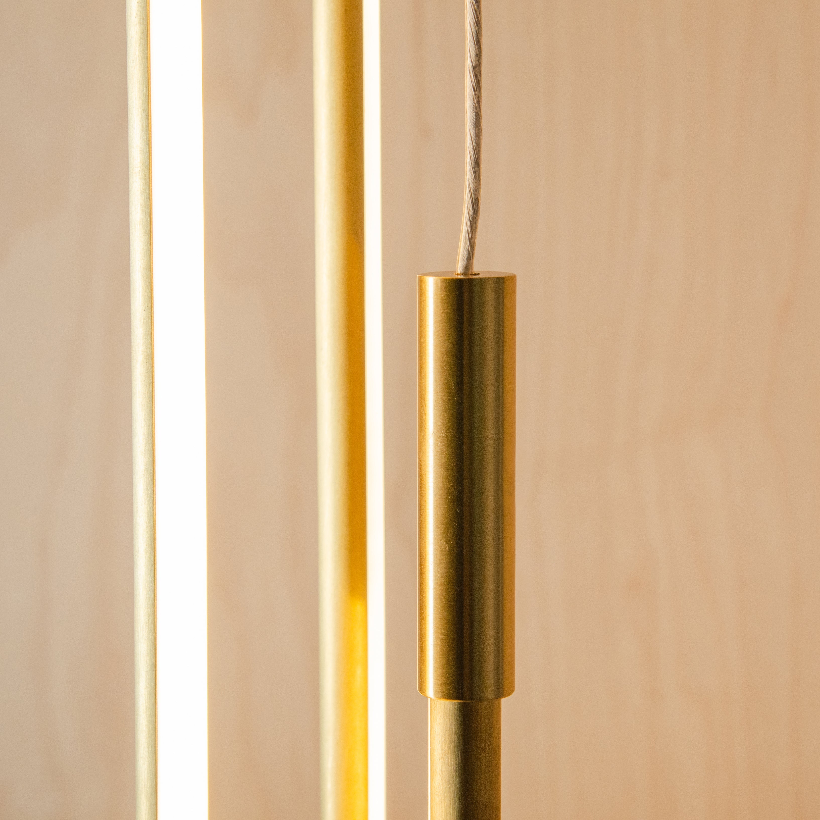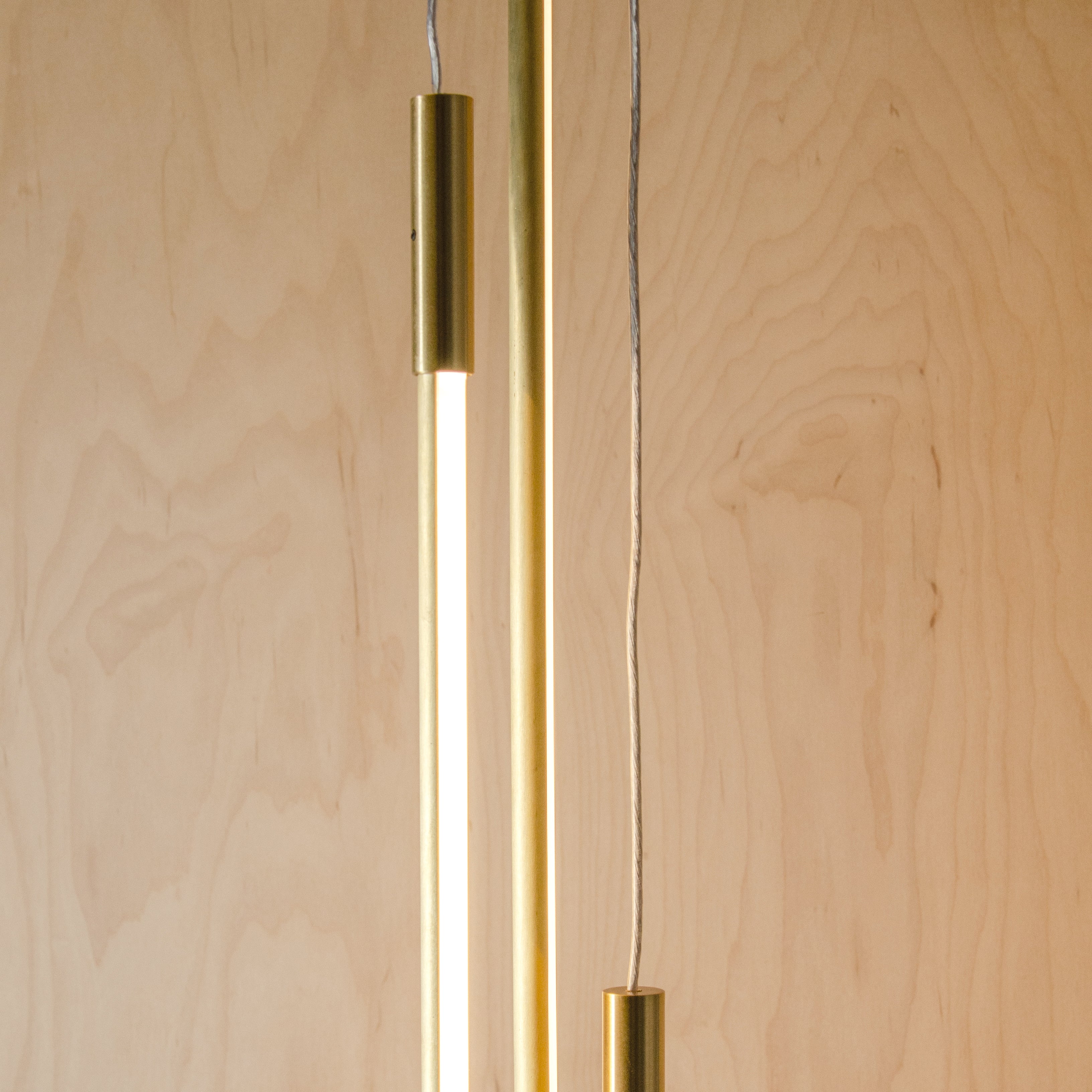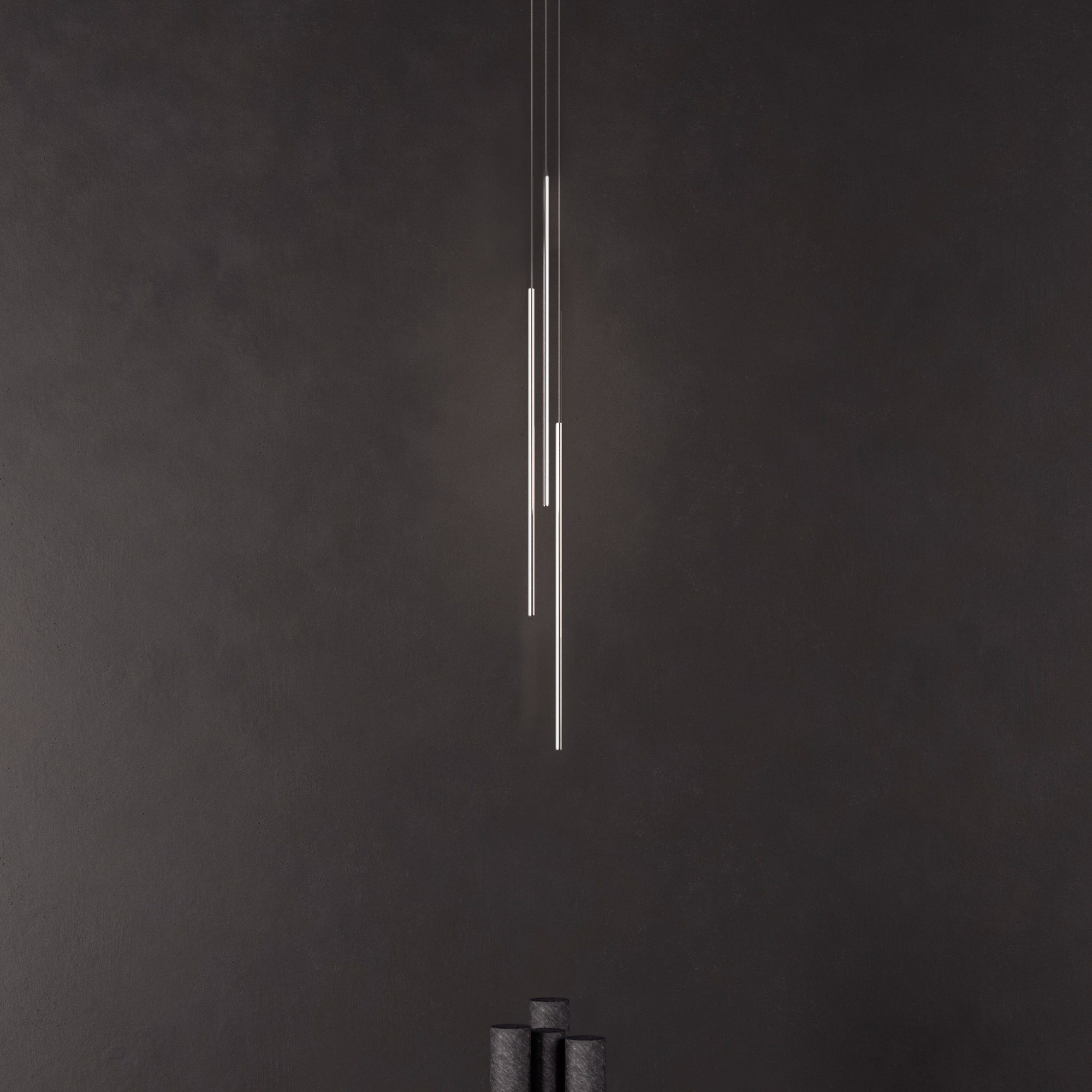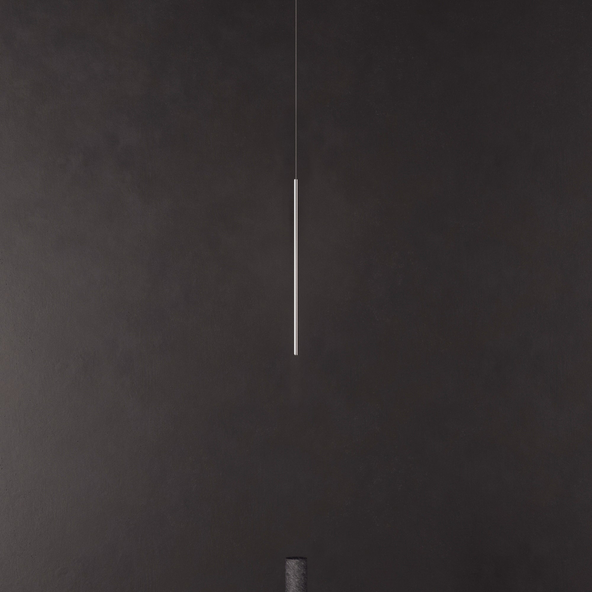 Thin Vertical Suspension drops as a single attenuated line, emblematic of Juniper’s signature 1/2-inch diameter lighting innovation. Each LED segment can be rotated 360 degrees on-site to direct the illumination as needed and may be installed singly or clustered with up to 6 segments, each individually adjusted for height. Available in 3 lengths and a choice of luxe finishes, each segment is weighted so it does not move as it drops from the ceiling but remains still and steady.