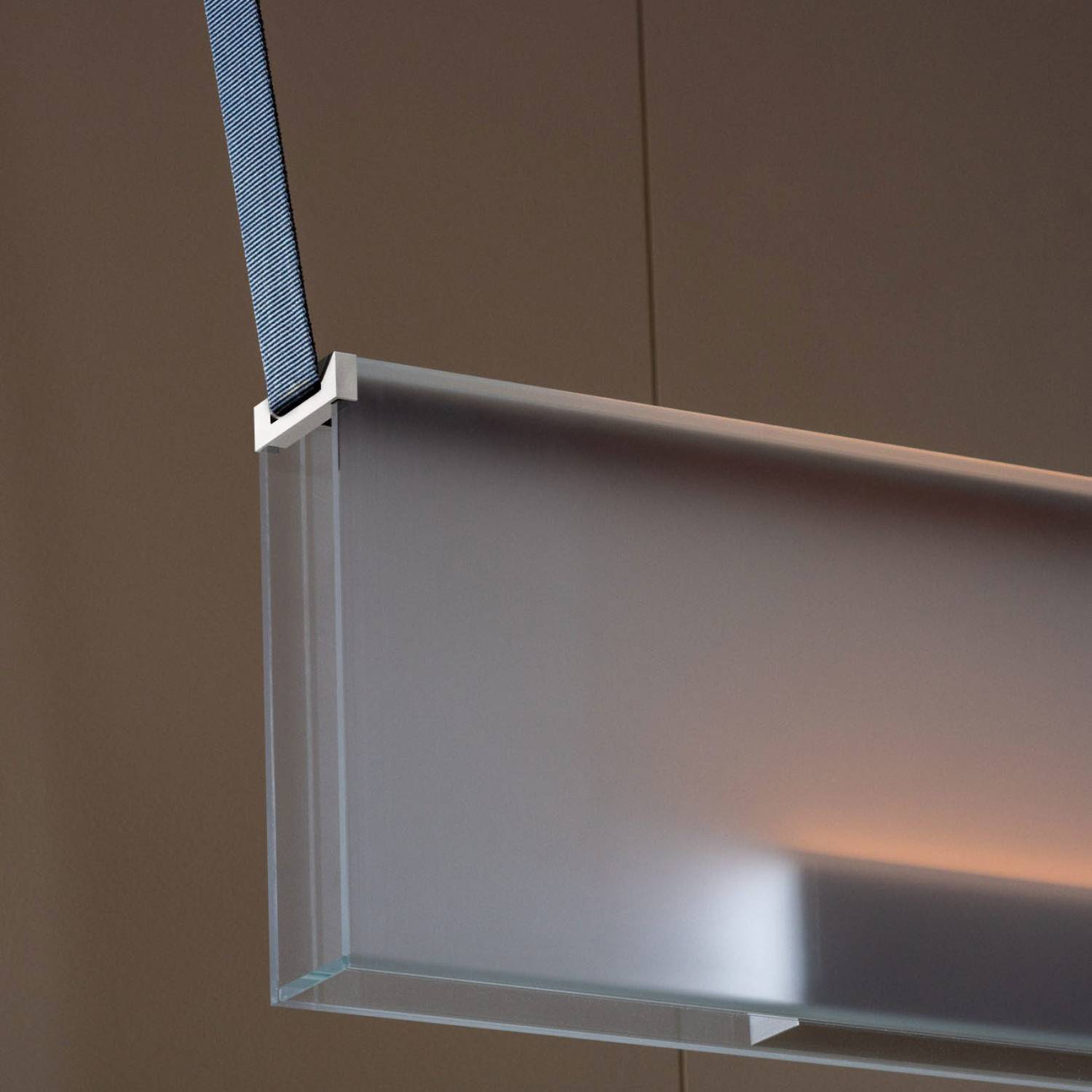 An elongated rectangle, the 02—like its majestic siblings in the Sainte Atelier range—is scaled for large spaces and high ceilings. Conceived in collaboration with Canadian designer Rachel Bussin, the boldly hued, laminated glass structure has a radiant glow and a substantial presence, suspended by bold lengths of nylon ribbon. Powered by an integrated LED array in a choice of color temperatures, the removable aluminum lightbox can be oriented to cast illumination up or down.