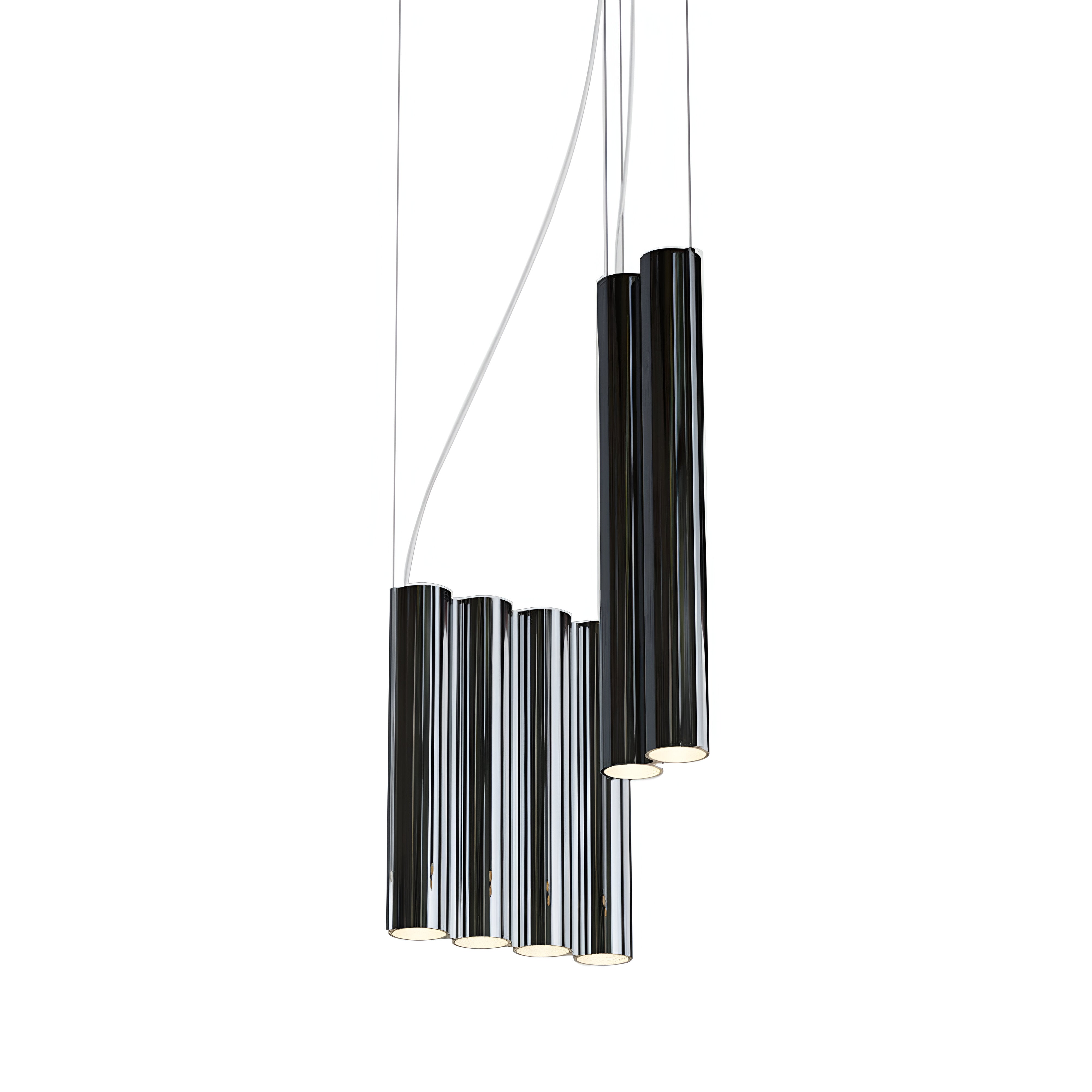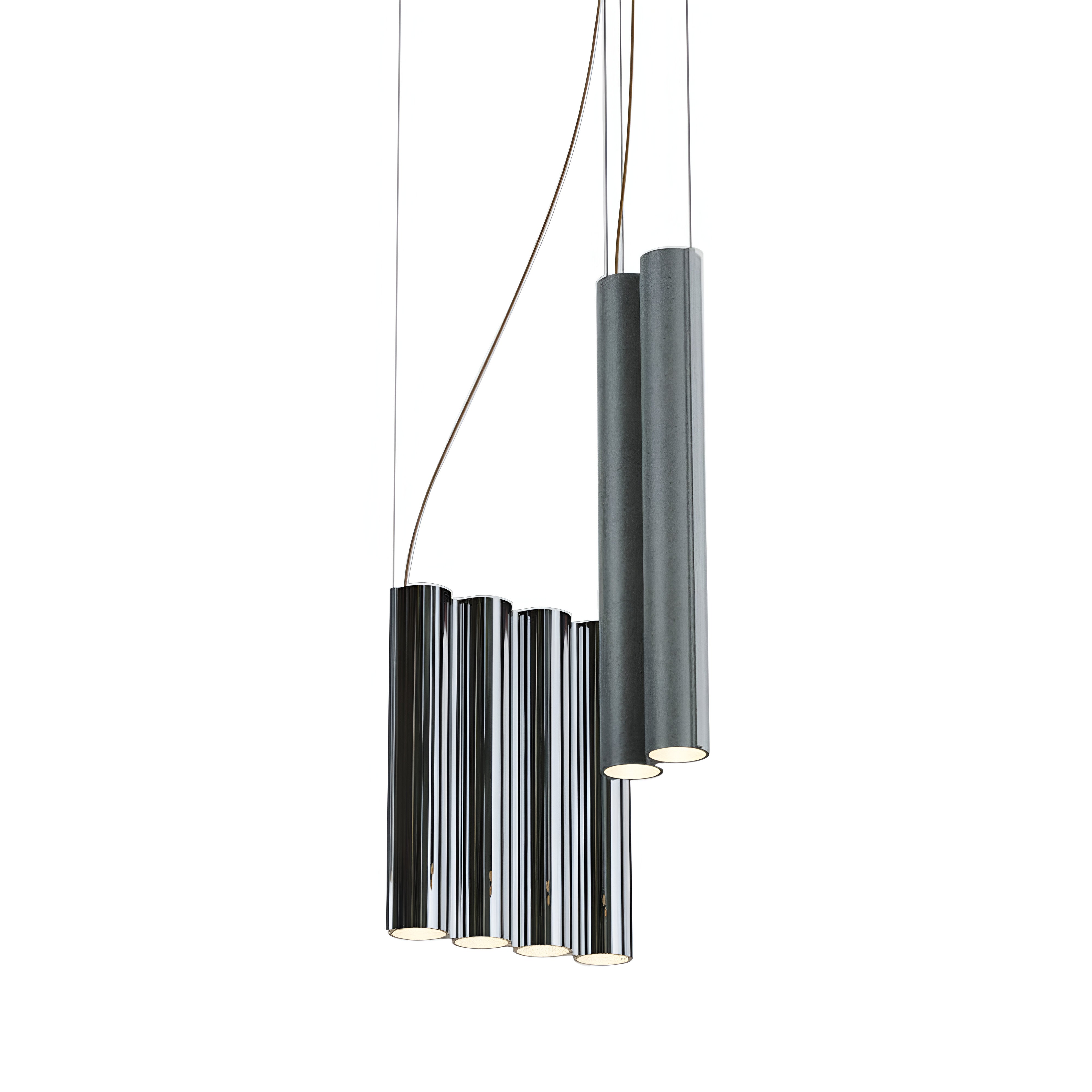 Silo 10’s right-angled 2 shapes, like Lambert & Fils' sibling clustered suspension lamps, take design cues from brutalist concrete towers, cityscapes and even metallic wind instruments. Elegantly translated as custom aluminum extrusions offered in varied finishes, the modular uplight-downlight creates a theatrical yet sleek composition.