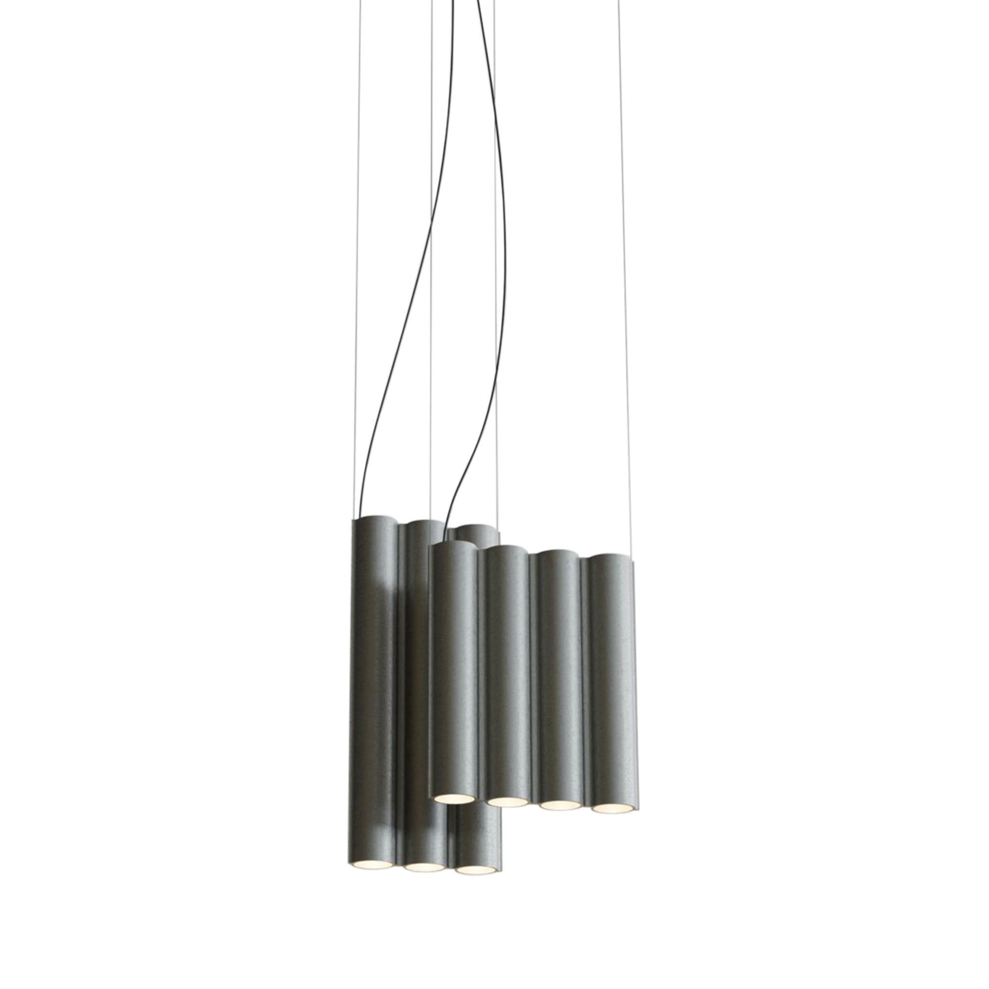 Silo 11’s parallel 2 shapes, like Lambert & Fils' sibling clustered suspension lamps, take design cues from brutalist concrete towers, cityscapes and even metallic wind instruments. Elegantly translated as custom aluminum extrusions offered in varied finishes, the modular uplight-downlight creates a theatrical yet sleek composition.
