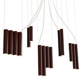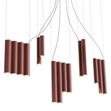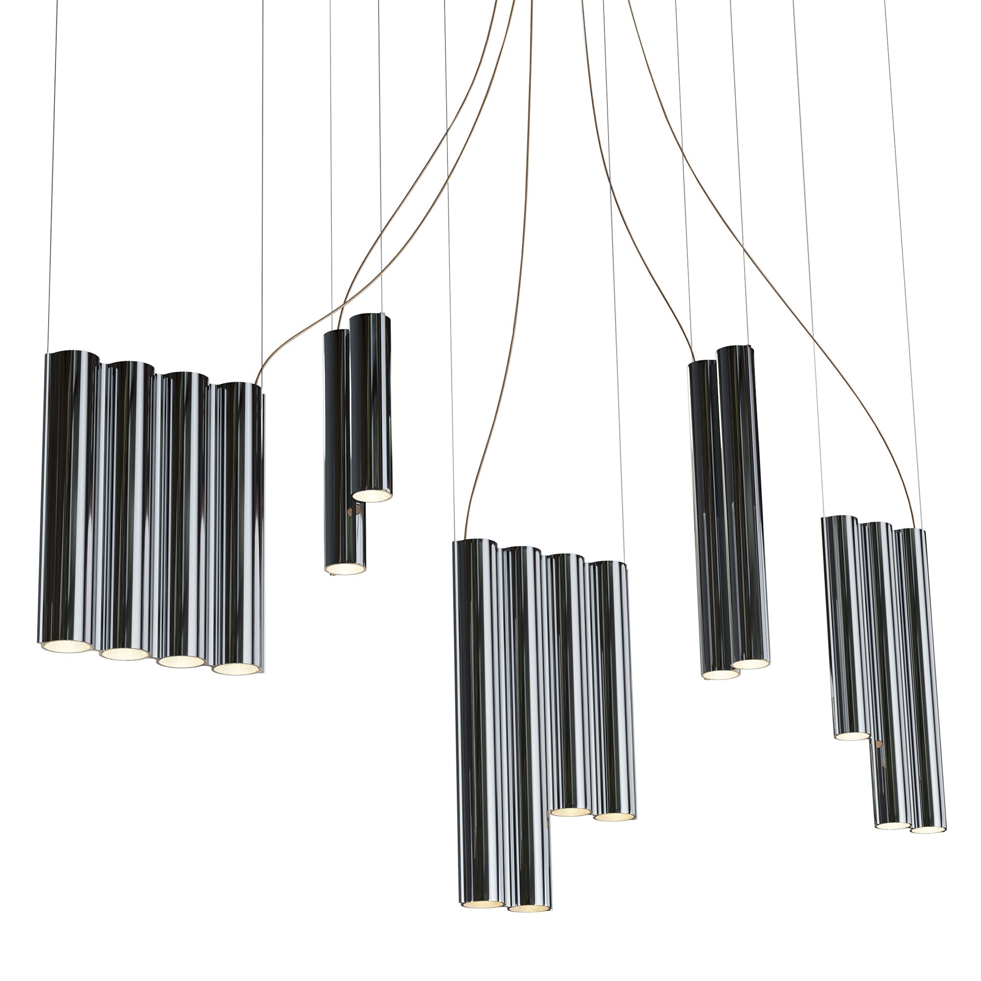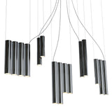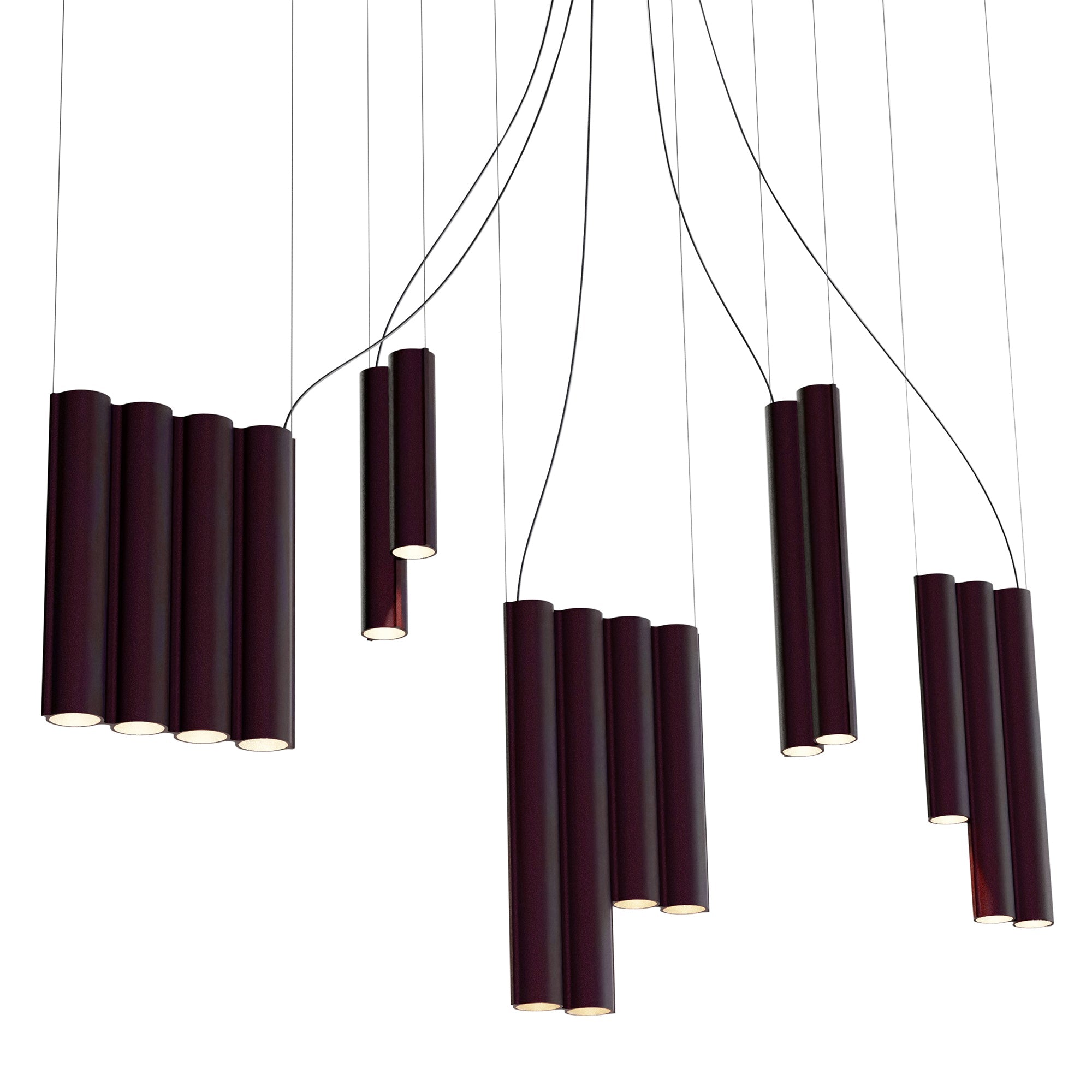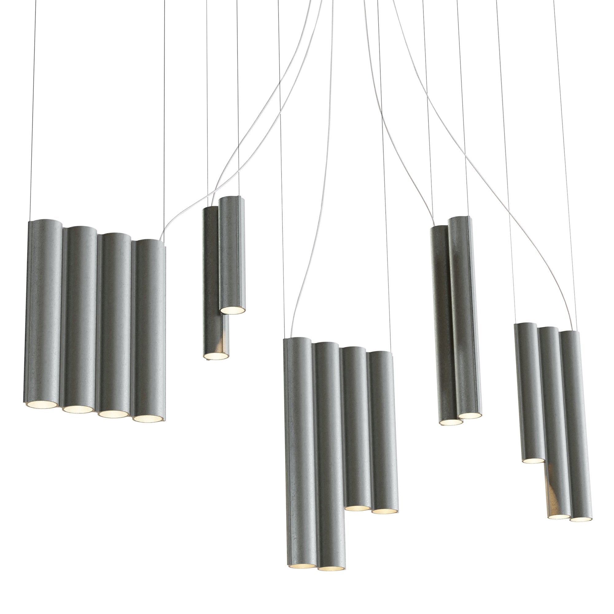 Silo 12’s display of 5 shapes, like Lambert & Fils' sibling clustered suspension lamps, takes design cues from brutalist concrete towers, cityscapes and even metallic wind instruments. Elegantly translated as custom aluminum extrusions offered in varied finishes, the modular uplight-downlight creates a theatrical yet sleek composition.