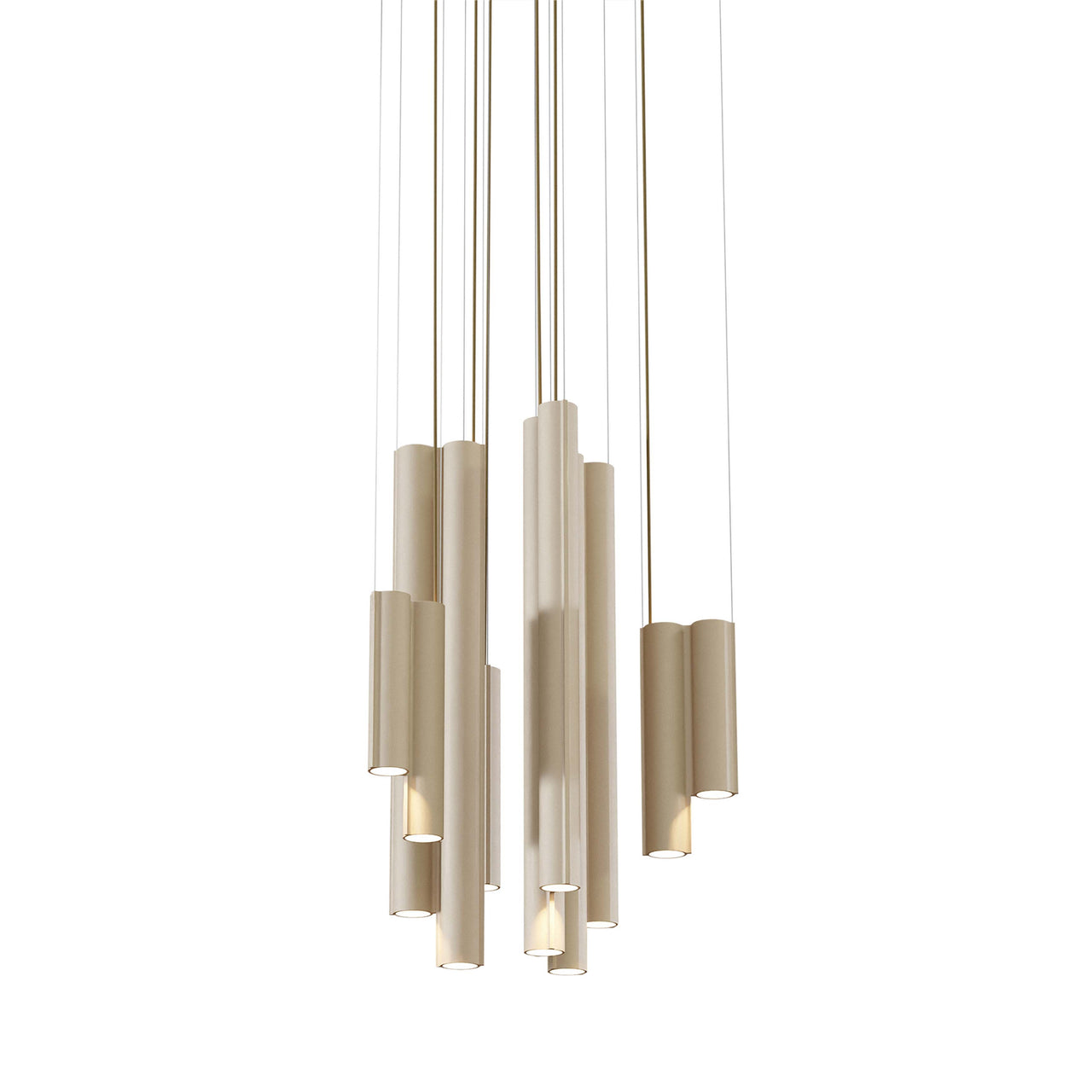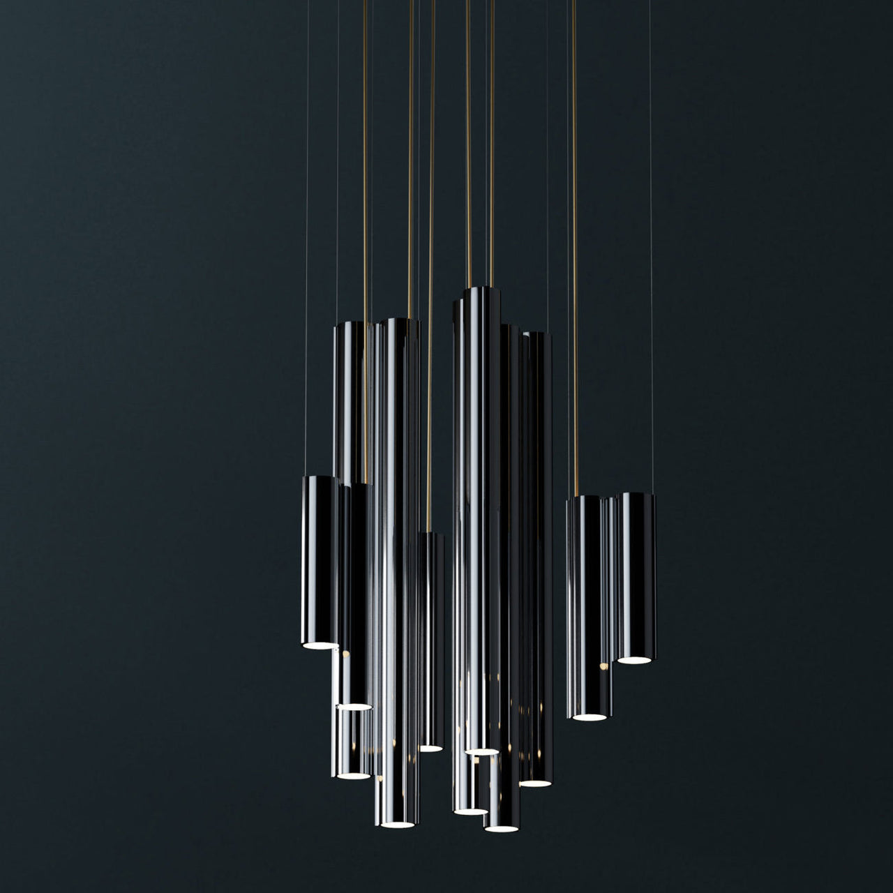 The Silo Atelier 03 Suspension Lamp is architectural lighting fixture that features custom-made aluminum extrusions. Its structure integrates 12 downlight sources, arranged to expand both vertically and horizontally, evoking the essence of brutalist architecture while maintaining a sleek and theatrical presence. The lamp is compatible with various dimming protocols, and offers a range of color temperatures with dim-to-warm functionality. Available in 5 finishes.