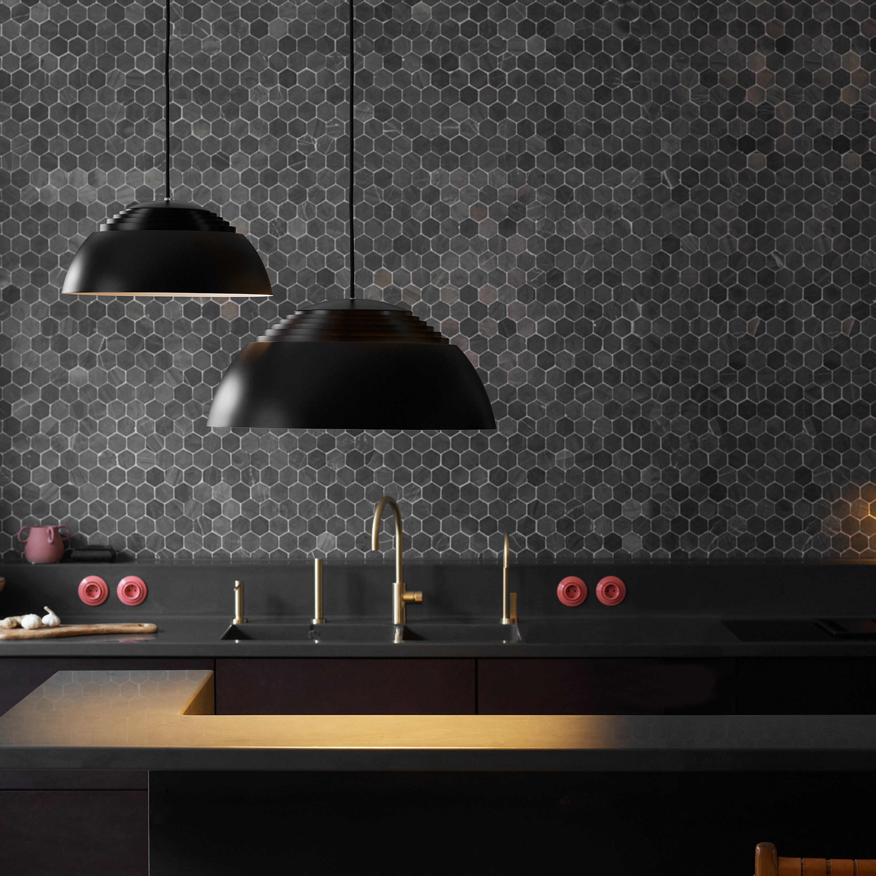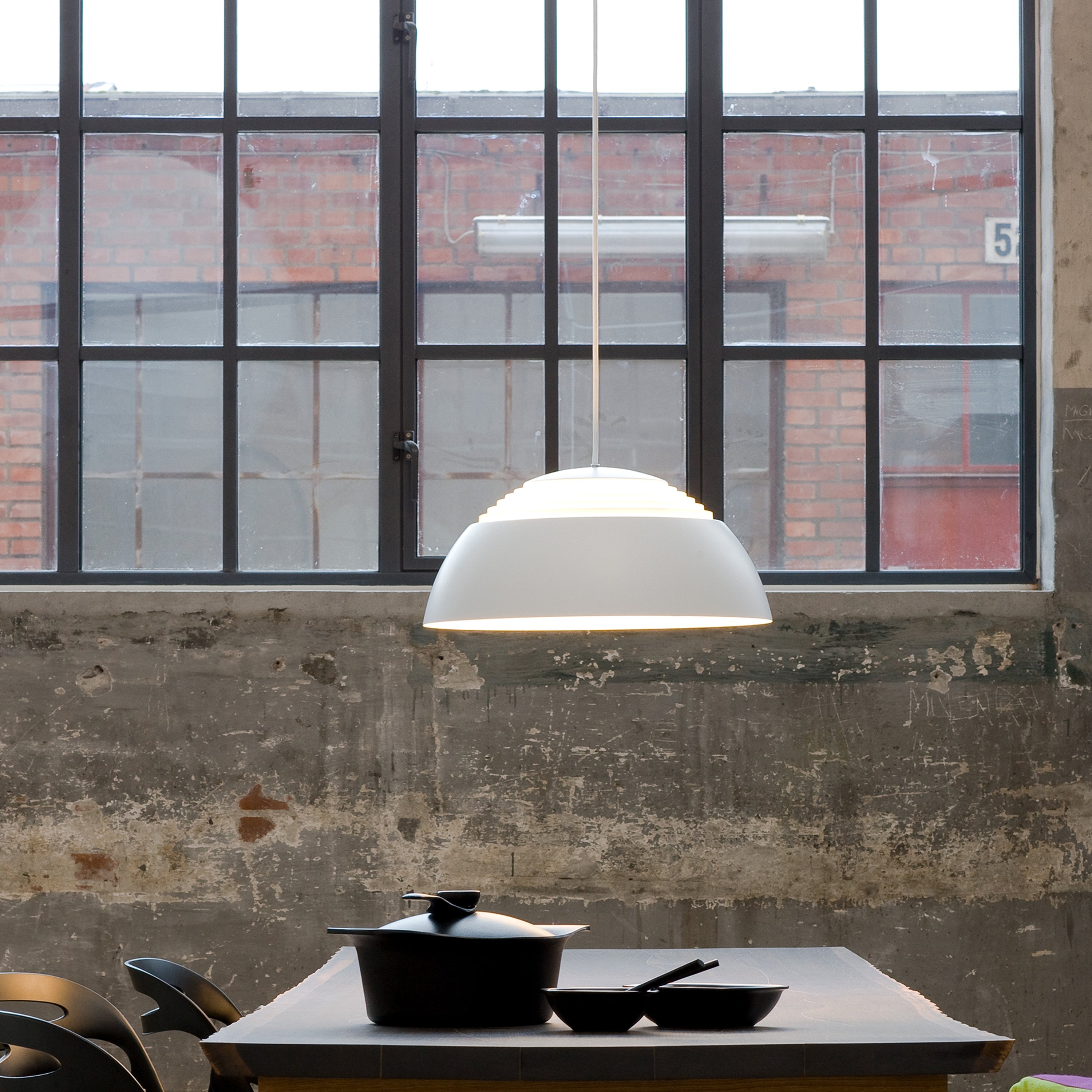 A modernist talisman, AJ Royal was designed by Arne Jacobsen for Copenhagen’s 1960 SAS Royal Hotel, a forerunner of the world-famous Danish architect’s later work. In its 2 original sizes, the metal pendant is available in lacquered white as well as a black version marking the hotel’s 60th anniversary, and yields 100% glare-free light via a built-in frosted acrylic diffusor.