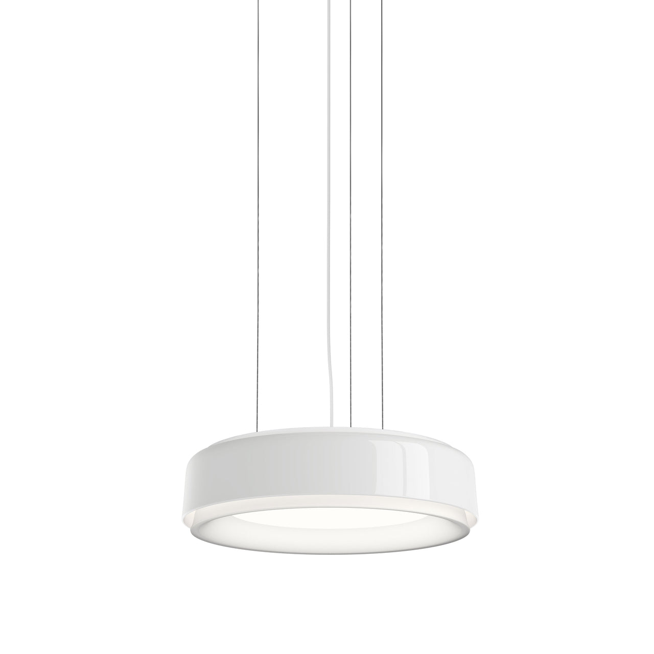 The LP Grand Suspension Lamp features a series of curved, open rings that emit both direct and reflected light, creating a warm, glare-free ambiance. The lamp's minimalist design is ideal for large spaces, from homes to offices and hospitality settings. Available in various sizes and color temperatures, it offers flexibility in different environments. The design's concentric rings soften the light, evoking the look of the sun shining through mist.