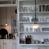 The PH 2/1 Pendant embodies the designer's commitment to glare-free illumination. The lamp utilizes Henningsen's iconic three-shade system, originally developed in 1925, which ensures even light distribution. Its shades are crafted from mouth-blown, three-layer opal glass, directing most of the light downward while providing a soft, diffused glow. The design draws on the principles of the logarithmic spiral, which helps eliminate shadows and harsh glare, making it ideal for creating a comfortable atmosphere in any setting. The sleek metal base comes in black, brass or high-lustre chrome finishes.