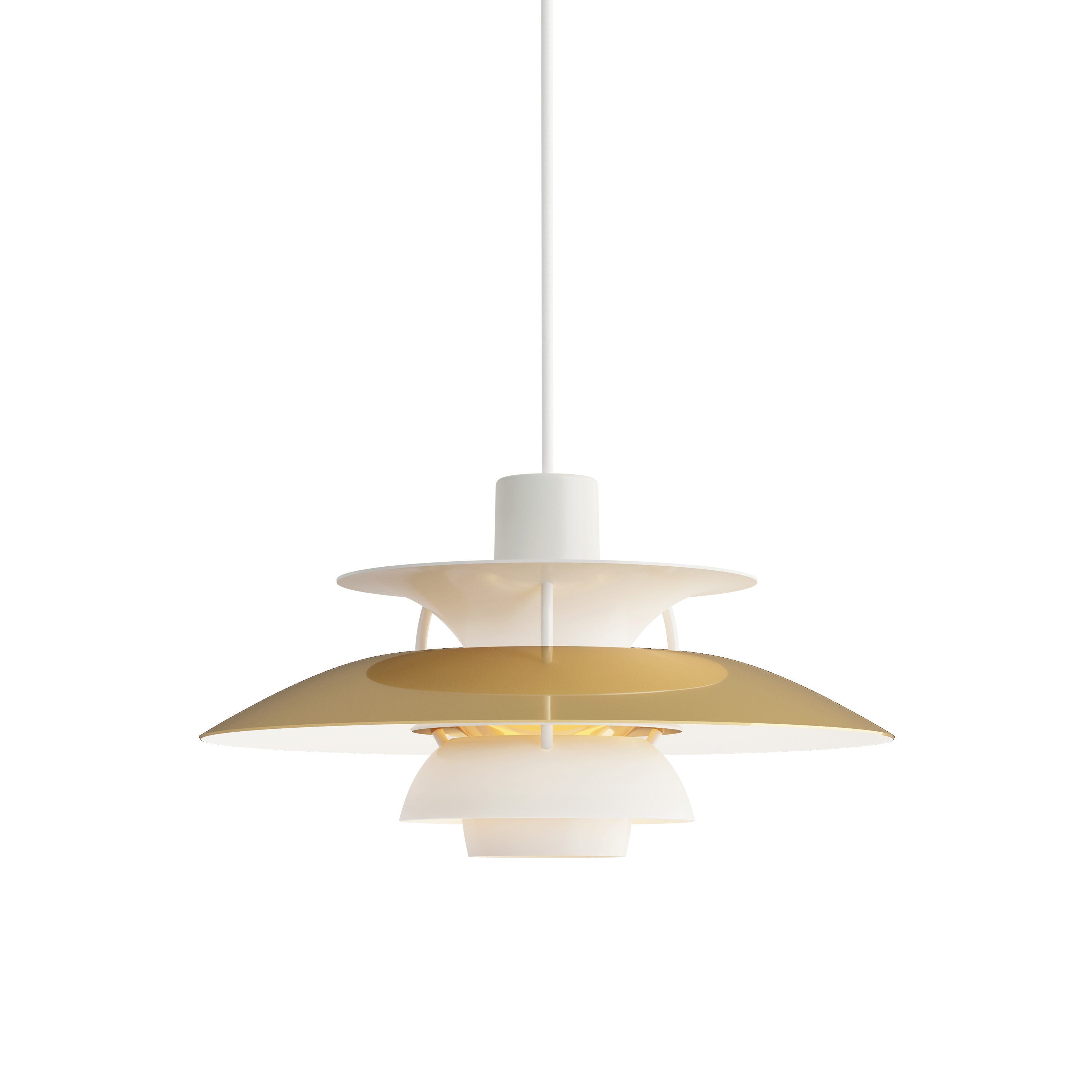 The PH 5 Mini Pendant by Louis Poulsen is a refined, smaller version of the iconic PH 5 pendant designed by Poul Henningsen in 1958. The PH 5 Mini retains the original's innovative design, featuring a 30 cm top shade that ensures glare-free, evenly distributed light. Henningsen’s multi-shade system carefully balances light and shadow to create a warm, inviting atmosphere. Available in brass or copper.