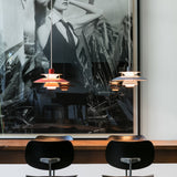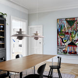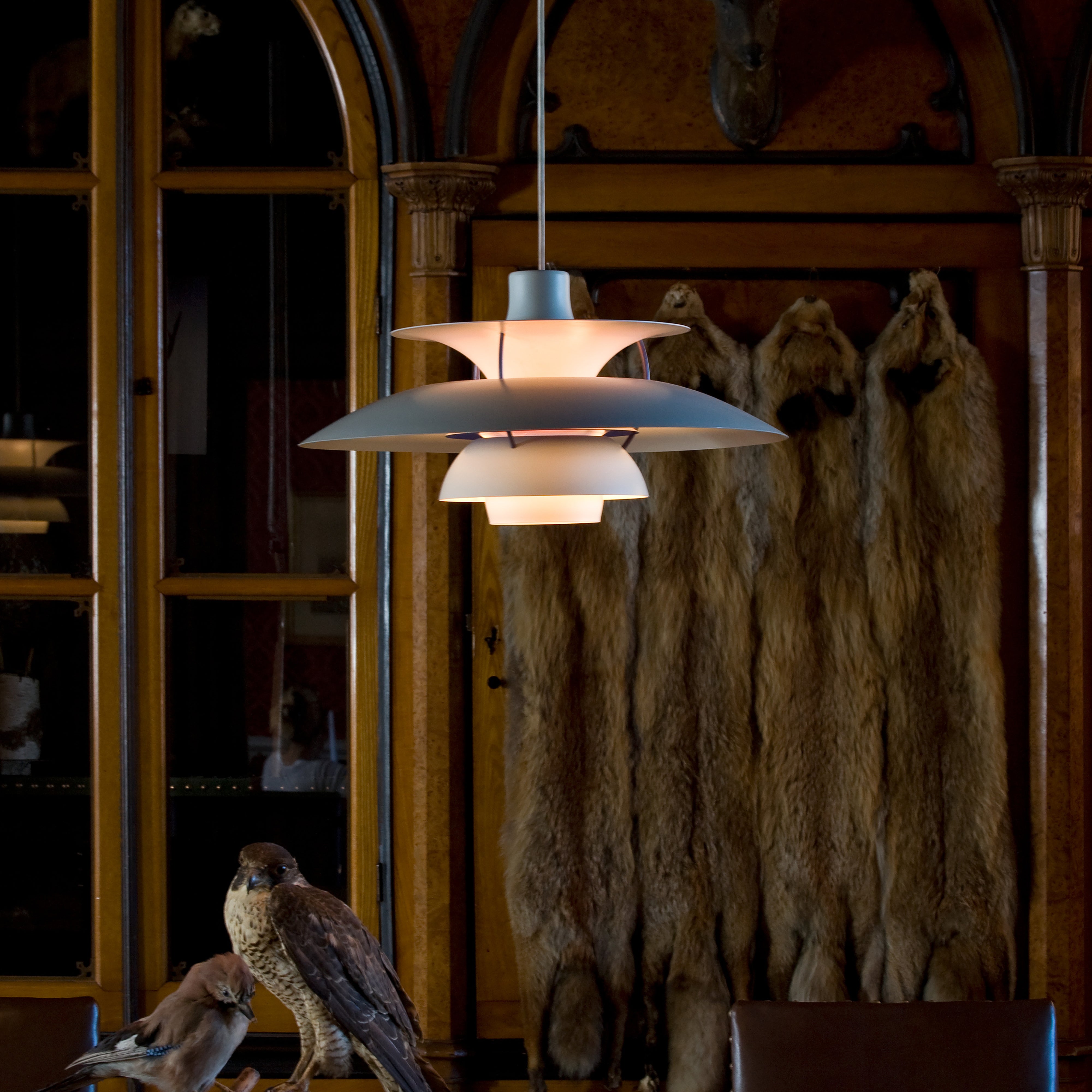 The PH 5 Pendant by Louis Poulsen, designed by Poul Henningsen in 1958, remains a timeless piece in lighting design. It was created to address the inconsistent sizes and shapes of incandescent bulbs at the time, ensuring compatibility with any light source. Over time, the untreated metal will develop a natural patina, adding a distinct character: The pendant features a three-shade system that provides soft, glare-free illumination, making it ideal for dining rooms and various settings.