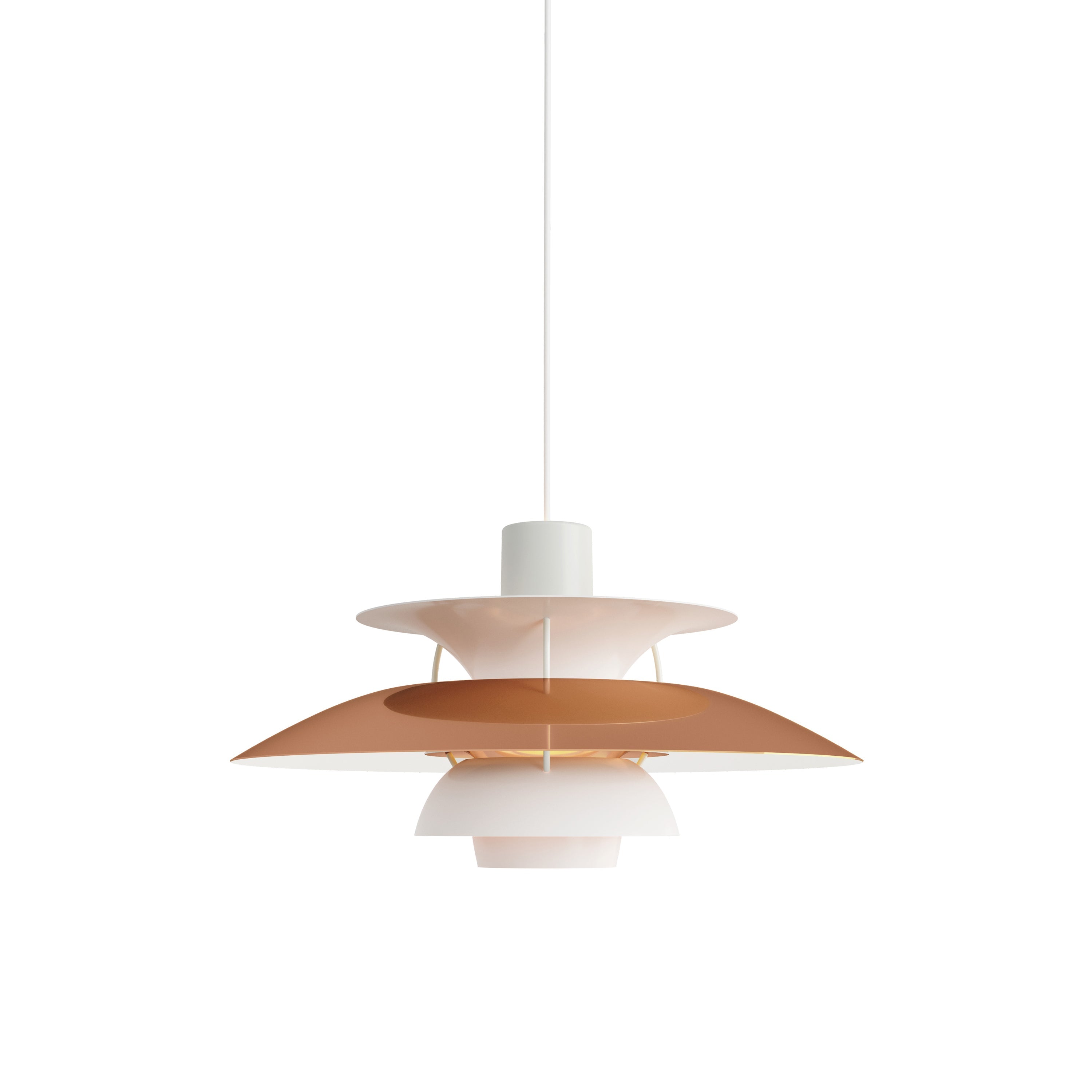 The PH 5 Pendant by Louis Poulsen, designed by Poul Henningsen in 1958, remains a timeless piece in lighting design. It was created to address the inconsistent sizes and shapes of incandescent bulbs at the time, ensuring compatibility with any light source. Over time, the untreated metal will develop a natural patina, adding a distinct character: The pendant features a three-shade system that provides soft, glare-free illumination, making it ideal for dining rooms and various settings.