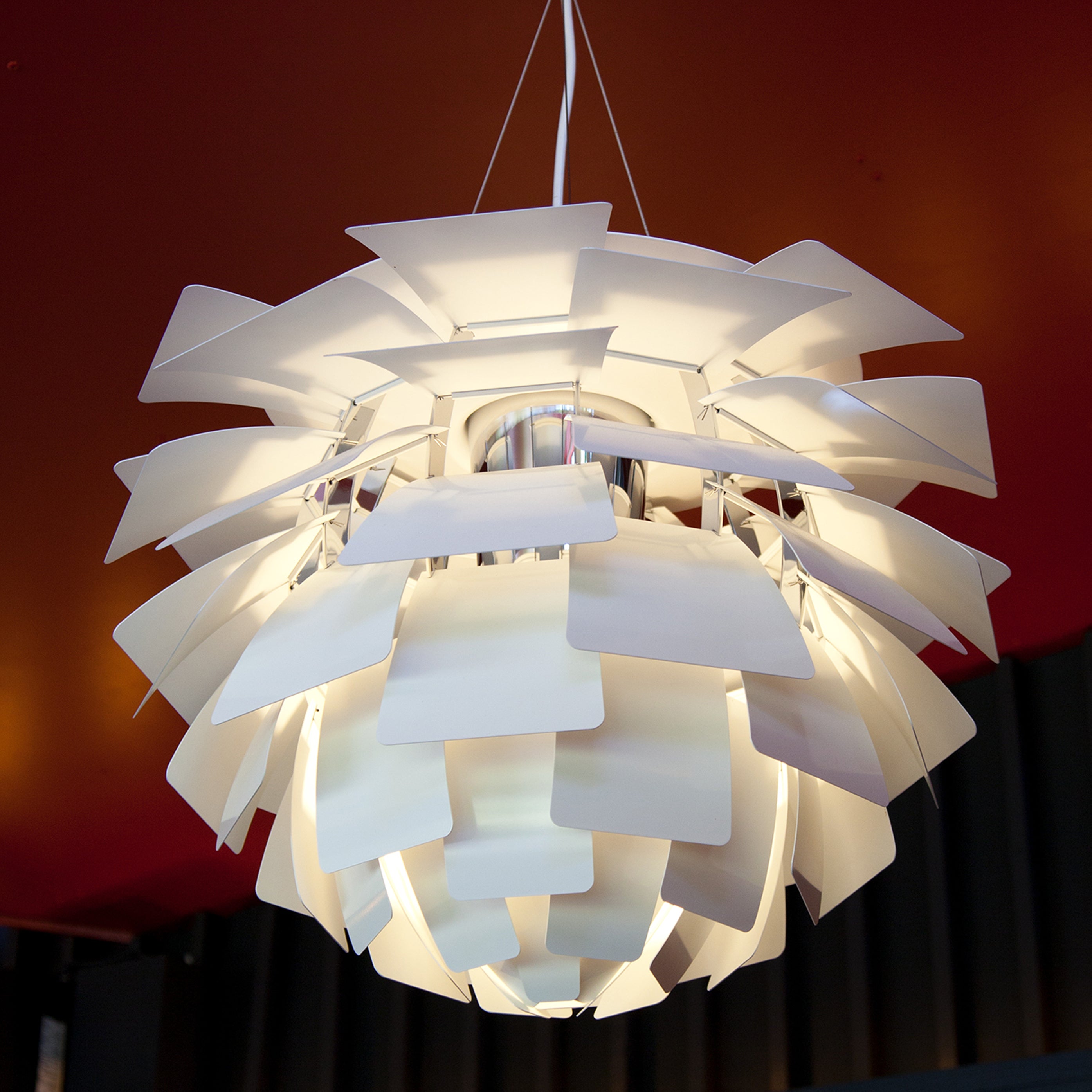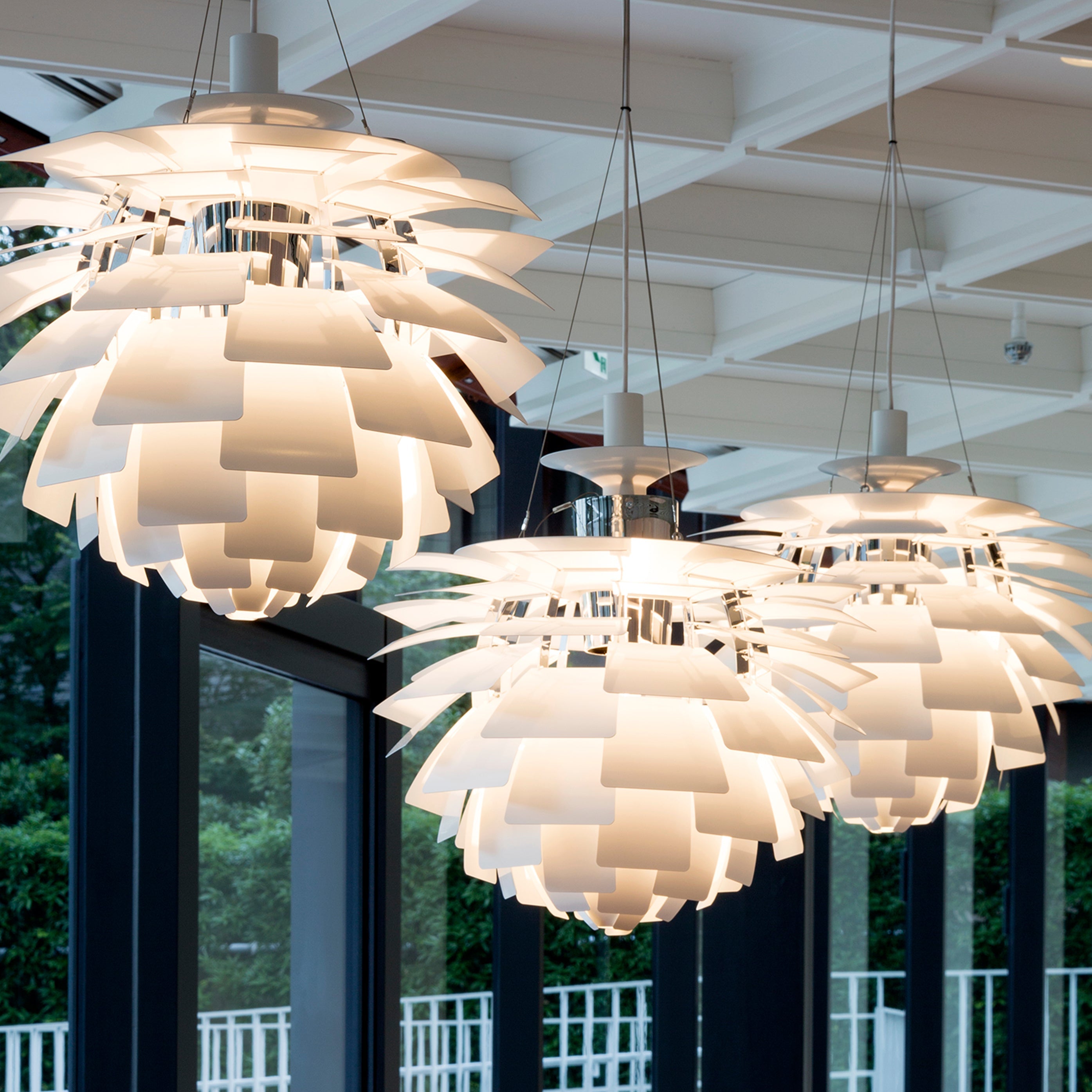 With the arrival 2 decades later of designer Poul Henningsen came 2 of the most collectible and coveted Midcentury modern fixtures, the PH-5 and the “Artichoke.” The stable of now-legendary designers widened with the likes of Vilhelm Lauritzen, Arne Jacobson and Verner Panton. The output wasn’t all stunning form either. During WWII, the firm contrived a blackout lamp that allowed famed Tivoli Gardens in Copenhagen to remain open in the evenings, without interfering with the fighter jets in the skies above.