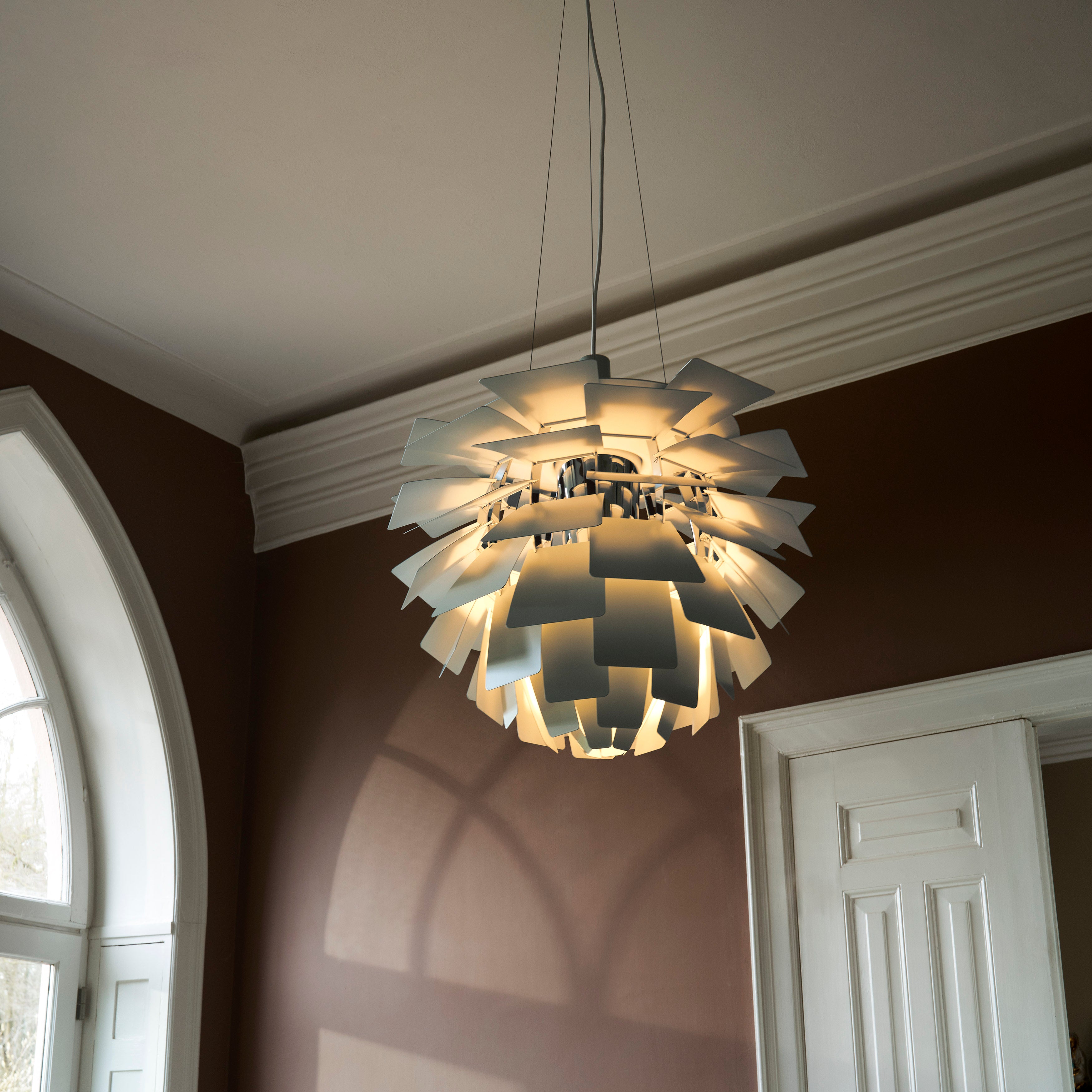 Breathtaking in form, the extra-large version of PH Artichoke, like its sister pendants, features 72 precisely positioned leaves in concentric rows to provide glare-free light from any angle. Still largely made by hand, Poul Henningsen’s sculptural circa-1958 design, now powered by an LED, is offered in a range of metallics or a powder-coated finish.