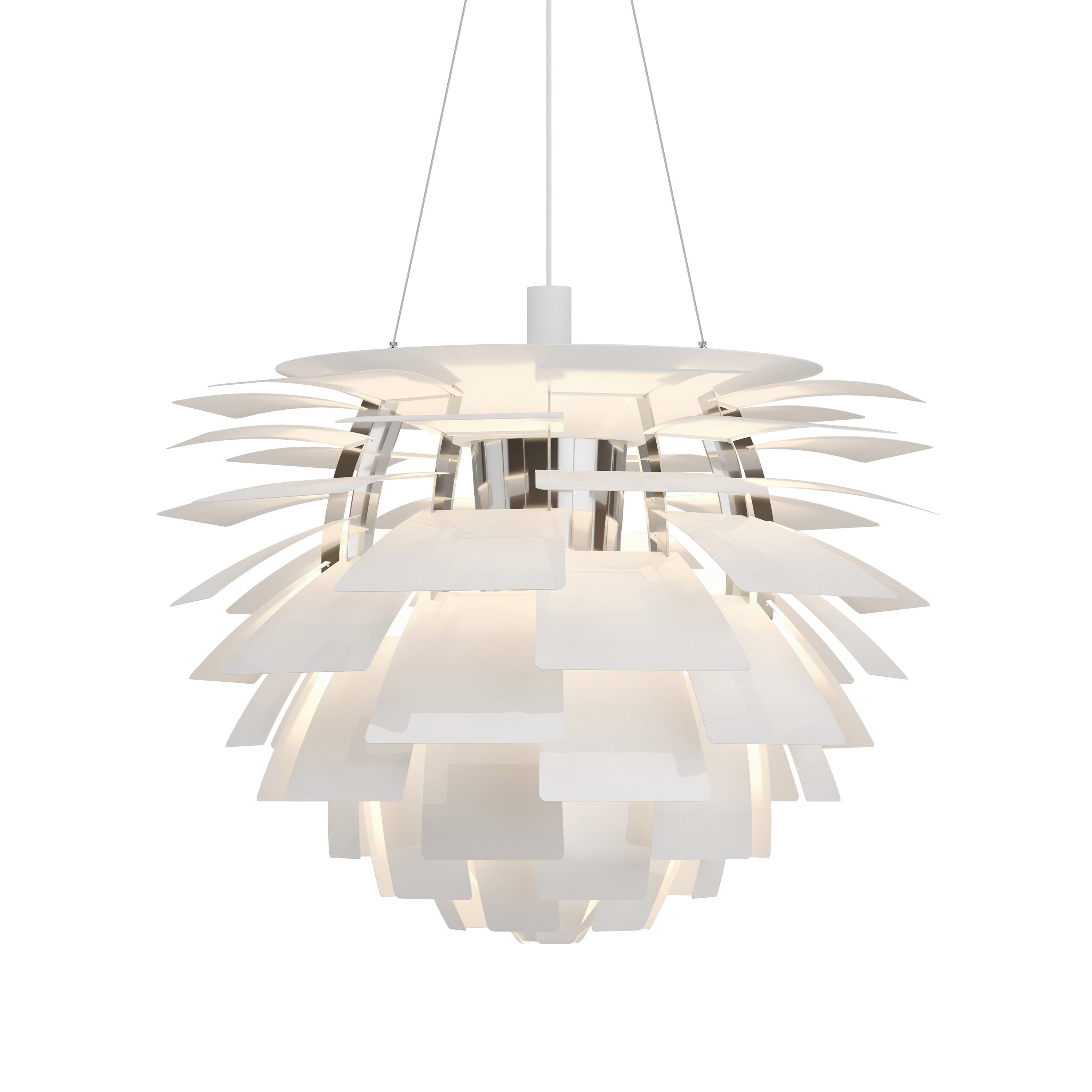 PH Artichoke Pendant: Extra Large + Stainless Steel + White