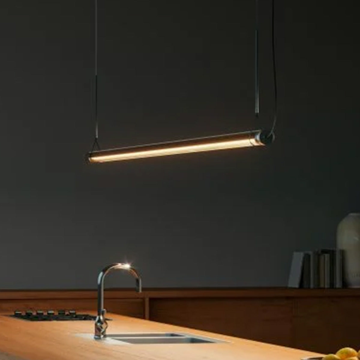 The Fris 155 Pendant Light provides focused, adjustable illumination with a clean, minimalist design. Its defining feature is a cylindrical transparent glass diffuser that encases the light source and rotates to direct light as needed. This pendant is crafted precisely, offering adaptable ambient lighting for various spaces.