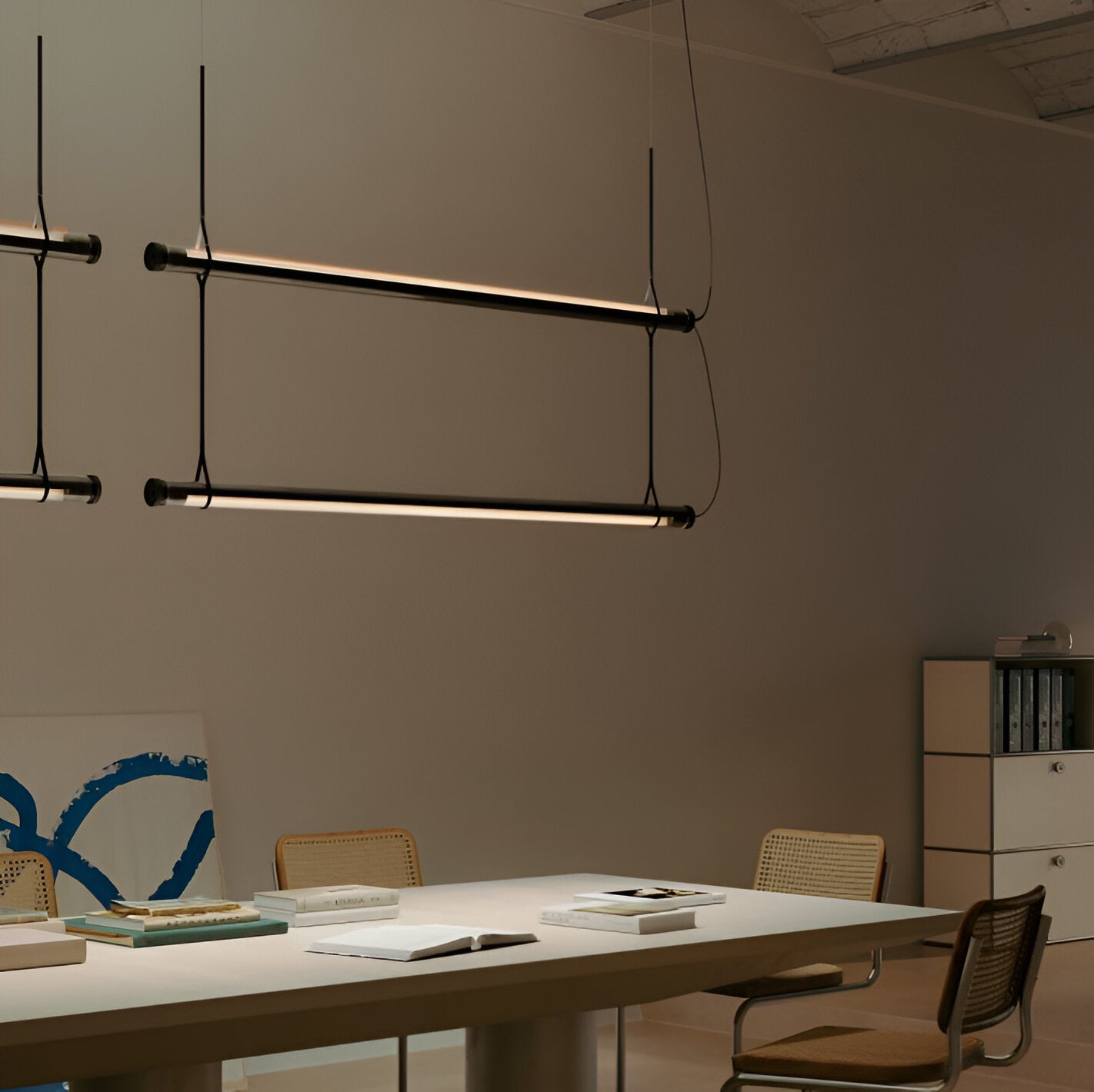 The Fris Pro 155 Pendant Light is a streamlined lighting solution built around a slender transparent glass tube that both shields and suspends the LED, allowing full rotation for precise beam control. An aluminum structure with a parabolic reflector ensures focused, low-glare illumination that meets professional standards. Designed for hard-wired ceiling integration, it comes with a canopy and straps included, with optional hooks and accessories available for custom compositions. Suitable for standalone or grouped installations, the fixture brings powerful, adaptable light to commercial projects as well as refined residential settings.