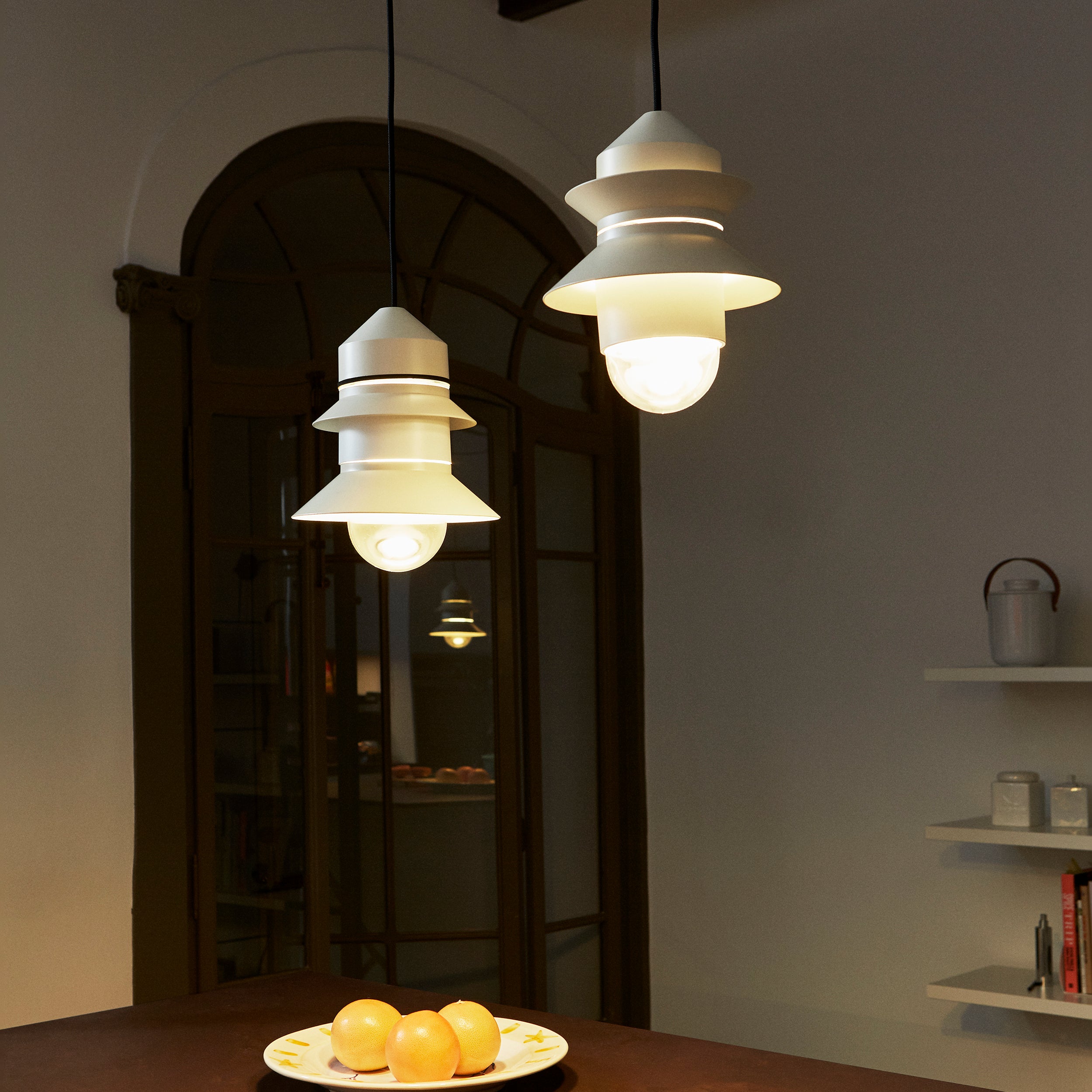 Lights strung on fishing boats inspired the Santorini Pendant Light for outdoor spaces from Barcelona-based Marset. Recalling traditional lanterns found on those crafts, the project's designers from Sputnik Estudio, a multidisciplinary design lab in Valencia, devised fixtures that are completely customizable. Decide how many shades to place on the blown-glass diffuser, and in what order and position. Shades can be placed facing up or down, for reflected or direct lighting. Eye-catching on its own or striking hung in a group. And, with a range of accessory fittings, the pendant can also be arrayed in multiples like a garland or adapted as a wall fixture or floor lamp.