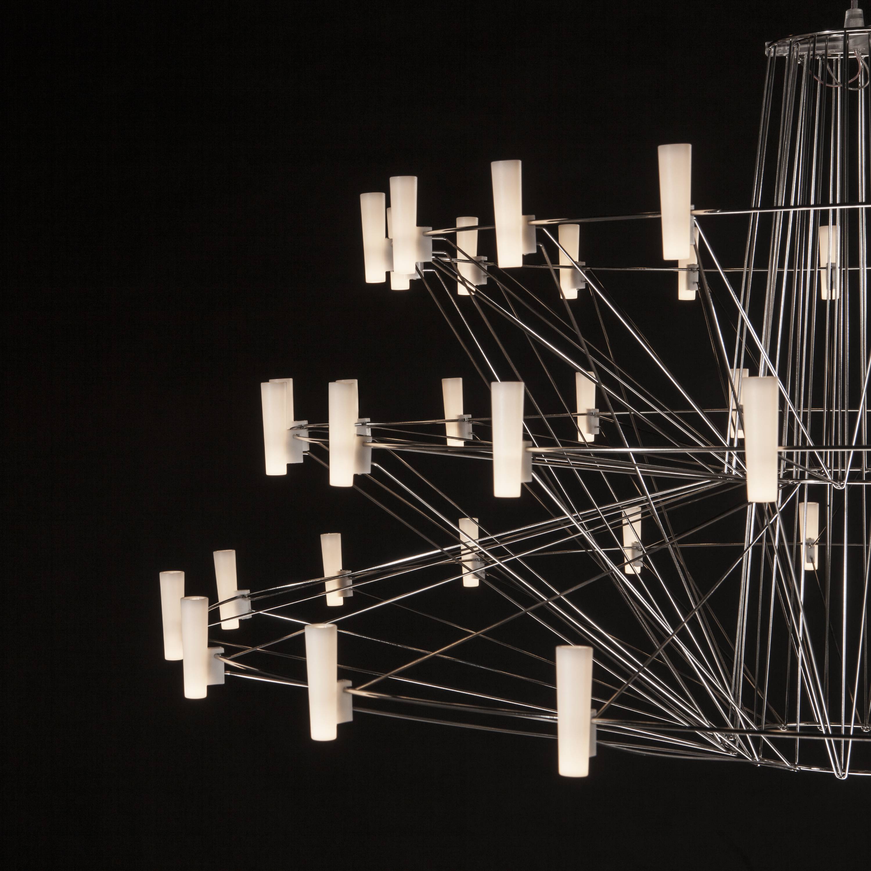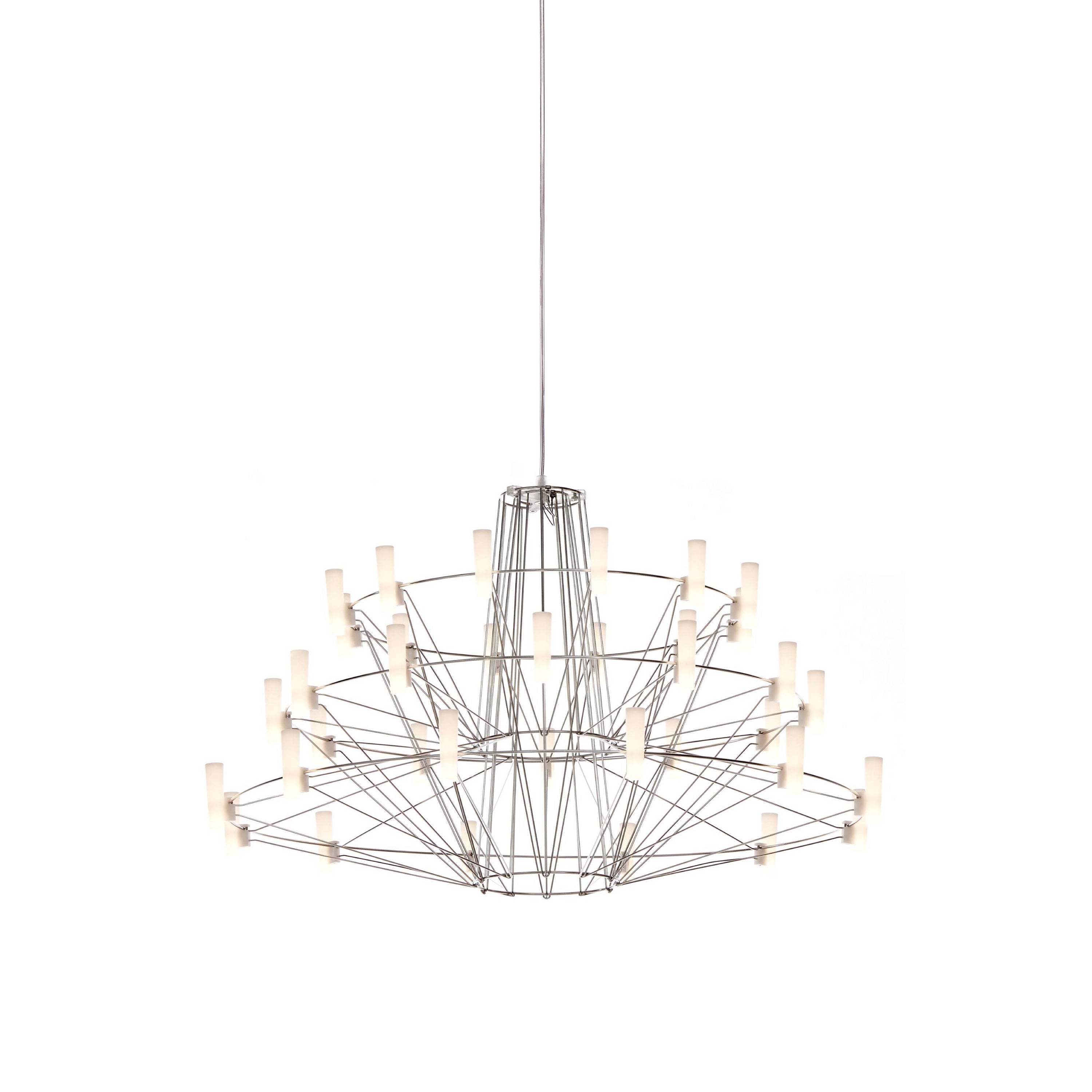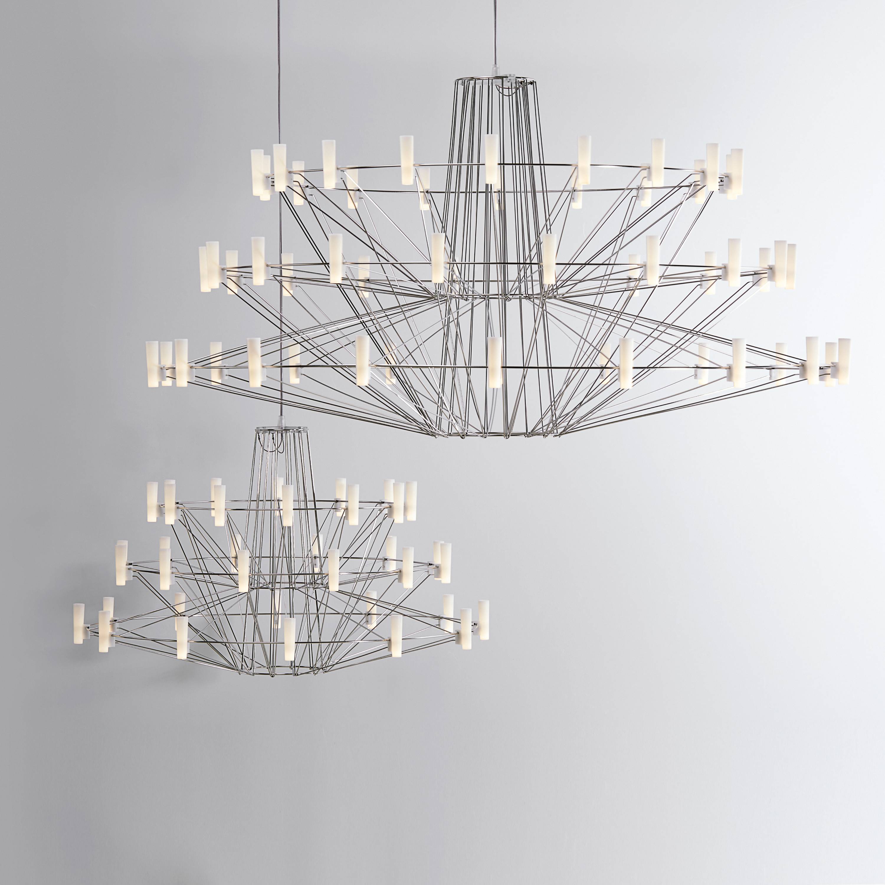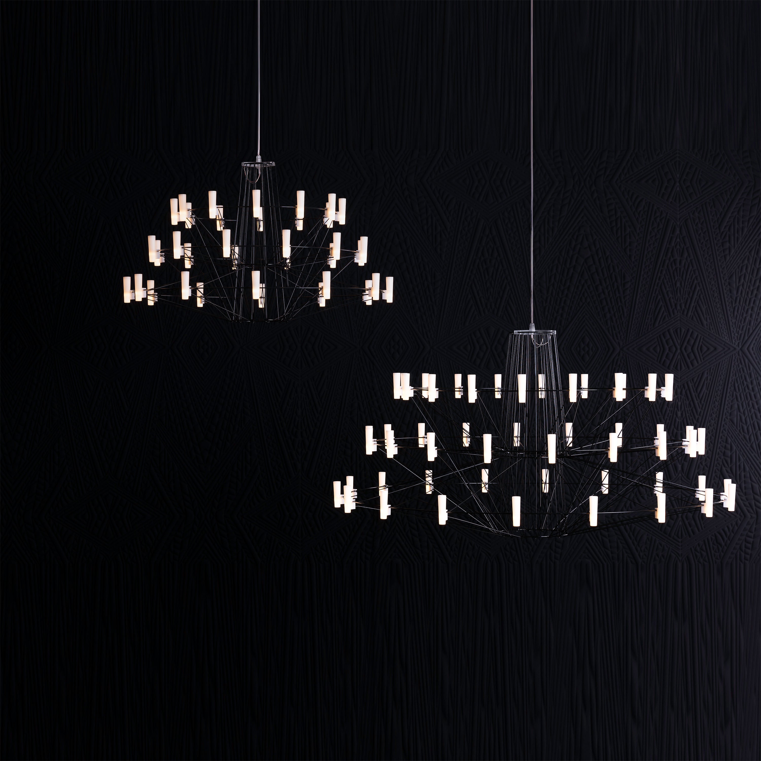 More pas de deux than corps de ballet, the smaller version of Helsinki-based Japanese designer Arihiro Miyake’s dance-inspired chandelier glows with its own wondrous incandescence. In the tutu-like steel wire froth, a host of LEDs shimmer like candlelight while the slender structure also ingeniously transports the electric current. Much like the wonder of a stage performance, Coppélia leaves an enthrallingly magical mood in its wake.