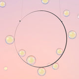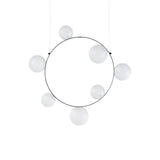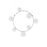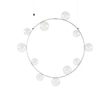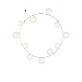 Hubble Bubble arrays glowing glass spheres around a slender metal ring in Moooi's airy suspension light designed by Marcel Wanders. Mouth-blown just like bubbles themselves, the LED bulbs come in either an oil-finish iridescent or a frosted version. Both the smaller model with 7 lights or the larger with 11 can be hung horizontally or vertically, with the sleek fixture powered by the designer's proprietary Electrosandwich technology which eliminates the need for individual wires running to each LED.