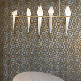 Birds of a modernist feather flock together in British designer Umut Yamac's elegantly imagined LED lighting array. With poetic precision, he fashions the gently glowing synthetic paper creatures that perch on a metallic branch, with golden beaks and trails of precious metal in the feathers of their tails. And these sunlit birds are free to swing when softly touched, completing the altogether captivating effect.