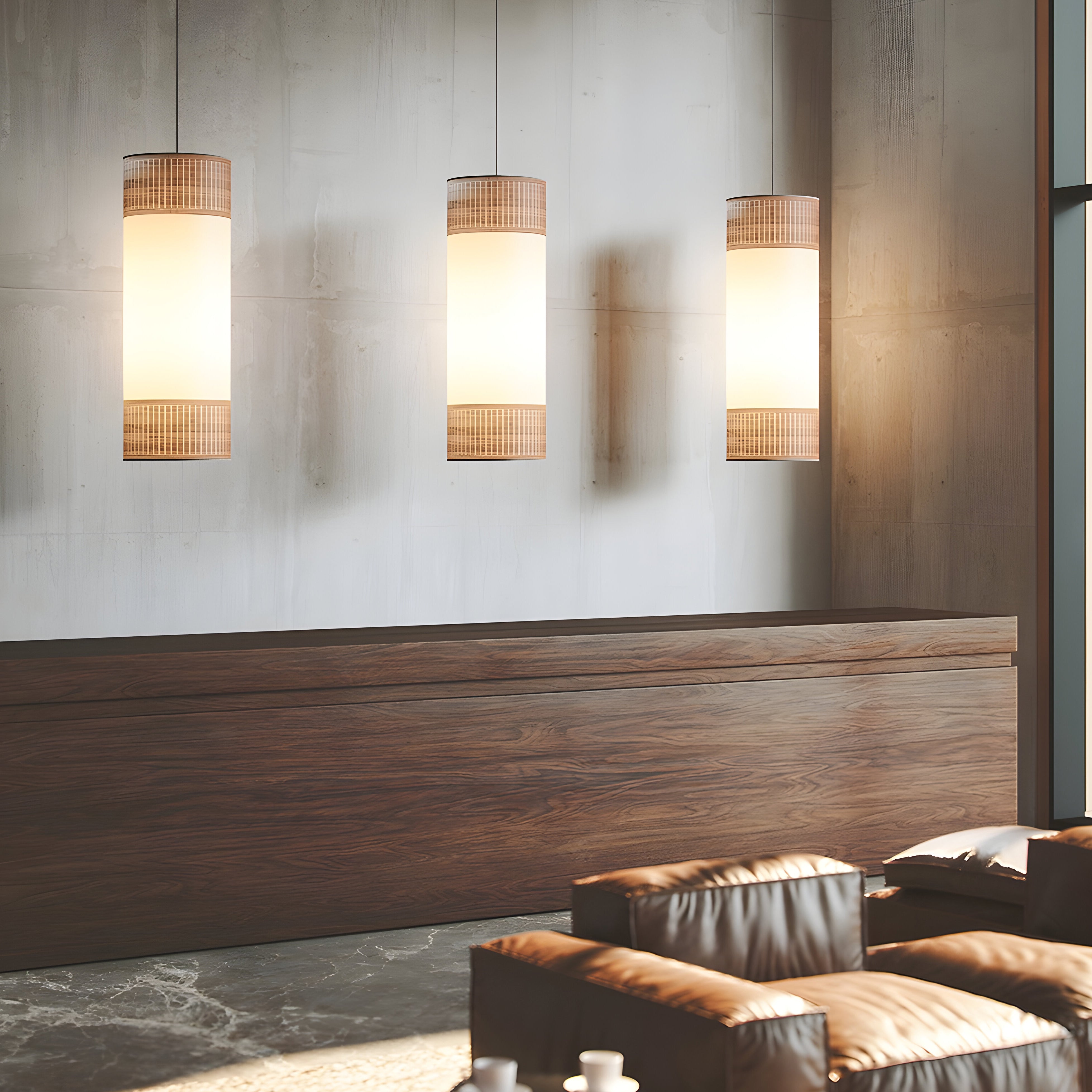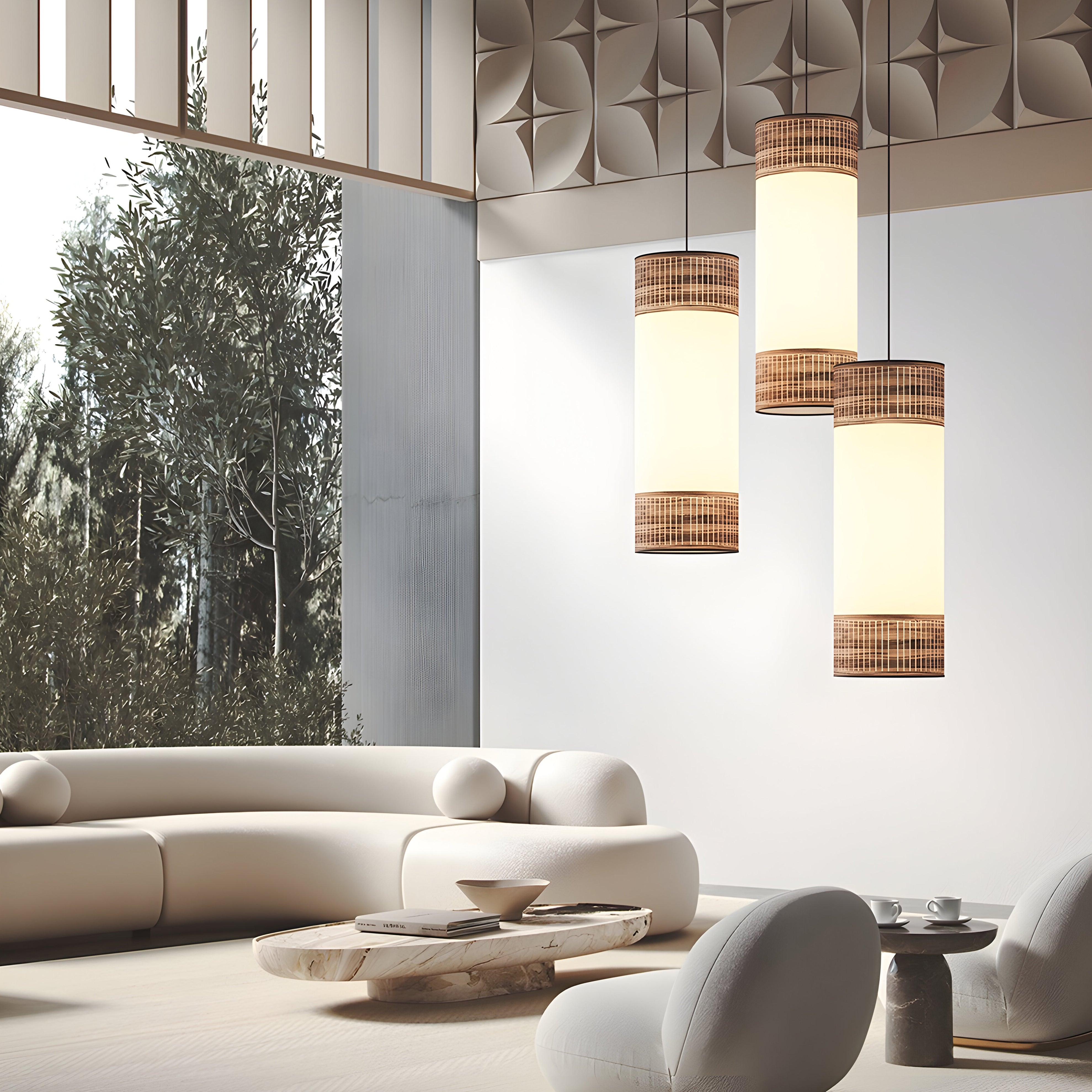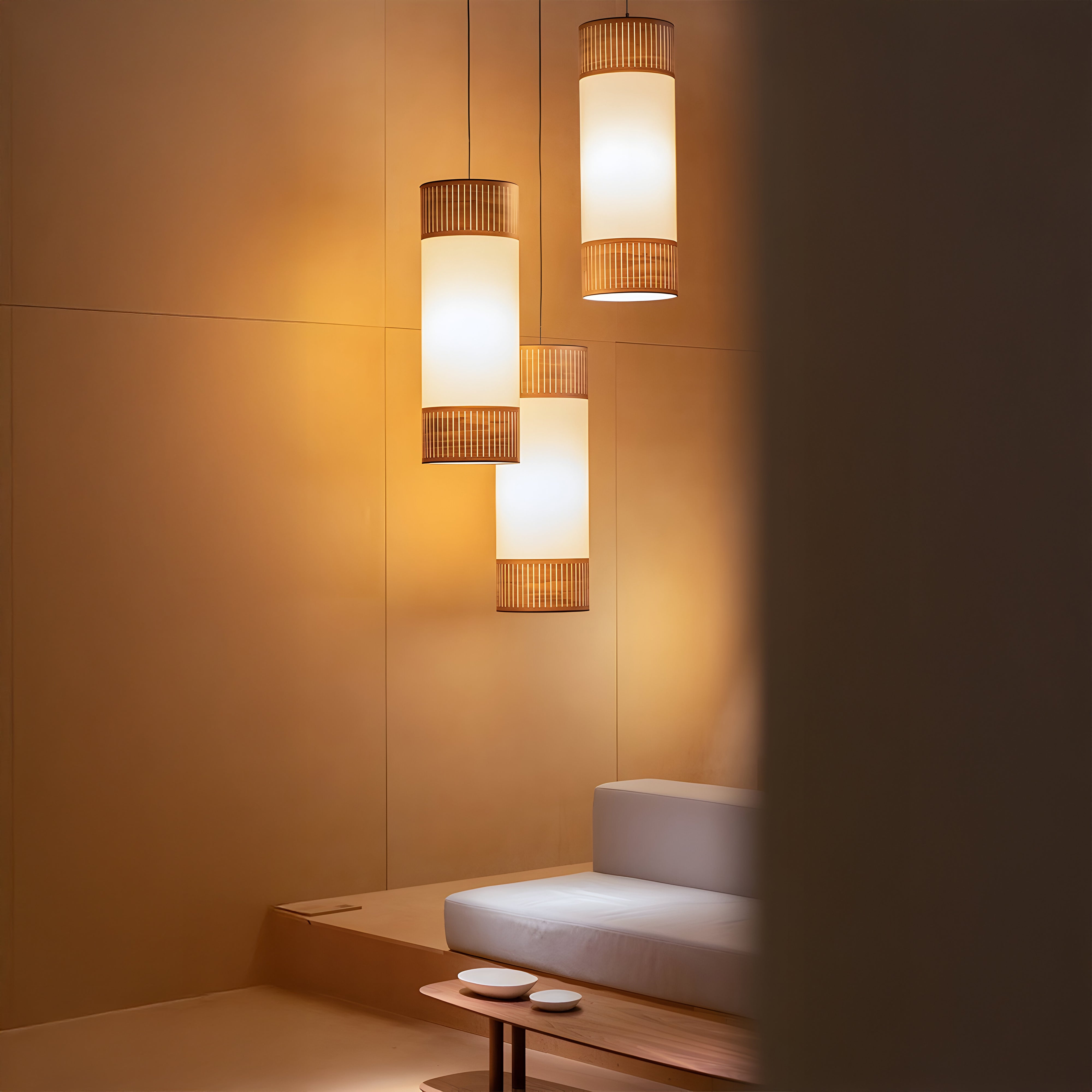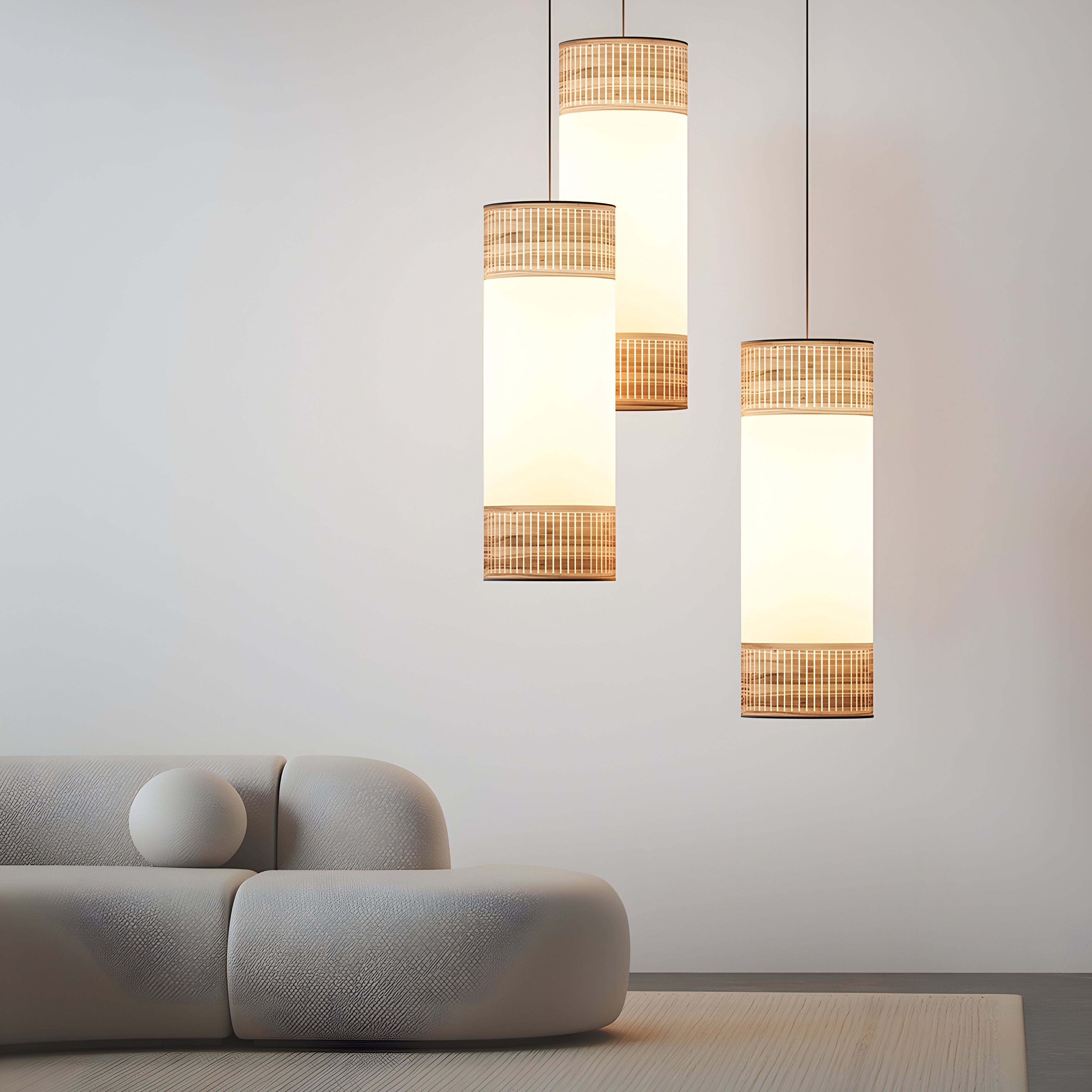 A softly luminous cylinder filters warmth through translucent wood veneers layered with delicate fabric, subtly shaping its surroundings. Handcrafted in Barcelona, the Tamíz Pendant combines a natural walnut-finish frame with textile diffusion to create a calm, ambient glow. Designed by Andrés Martínez, it reflects his refined approach to material and light—offering a serene presence and an elegant silhouette that quietly elevates any space.