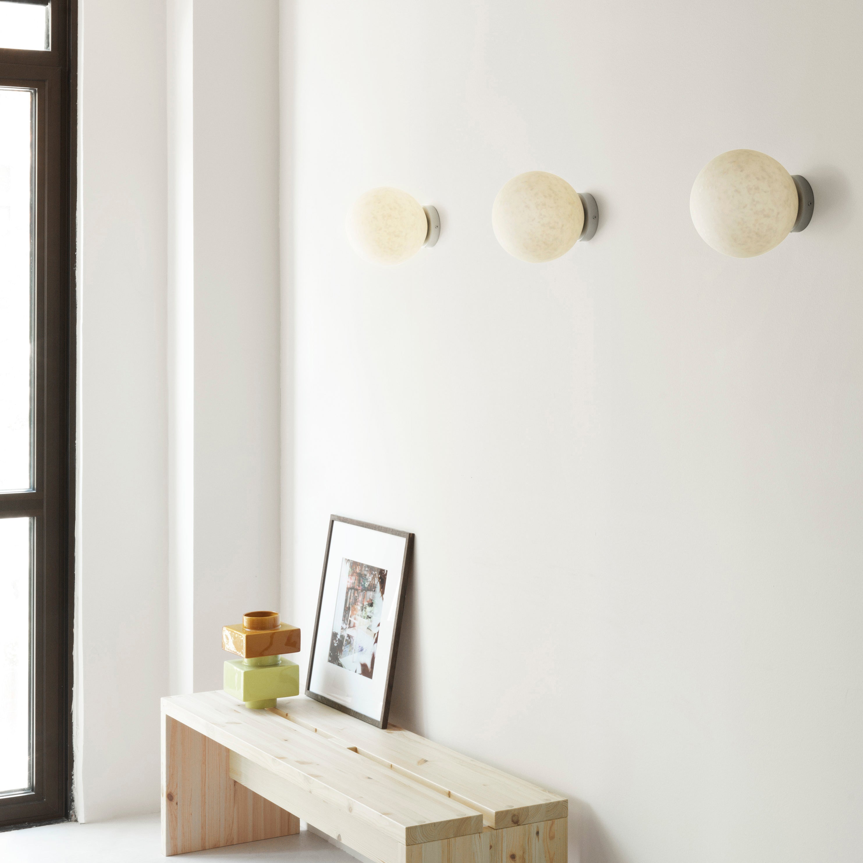 Pix Lamp’s sustainable collection extends its timeless silhouette and captivating, pixelated surface to a flush version to mount on the ceiling or a wall, in a choice of 2 sizes. With its glow-worthy orb fashioned in 100% recycled plastic waste, the fixture comes with a canopy in silver-painted steel that can be installed directly to the power outlet or by using a power cord via a hole on the side of the canopy.