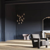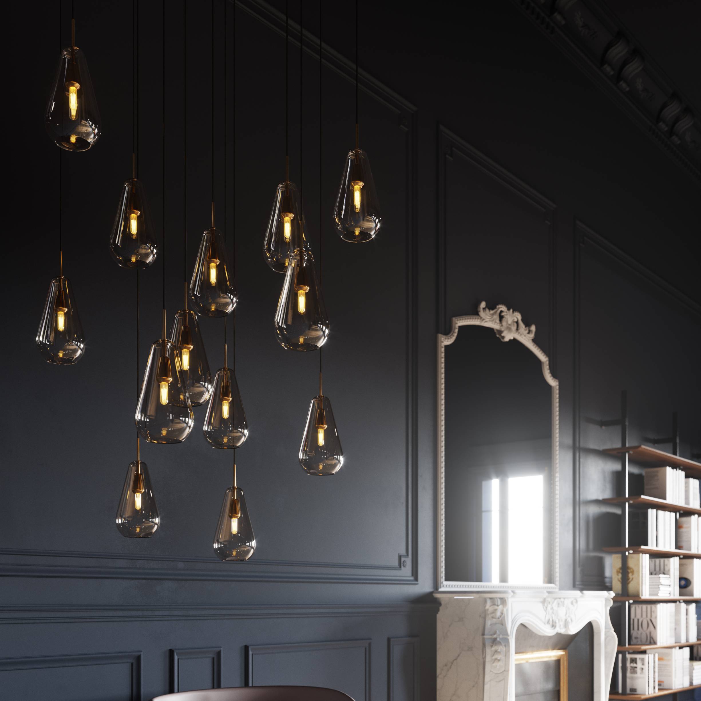Inspired by what she calls "the generosity of nature," Danish designer Sofie Refer responds with breathtaking abundance of her own in the marvelous 13 Chandelier from the Nuura series Anoli. Thirteen droplet-shaped shades in mouth-blown glass and hand-painted in a delicate golden color make a luminous statement-piece that summons her original inspiration of rain falling in the warm Nordic light. Enhanced with complementing fittings of light gold metal, the chandelier's effect is at once subtle and spellbinding—perfect to grace a dining table or float over a sideboard.