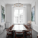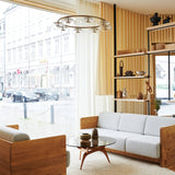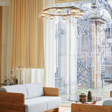 Blossi makes a grand statement with its golden circular chandelier holding 8 shimmering mouth-blown glass lights. Inspired by the quality of Scandinavian autumn light, Nuura designer Sofie Refer fashioned each rounded clear shade to reflect illumination from a specially developed LED disc in order to produce a soft, indirect glow. Apropos for both residential and public spaces, the chandelier redefines opulence in a minimalist vein and is perfect for living spaces or an entryway, even in areas that don't include the luxury of a particularly high ceiling.