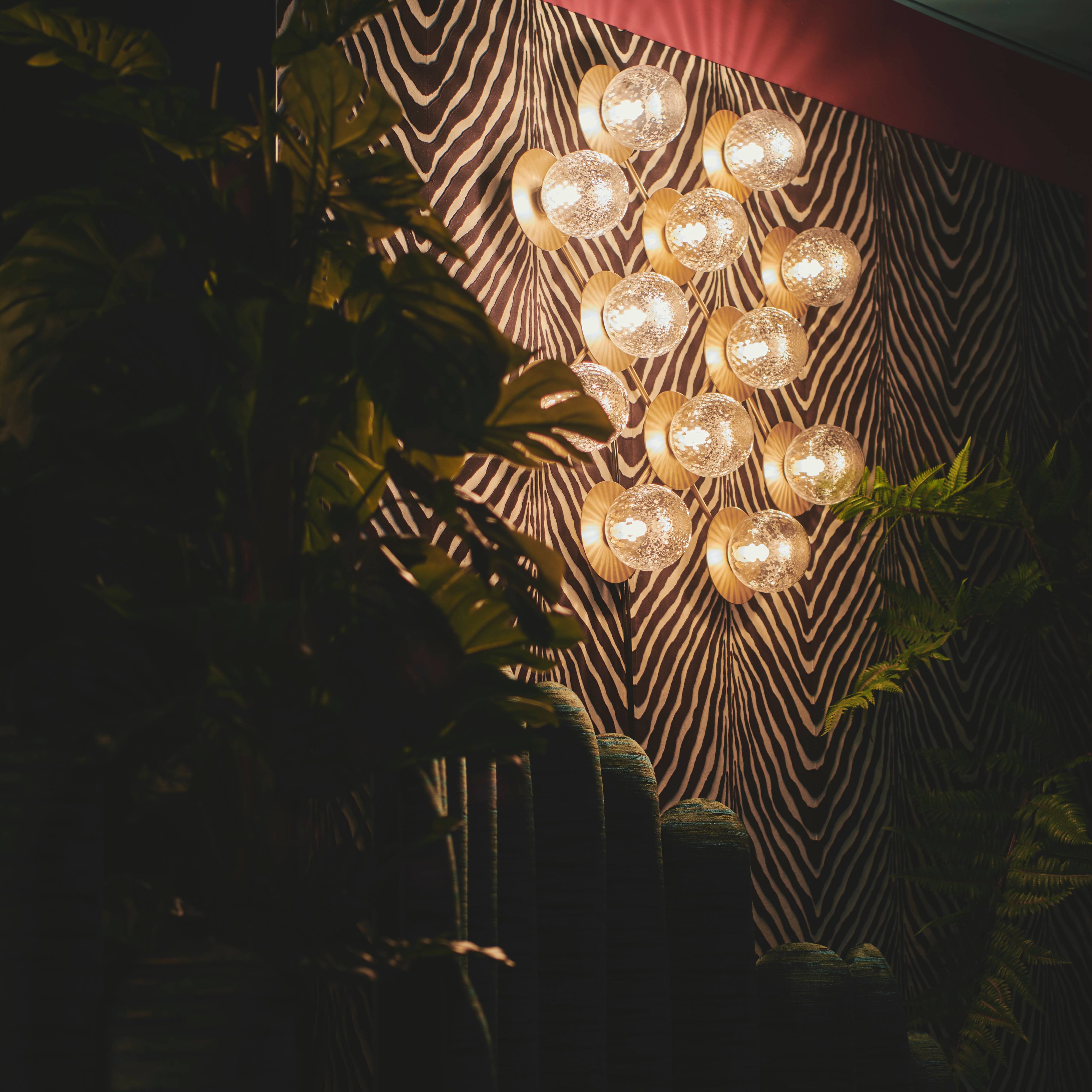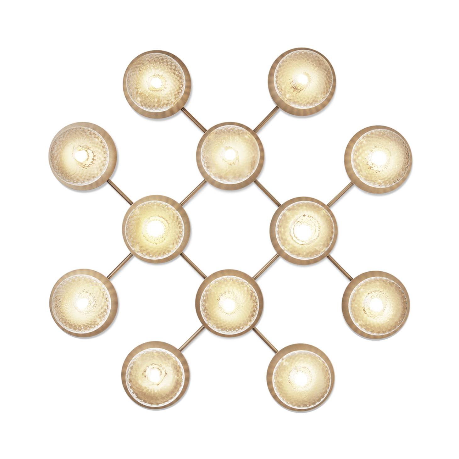 Nuura designer Sofie Refer has a knack for drop-dead lighting effects and, with this dazzling geometric stunner, she once again scores a knockout. Composed from a dozen individual lights on a grid of sublimely pale gold metal, Liila's mouth-blown globes are offered in either patterned clear optic glass or milky opal glass. With the former, the effect is all sparkly reflections while the latter yields a subtle glow of illumination.