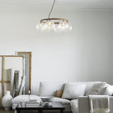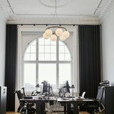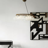 In a dazzling circular configuration, Nuura's creative director Sofie Refer arrays 6 of the mouth-blown Miira globes on a powder-coated metal ring colored a dark bronze. The chandelier can hang high or low from the ceiling, via a special wire system that easily adjusts the suspended height from 45 to 250 centimeters. With the globes alit in either milky opal or or clear optic glass with an embossed pattern, the fixture spreads a sumptuous illumination that makes it a glowing focal point in a variety of settings.