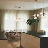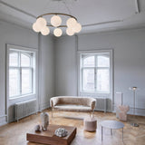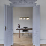 This chandelier version of Miira is a spellbinder, with 8 of the series' mouth-blown glass orbs mounted on a bronze-finish metal ring. Designed to hang high or low from the ceiling, a special wire system is used to adjust the height with ease (from 45 to 250 centimeters). Nuura's creative director Sofie Refer offers a choice of milky opal glass or optic clear glass with an embossed pattern—either way, Miira spreads an atmospheric illumination that gives a room an unmatched allure.