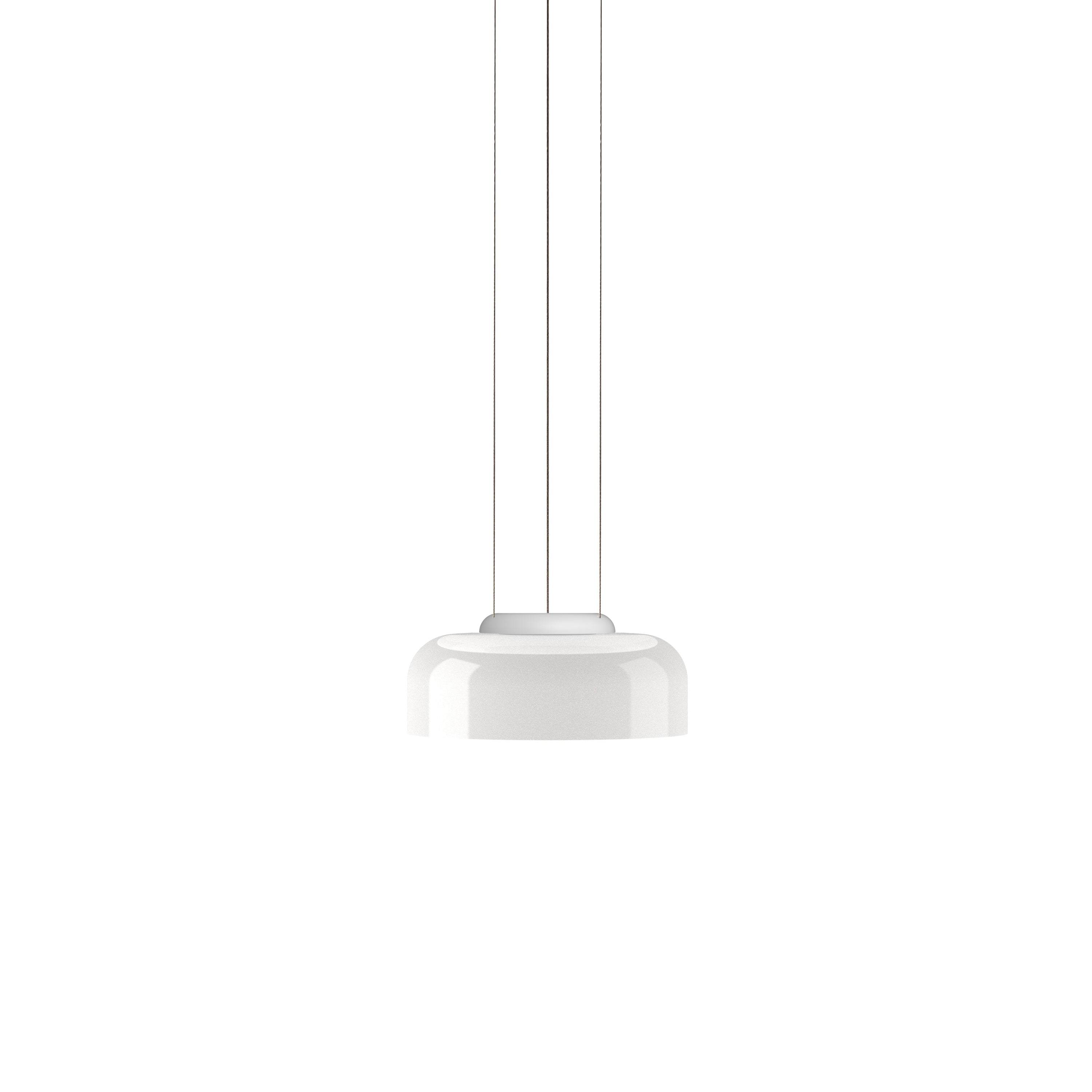 The single downlight version of Totem offers a choice of 4 different shade styles in exquisitely blown opal glass. Pablo Designs' pendant provides both direct and indirect illumination by employing a 2-part LED light engine that provides both uplight and downlight for a warm and dimmable ambient glow. Each of the soft, pure-white geometric forms provides warmth and elegance to any space, both deployed singly and in site-specific personalized combinations.